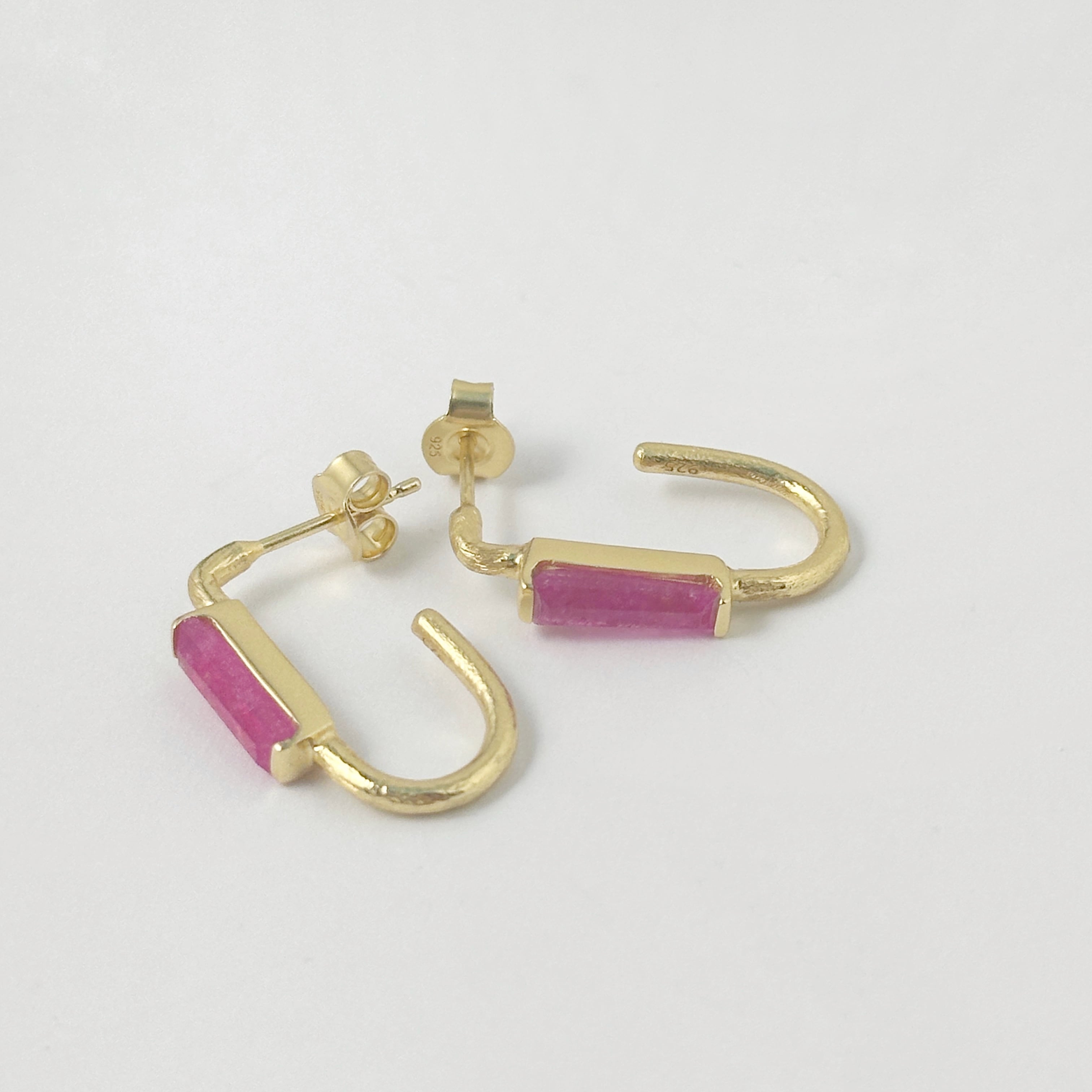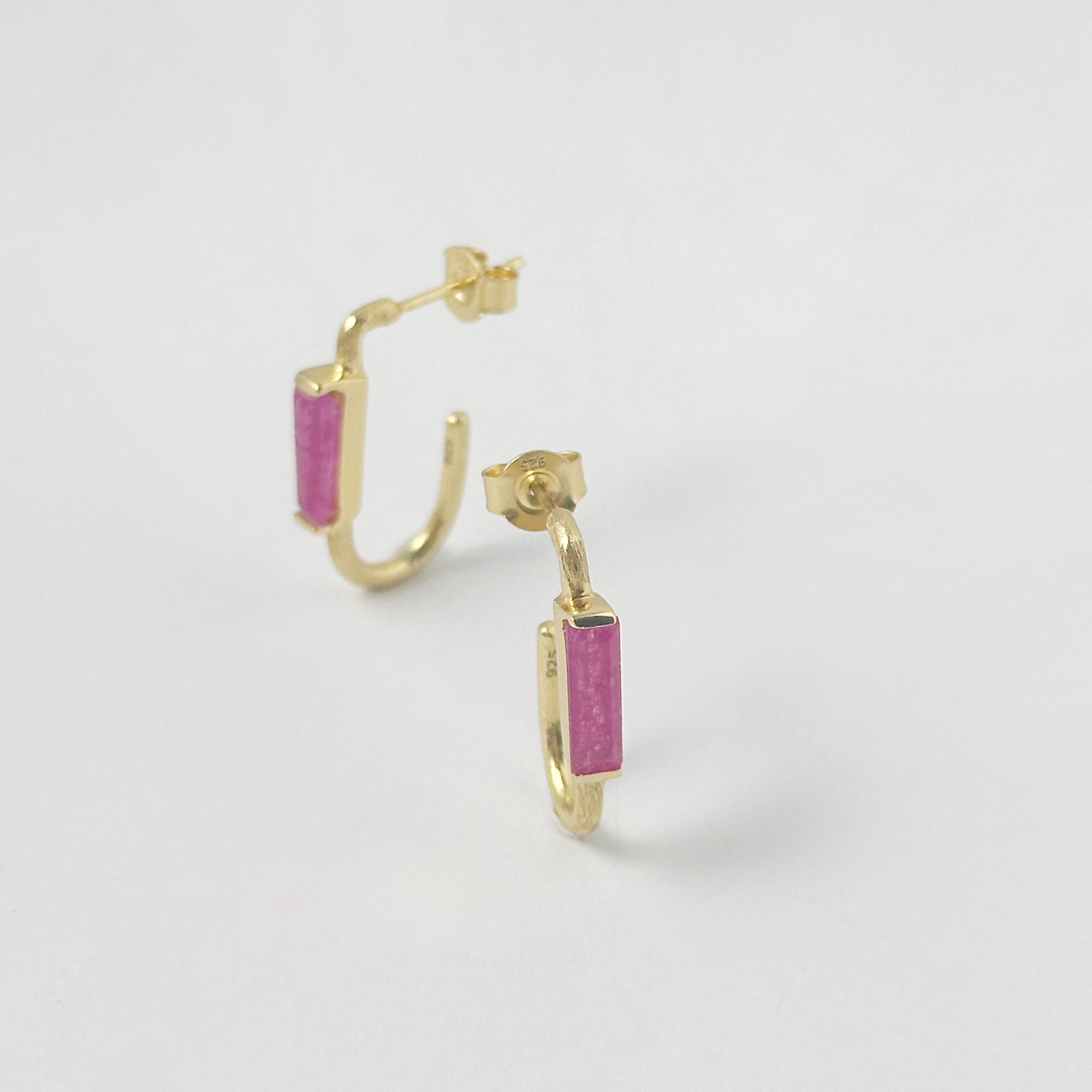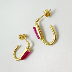 Gold Coating ピンク ジェード ロングフープ スタッド ピアス