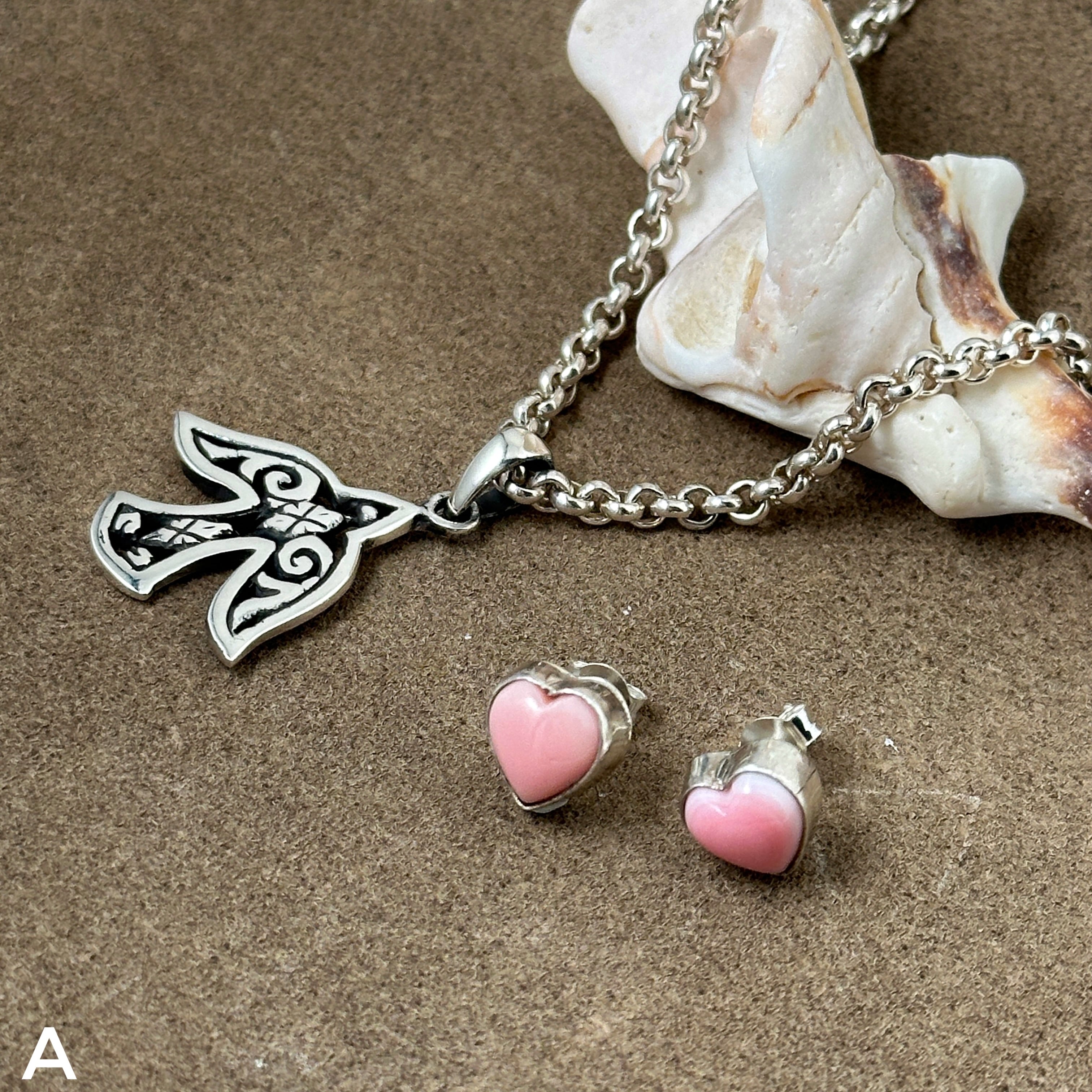 美しいコンクシェルを使用したインディアンジュエリーのハート型スタッドピアスです.