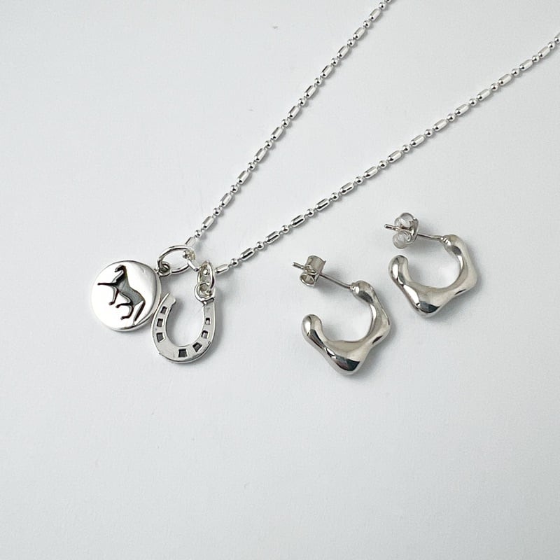 丸カンを片側につけることで、ホースシューが少し傾き、豊かな表情を見せてくれます。