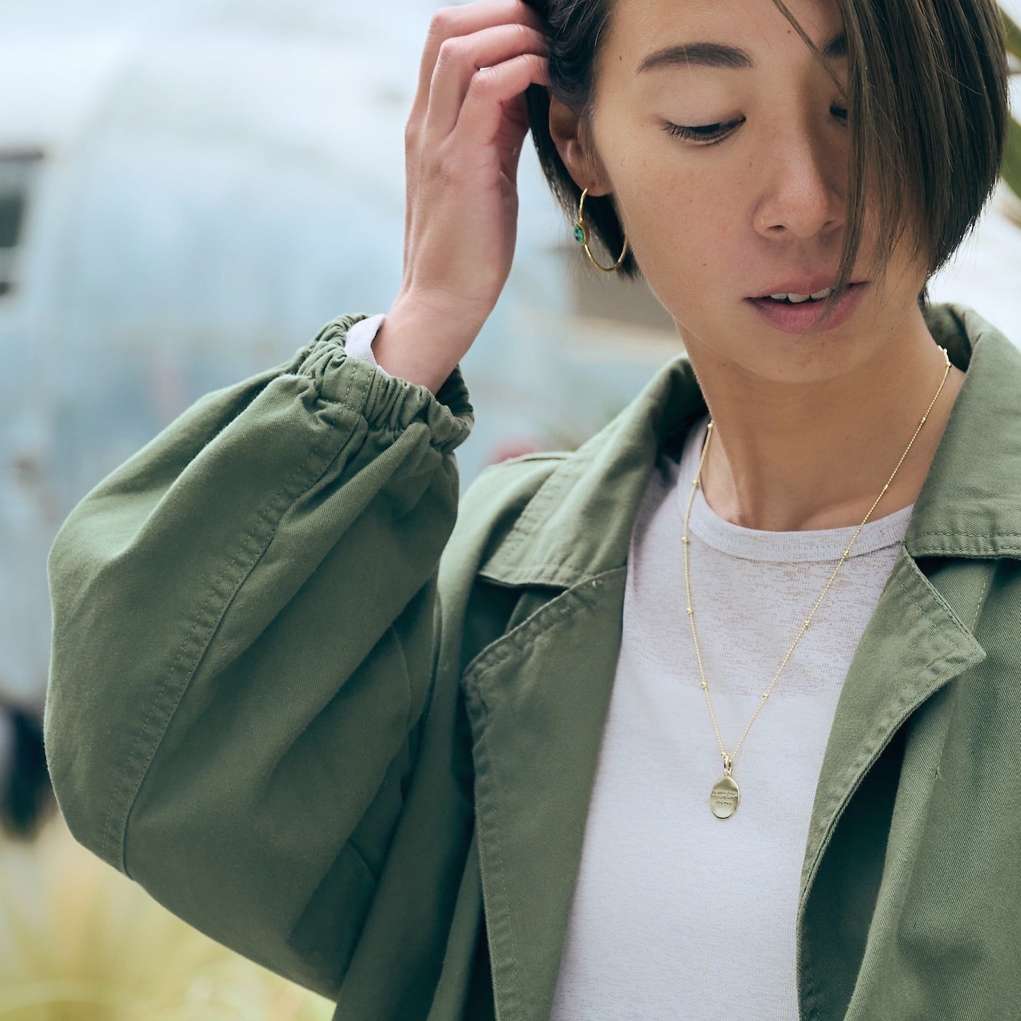 大人が身につける美しい横顔を作ってくれる、Gold coatingのスタッドフープピアス。