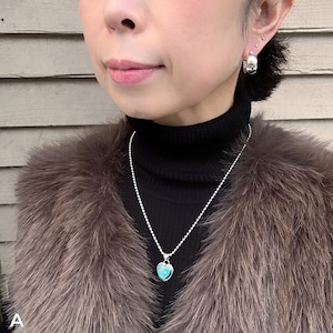 ハート型のペンダントは、シルバーの枠を作ってから、その中にターコイズを隙間なく埋め込むインレイワーク技法という、とても細かく高度な技法で作られています。