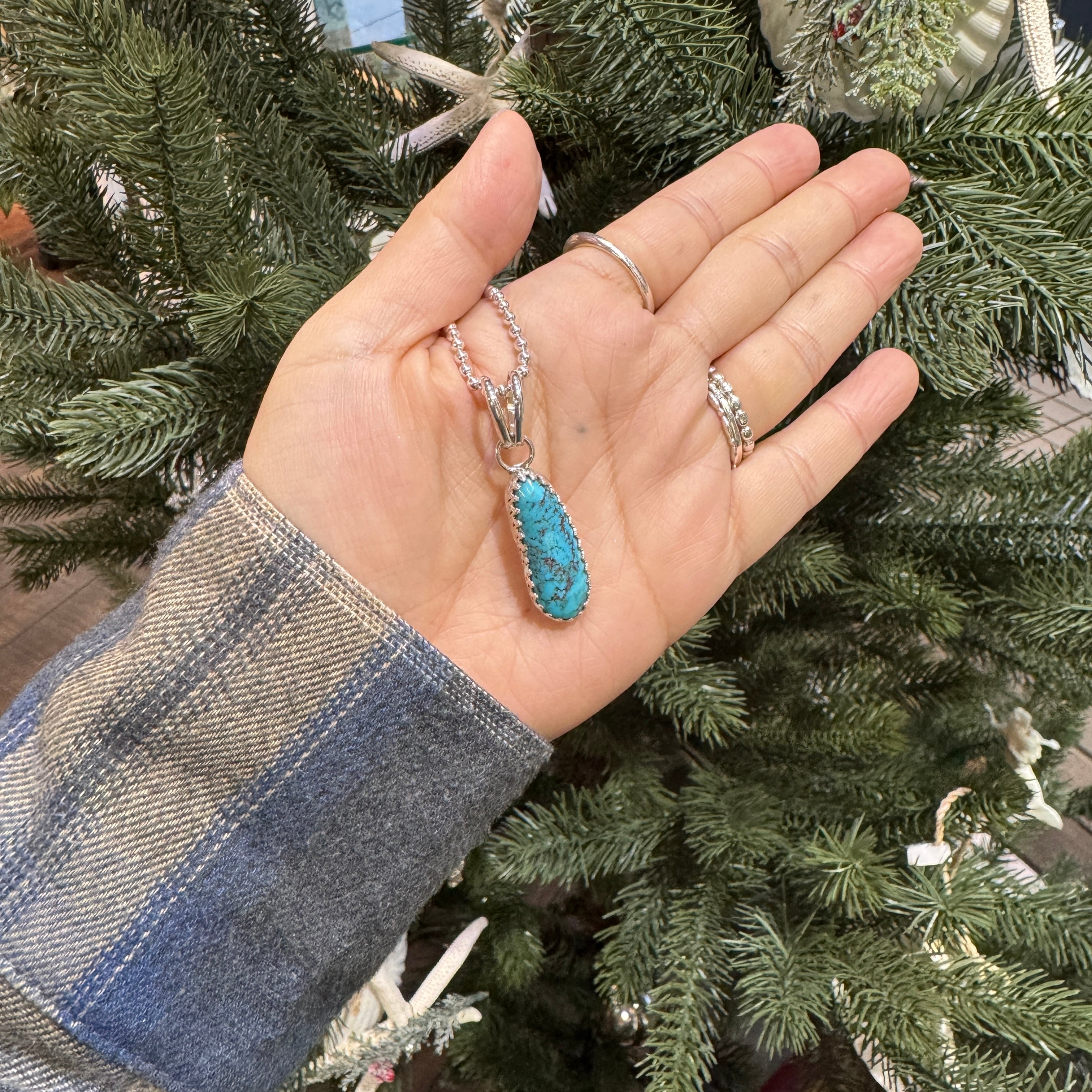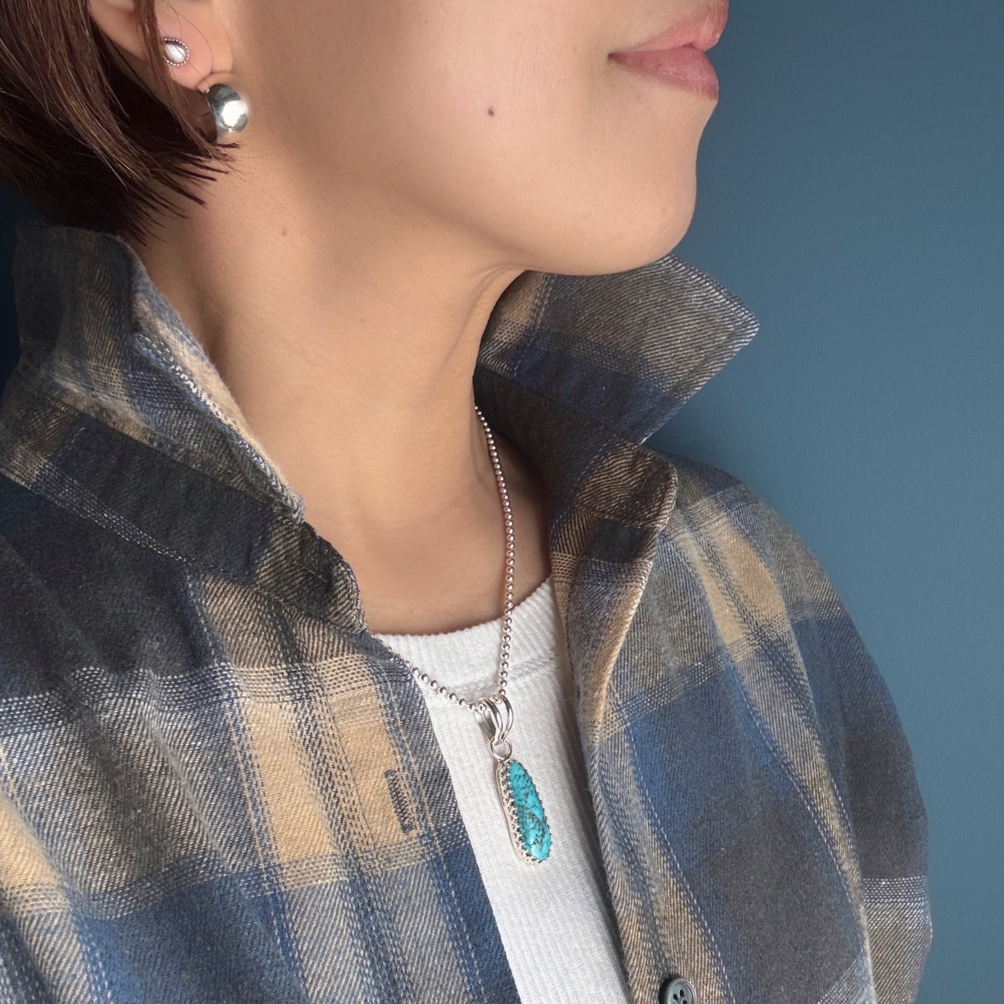 《Indian Jewelry 》キングマン ターコイズ ペンダント 一点物ネックレス (チェーン オプション)