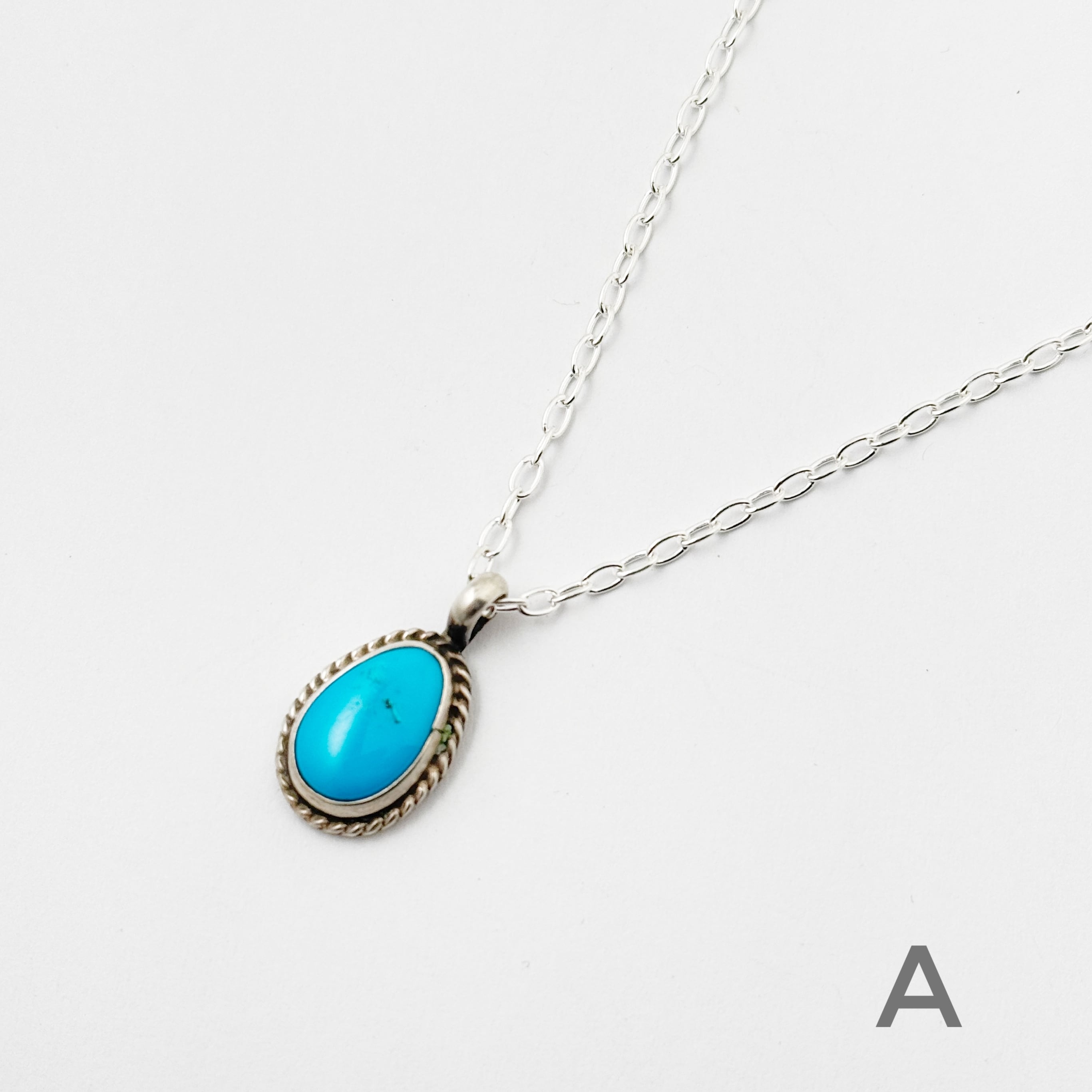 《Indian Jewelry 》キングマン ターコイズ ロープワーク ドロップ ペンダント ネックレス (チェーン オプション)