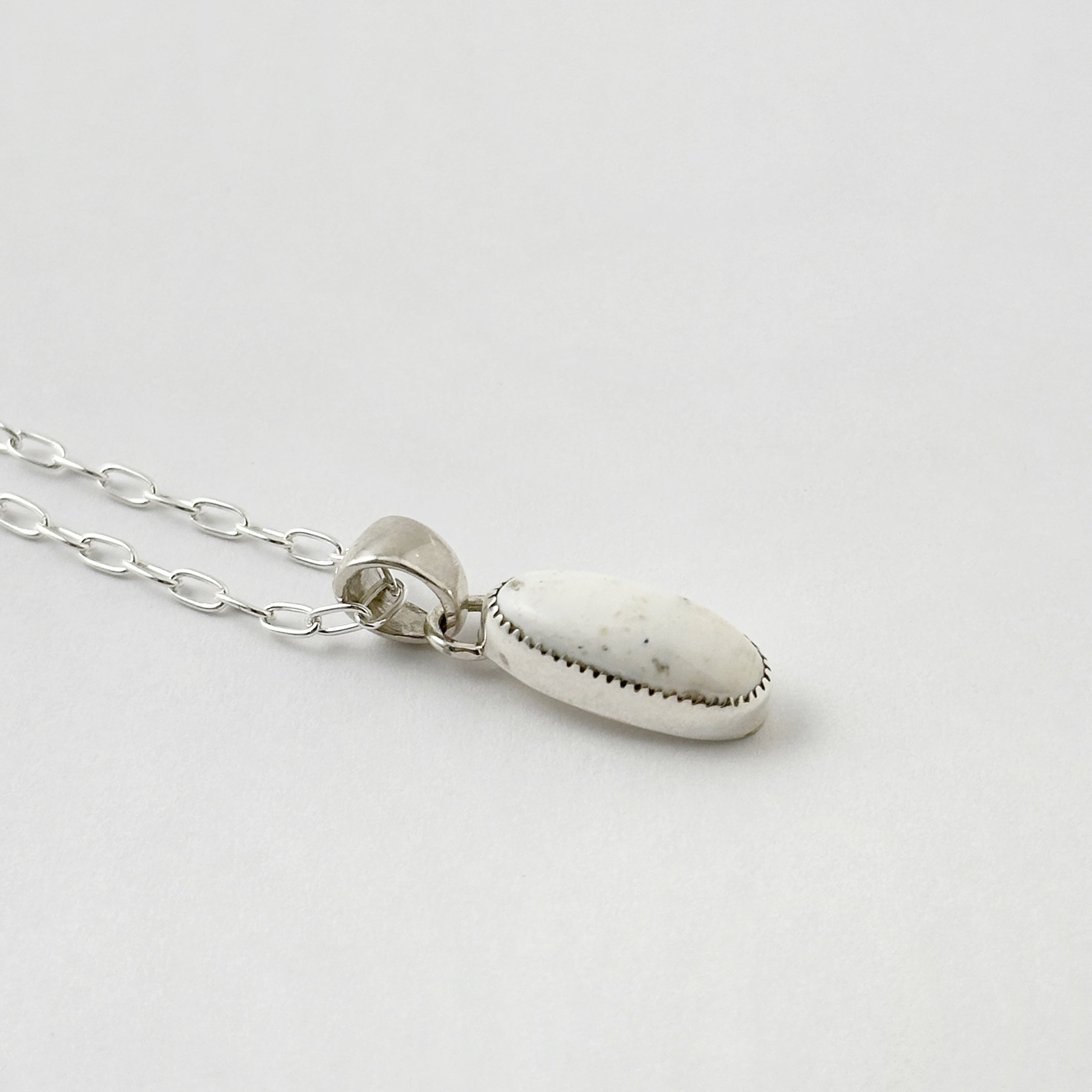 《Indian Jewelry 》ホワイトバッファロー スリム オーバル型 S ペンダント ネックレス (チェーン オプション)