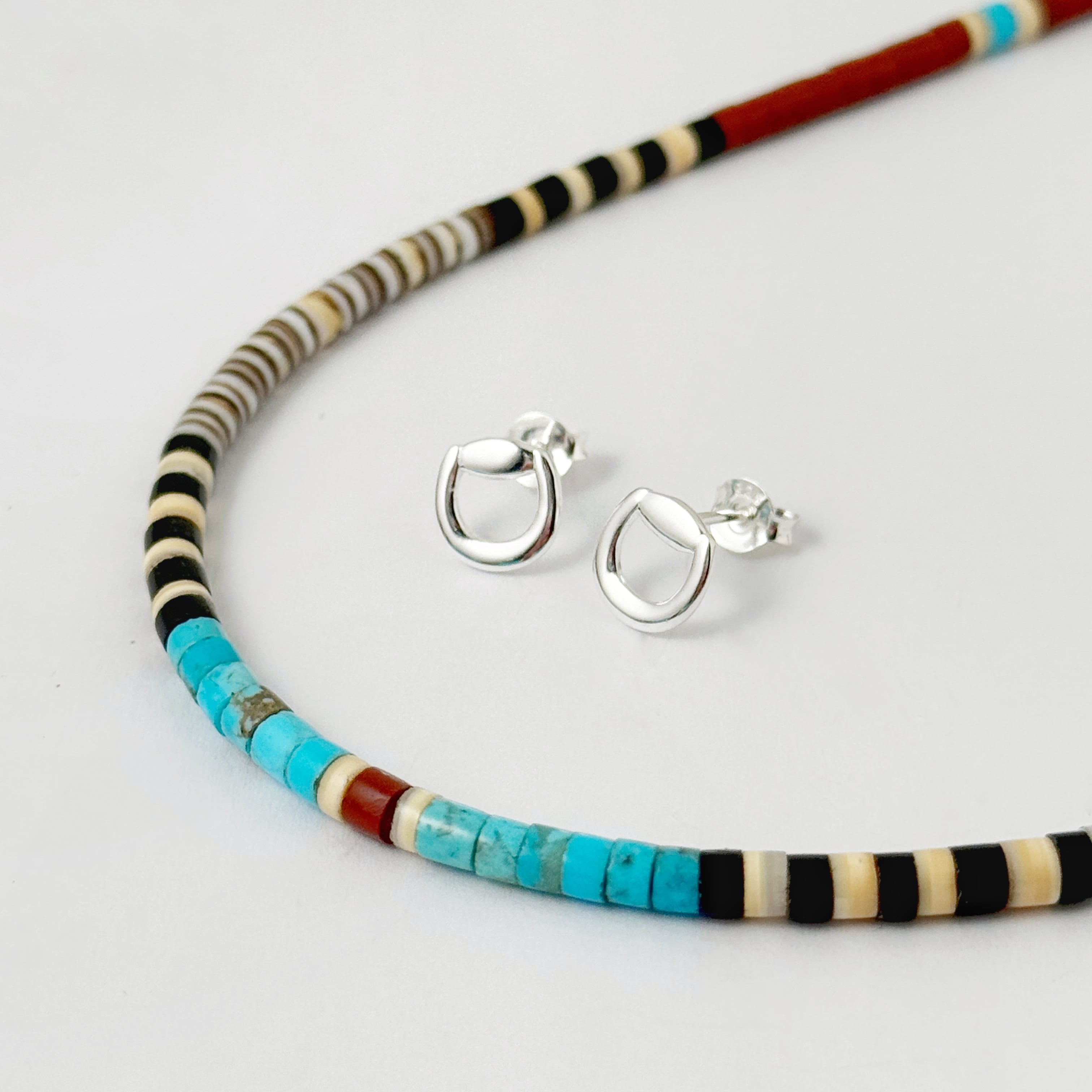 鎧(あぶみ)・馬蹄のデザインをした小さなスタッドピアスです。