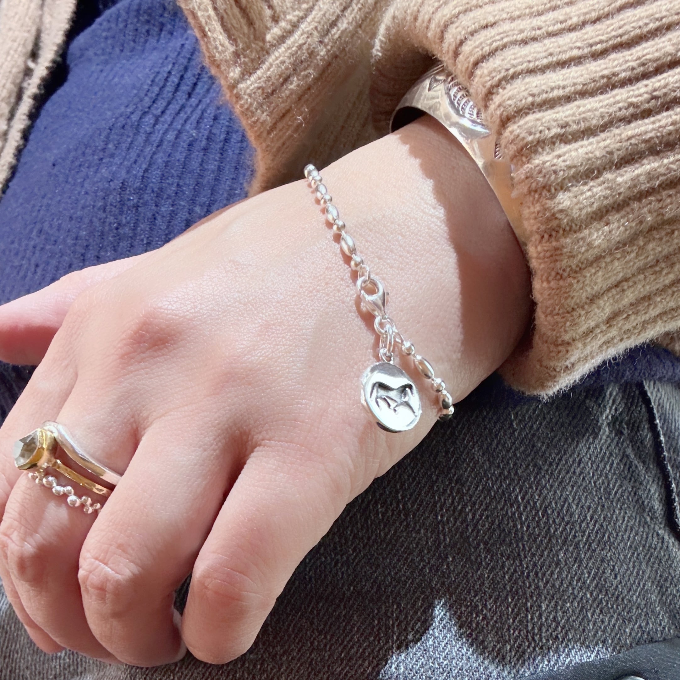 変形ライスチェーンとホースコインをブレスレットにしました。