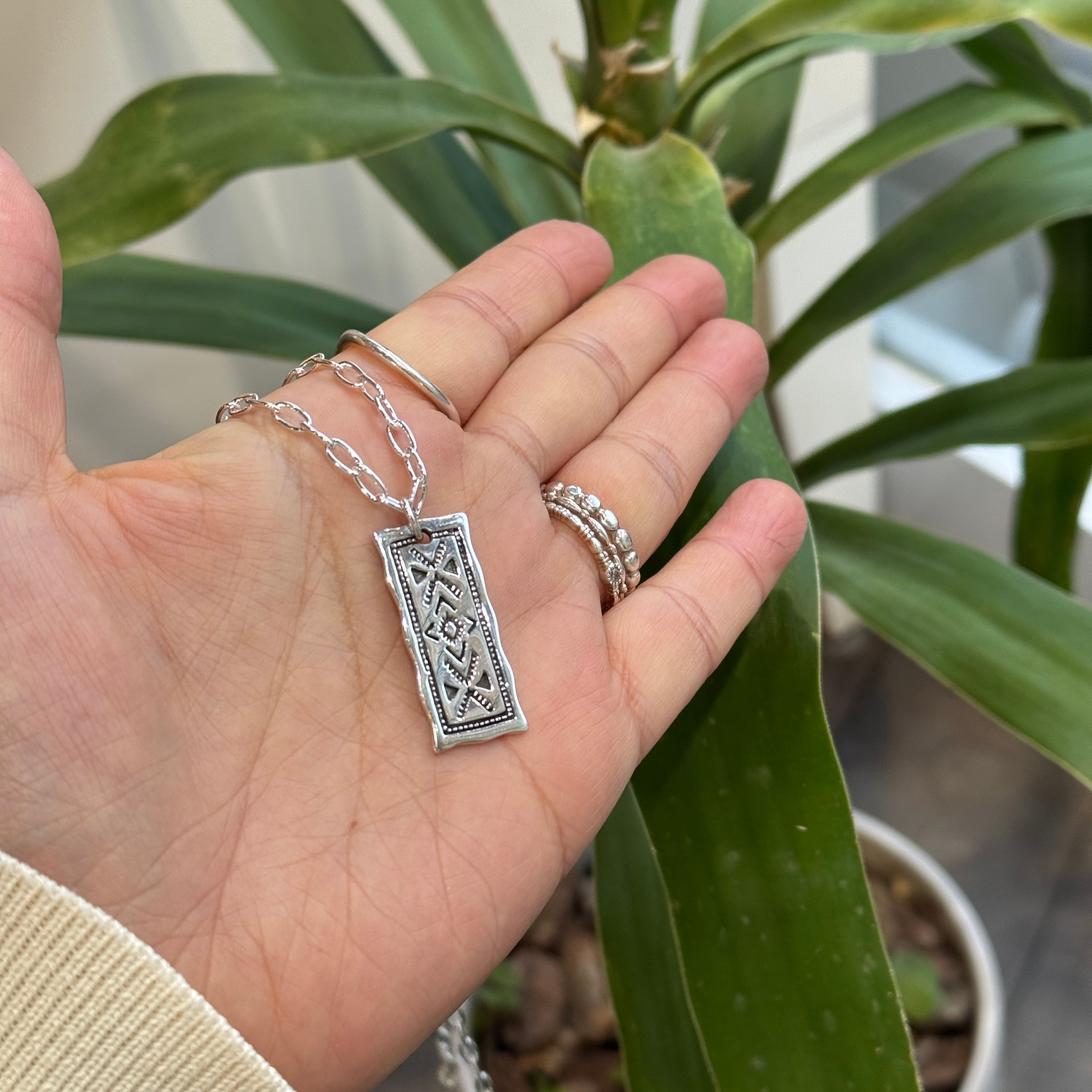 ネイティブ柄 スクエアプレート ペンダント ネックレス
