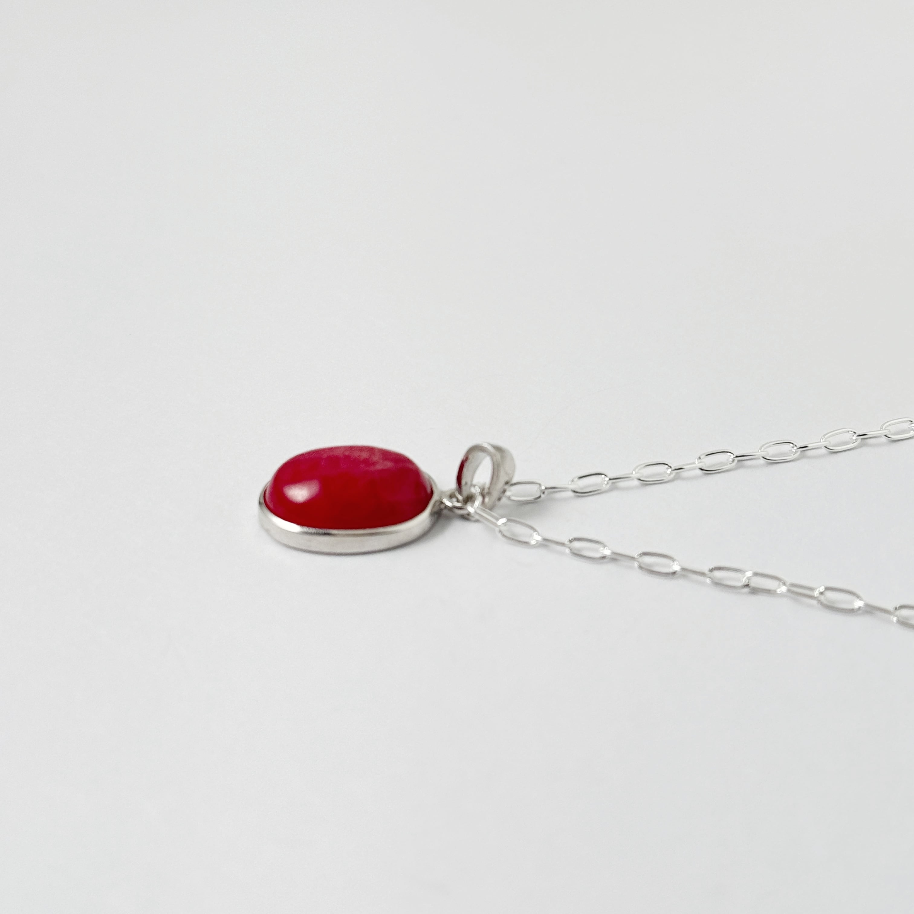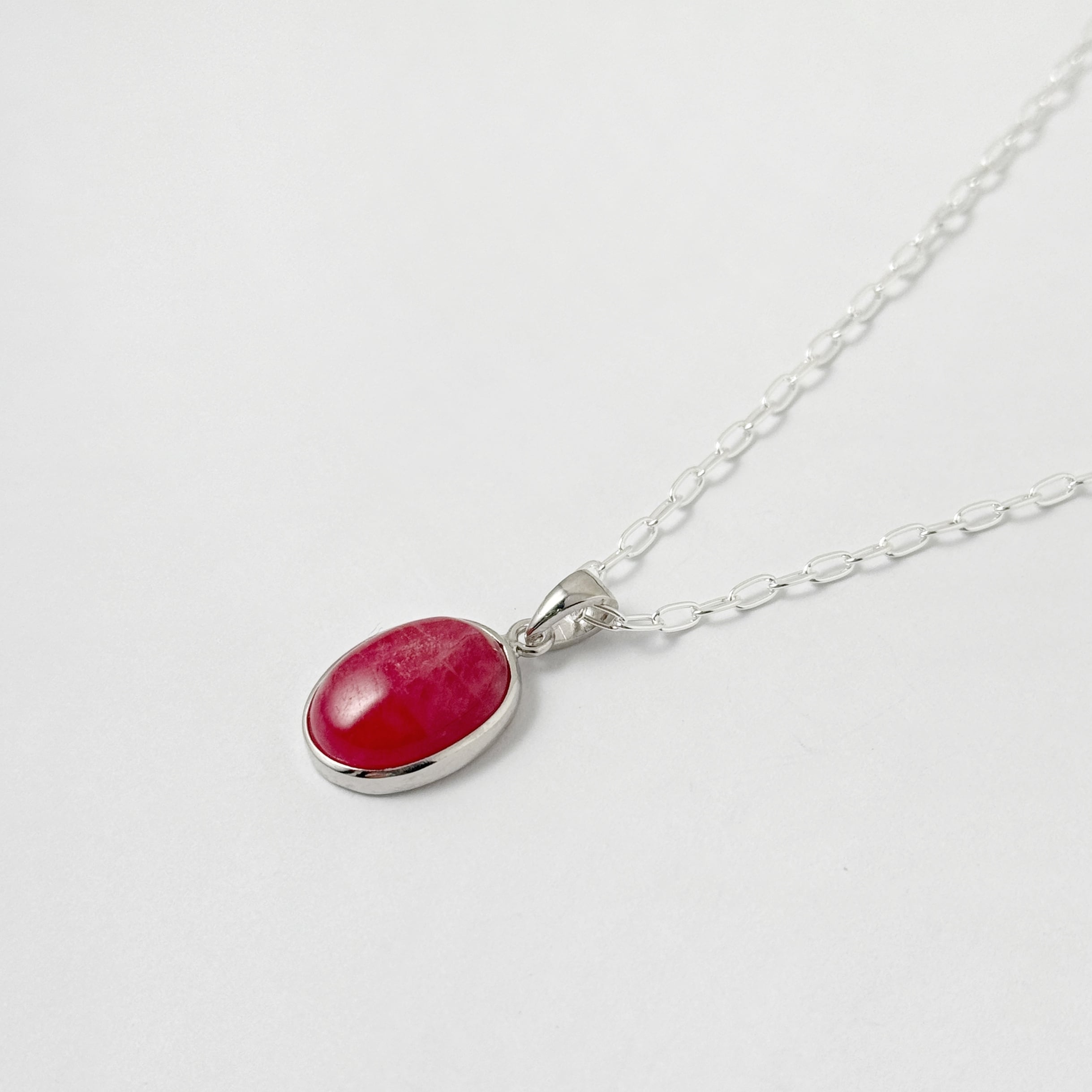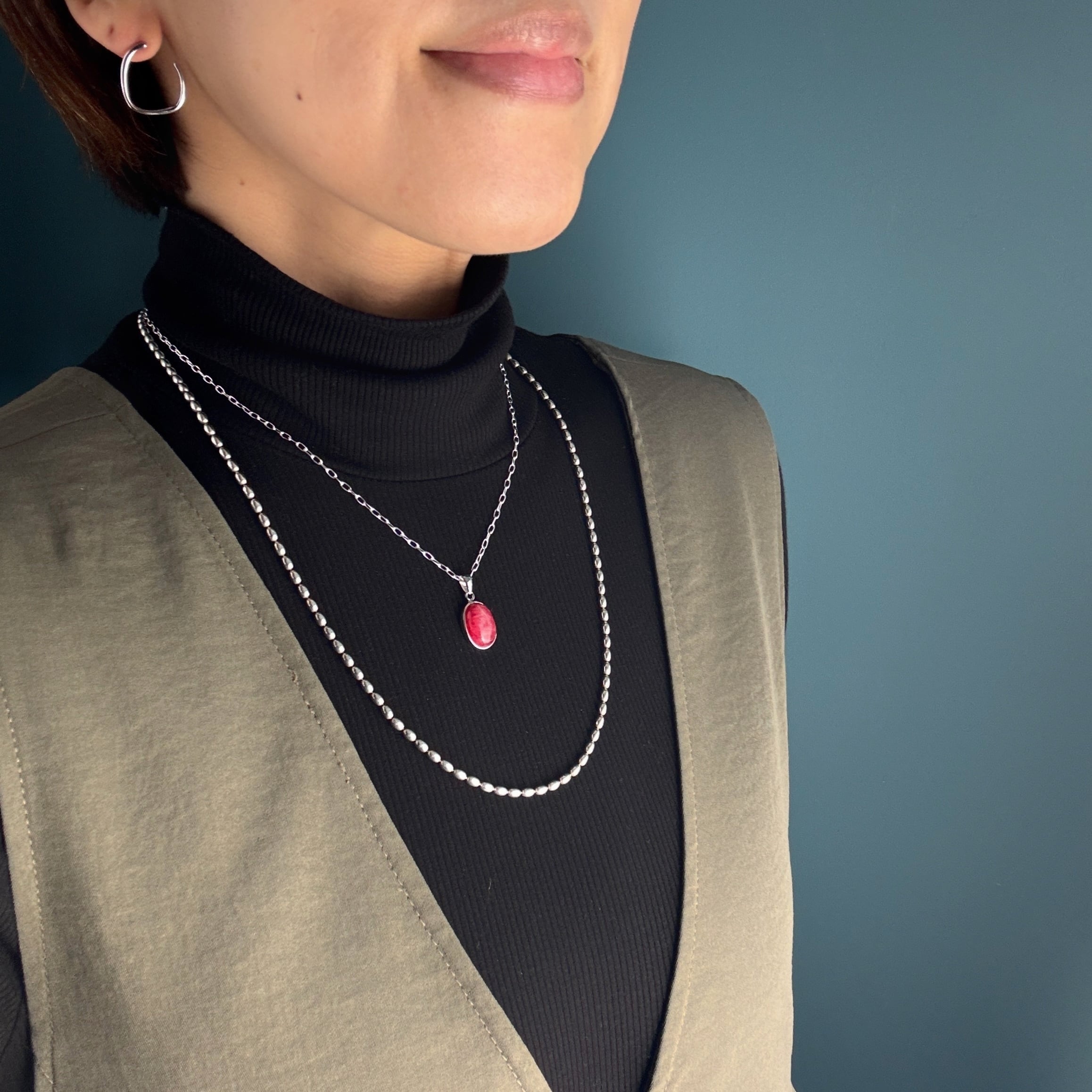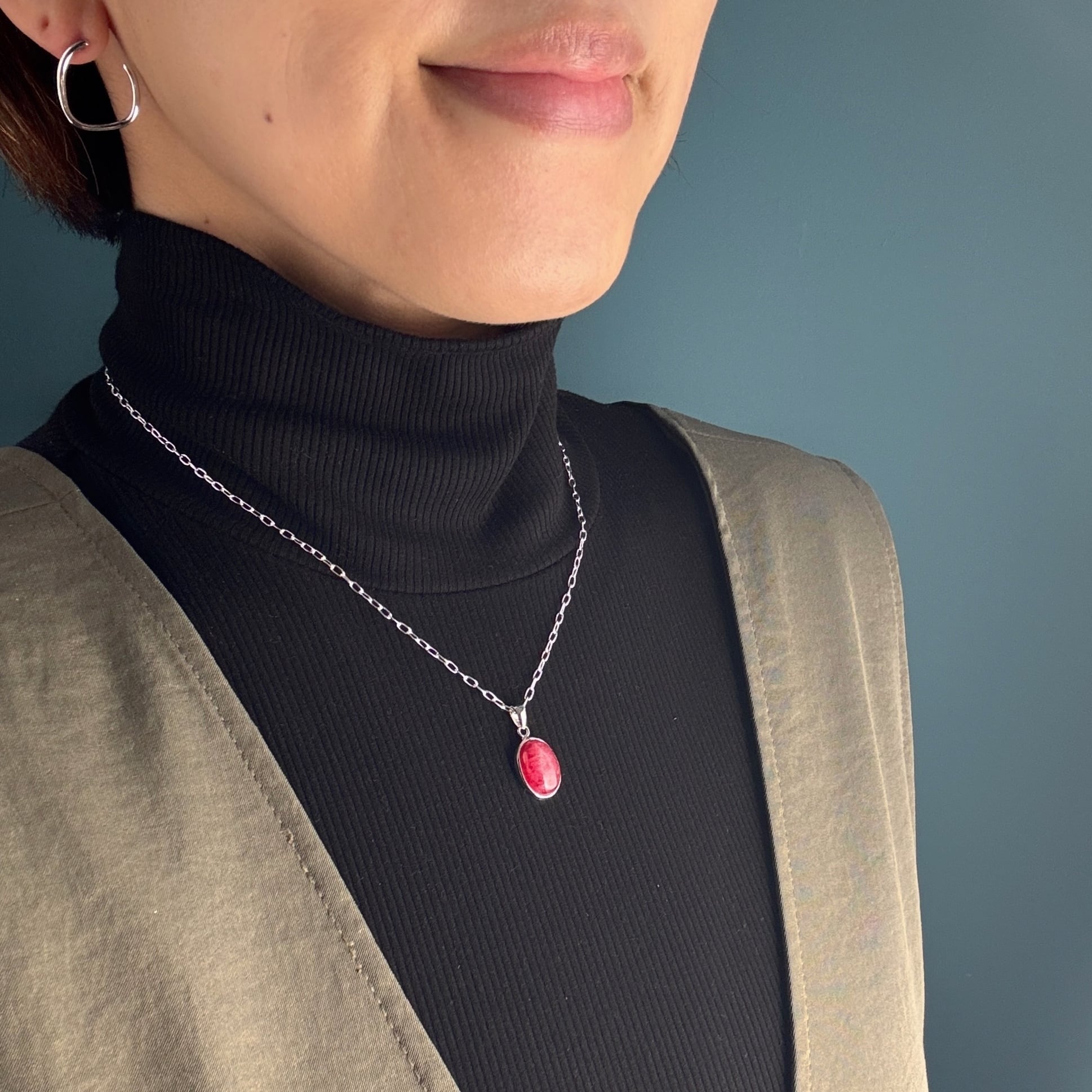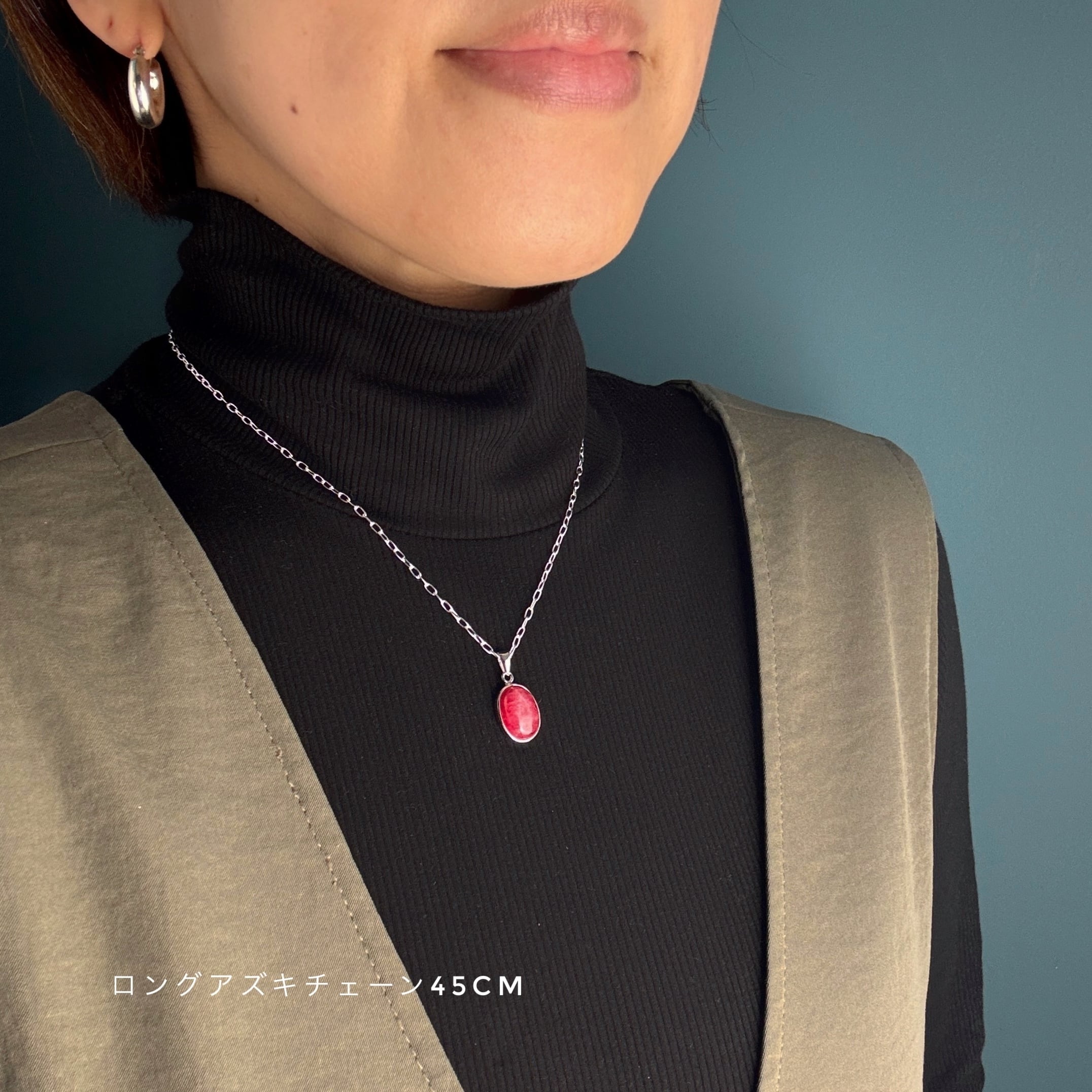 シンプルなシルバーフレームの中に、上品な赤色のロードナイトが嵌め込まれています
