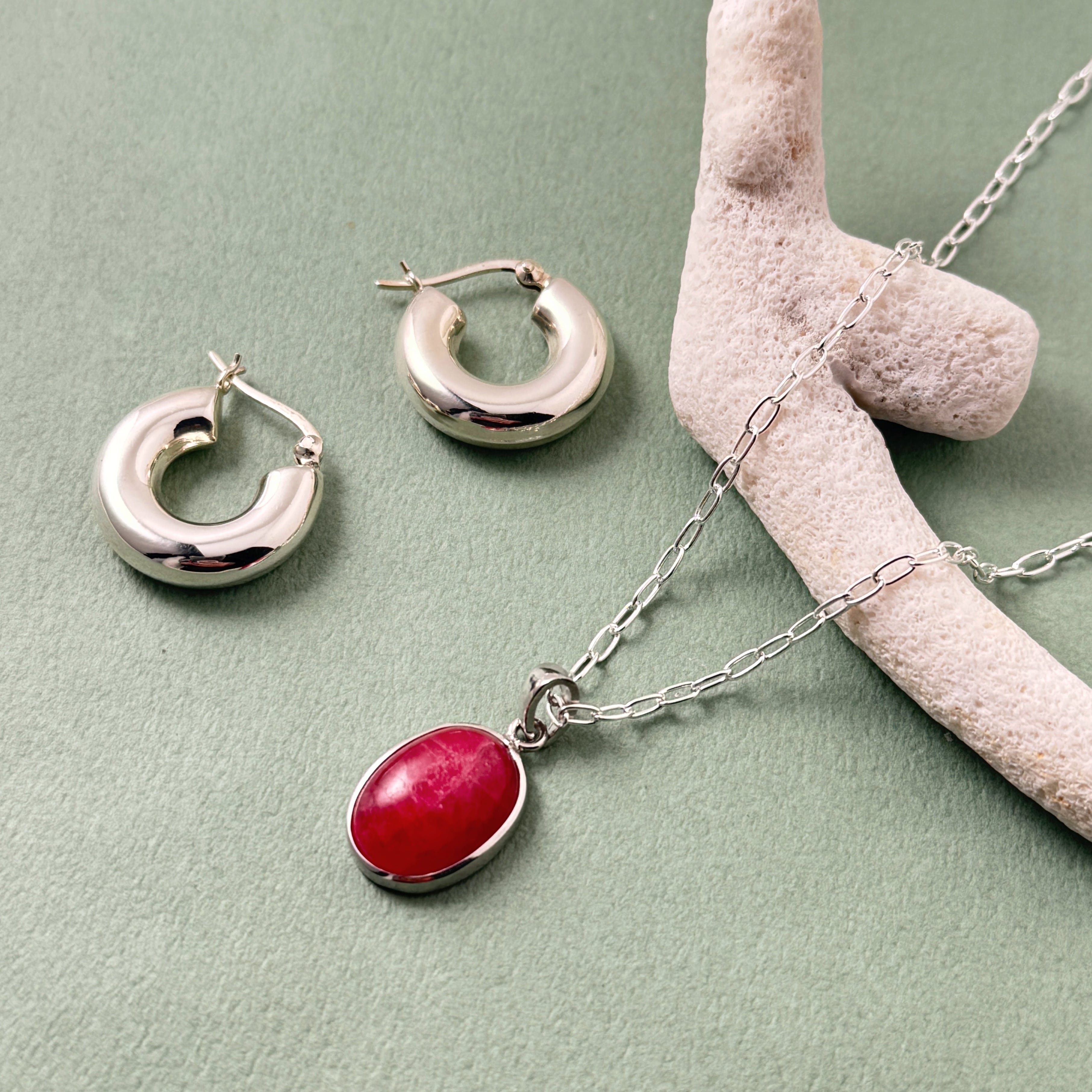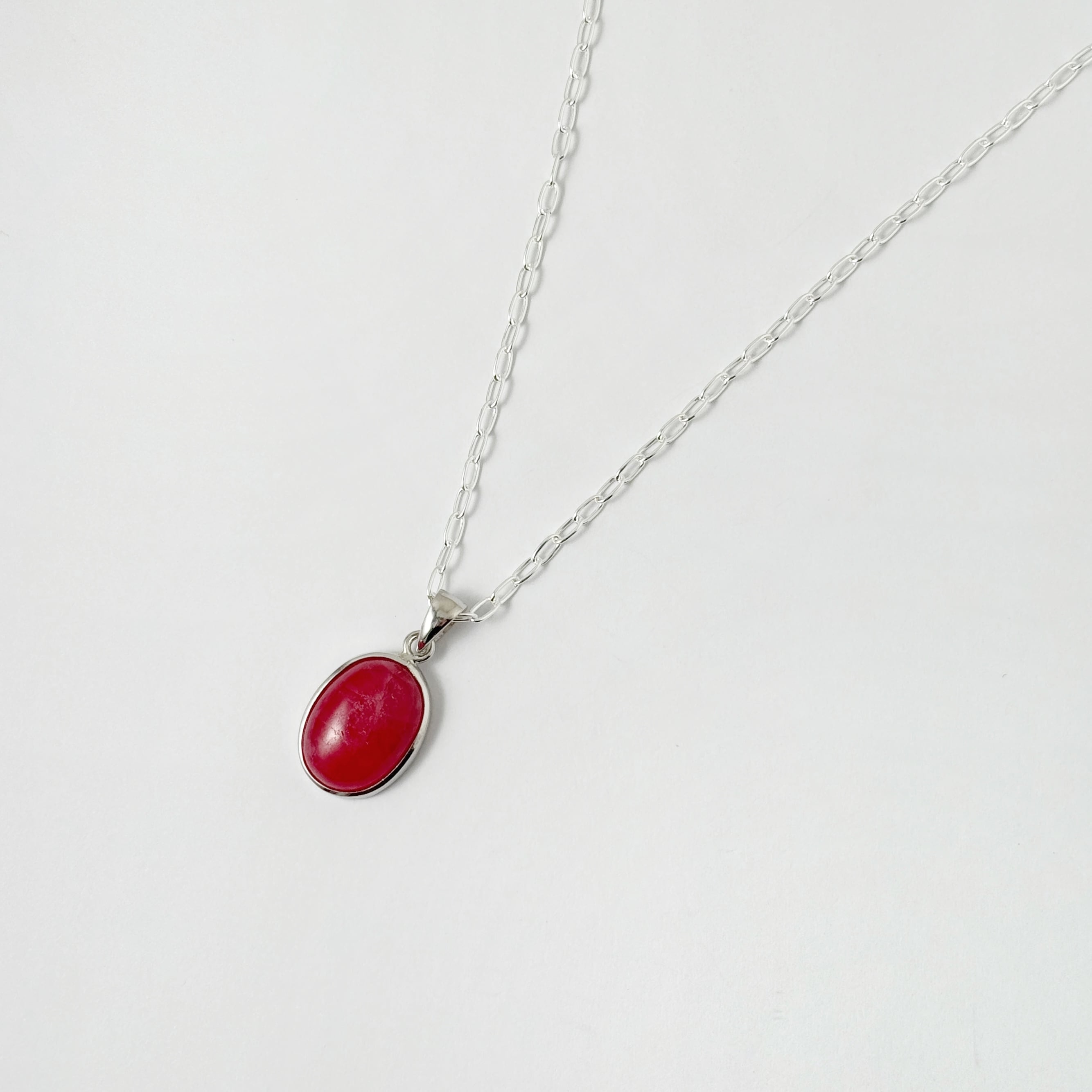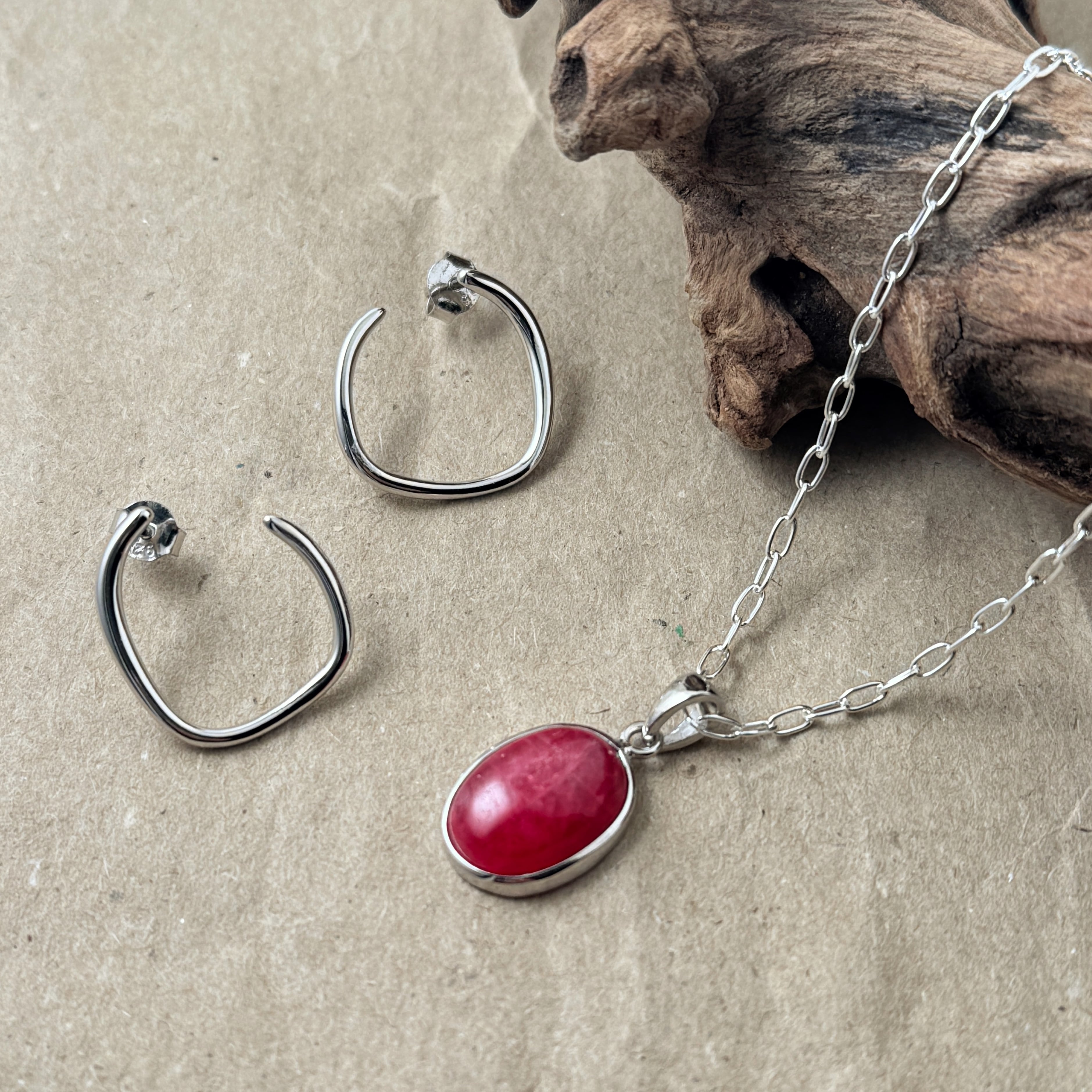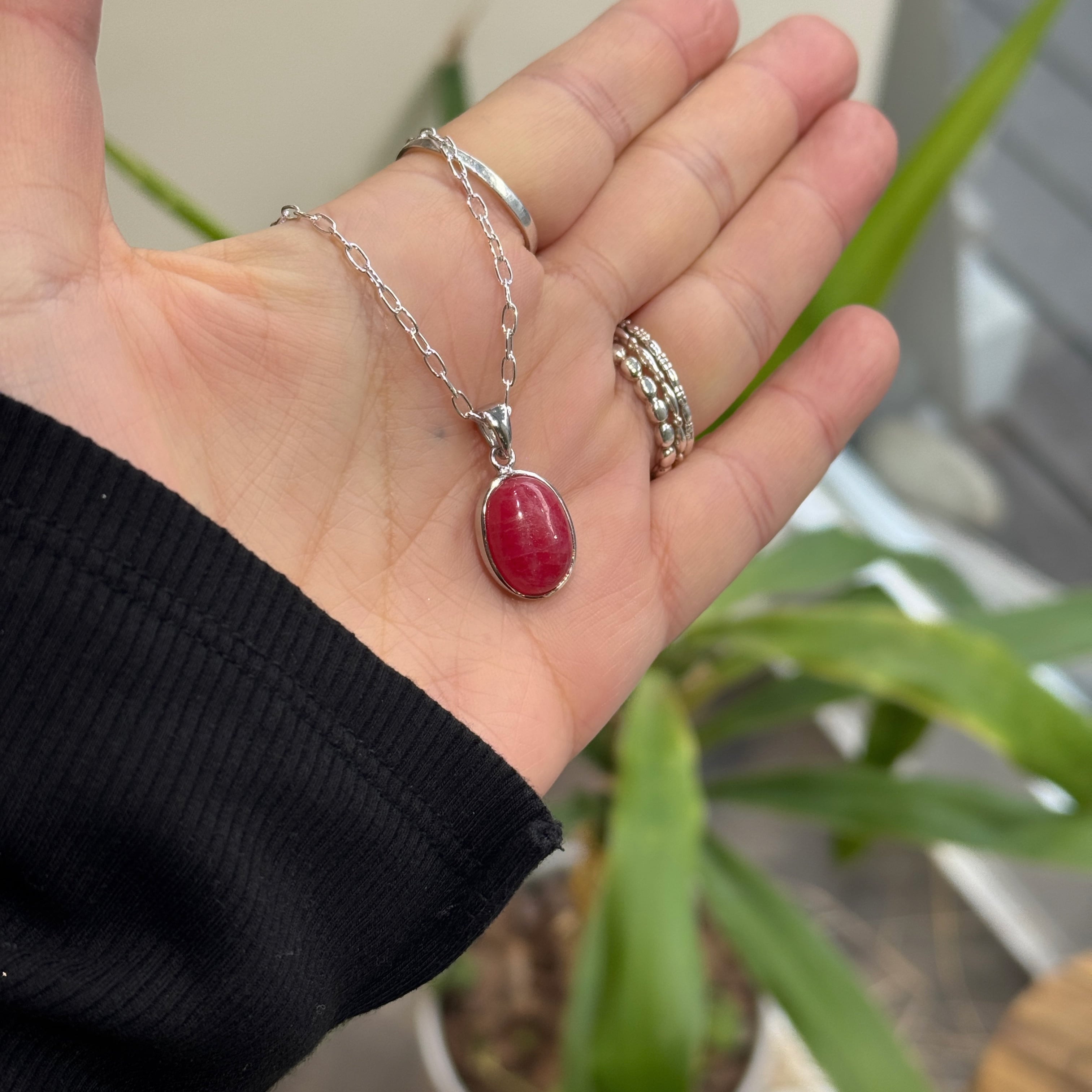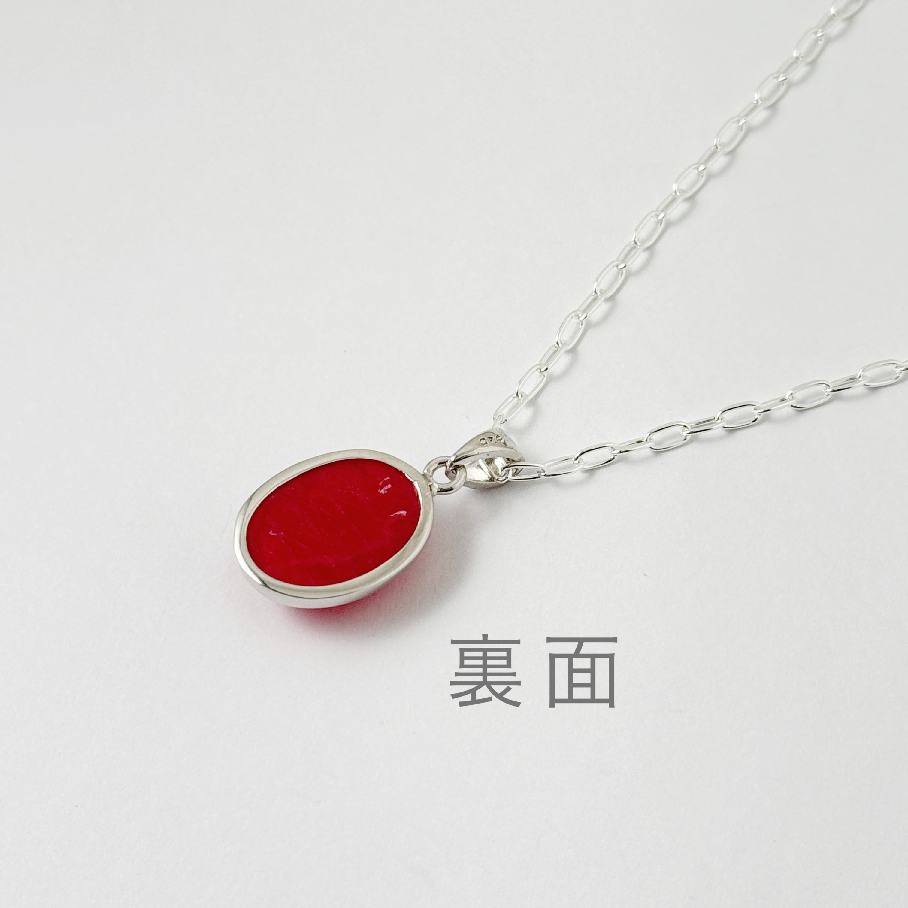 シンプルなシルバーフレームの中に、上品な赤色のロードナイトが嵌め込まれています