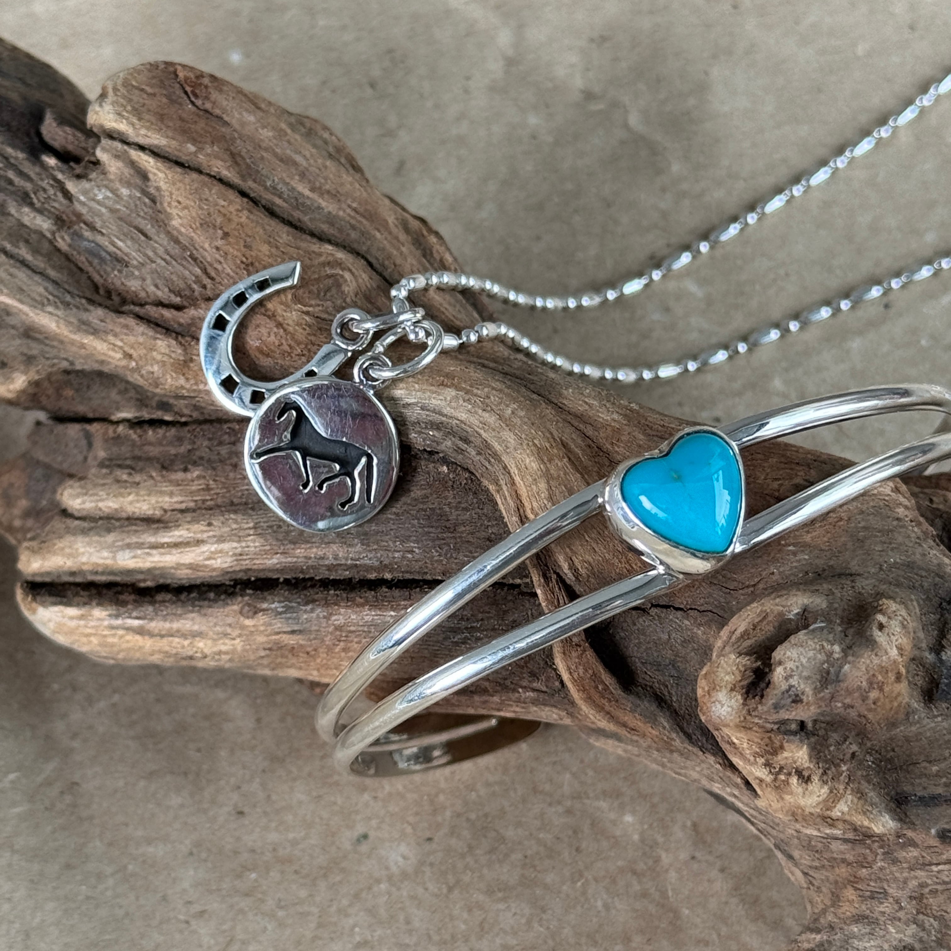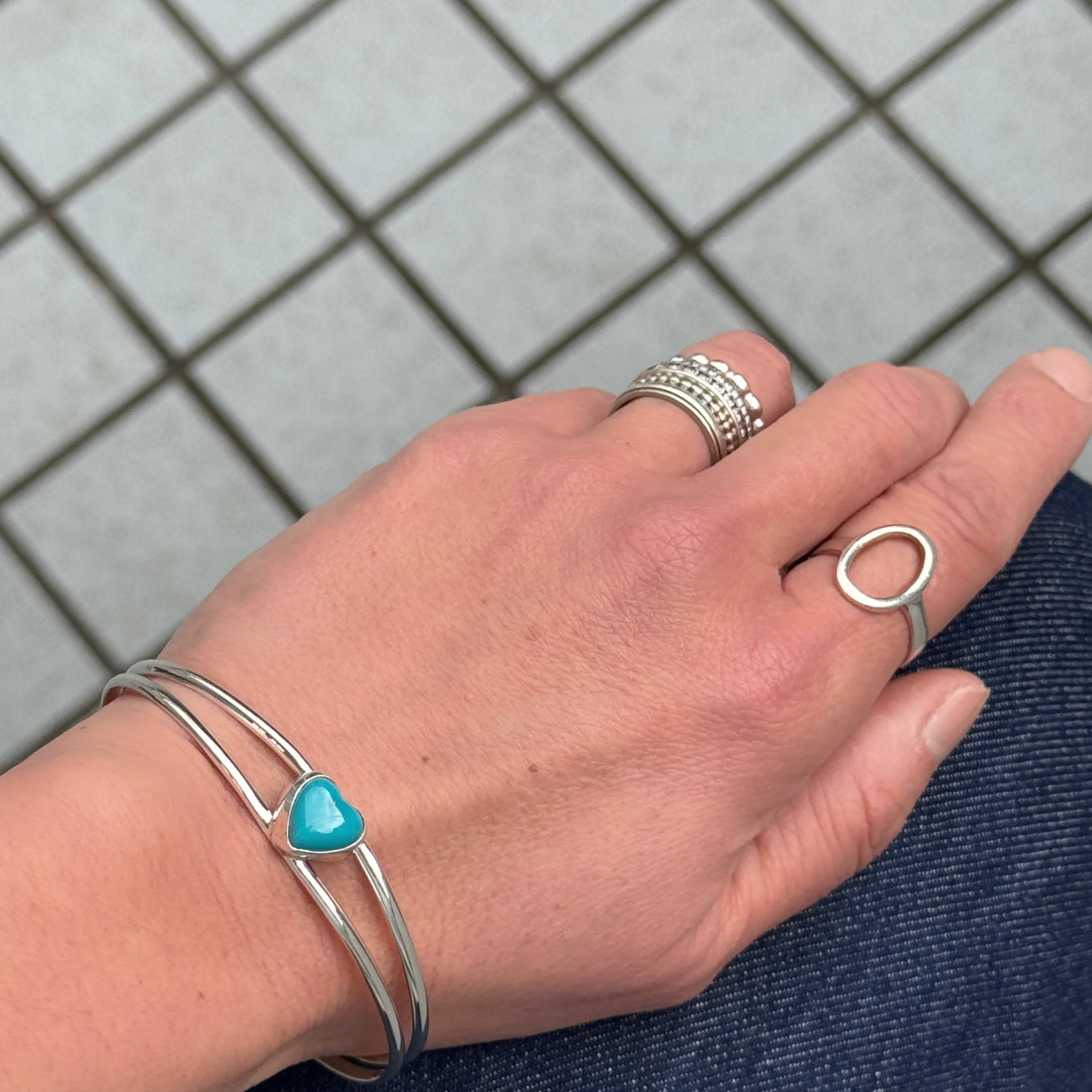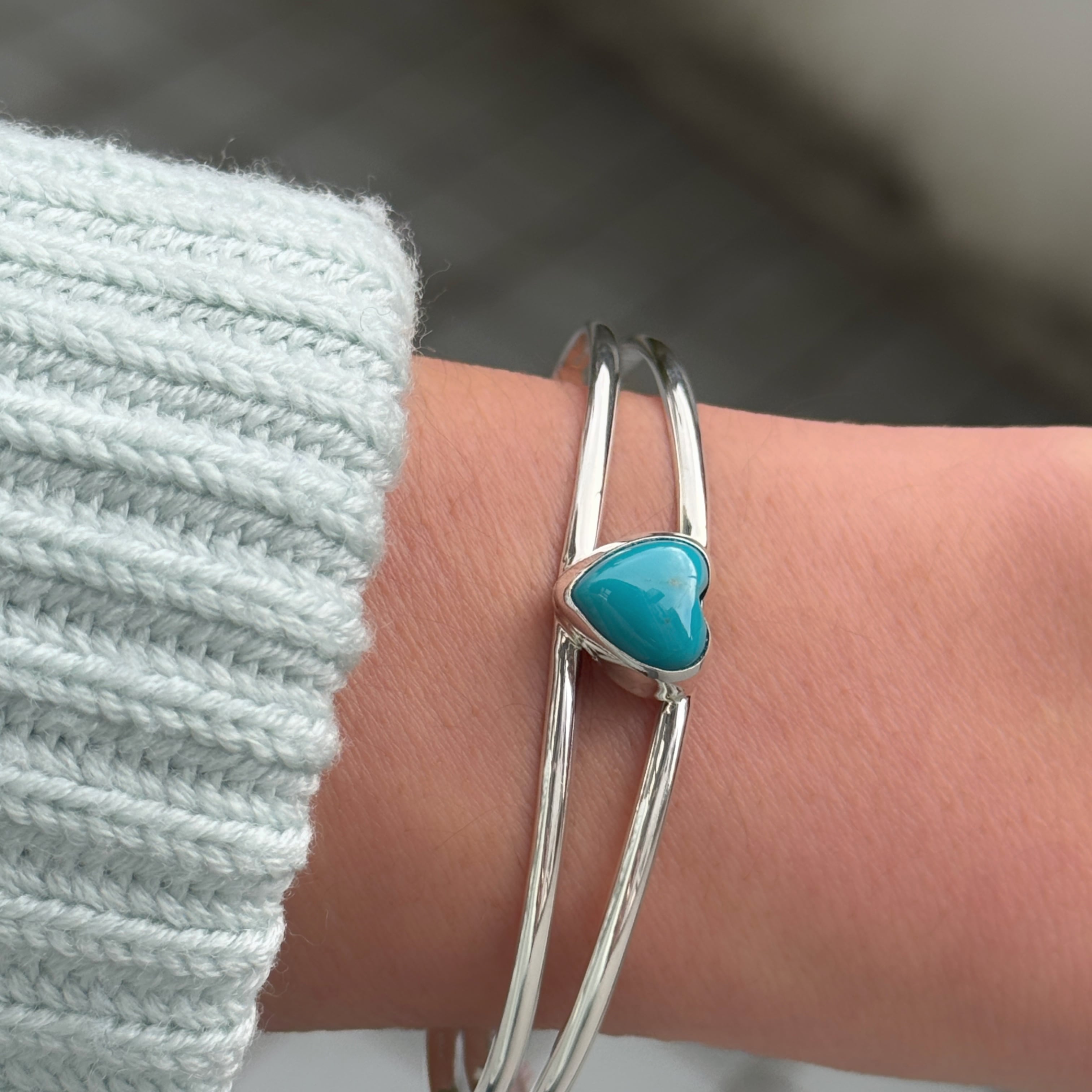 ハートシェイプのターコイズバングルは、常にお探しのお客様も多く、とても人気の高いジュエリー。