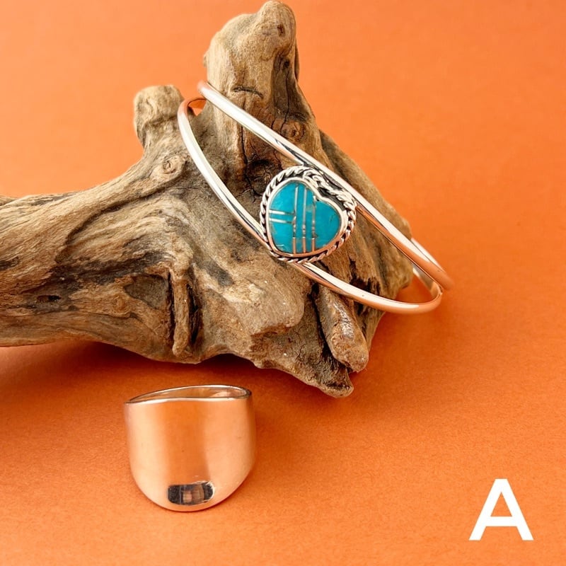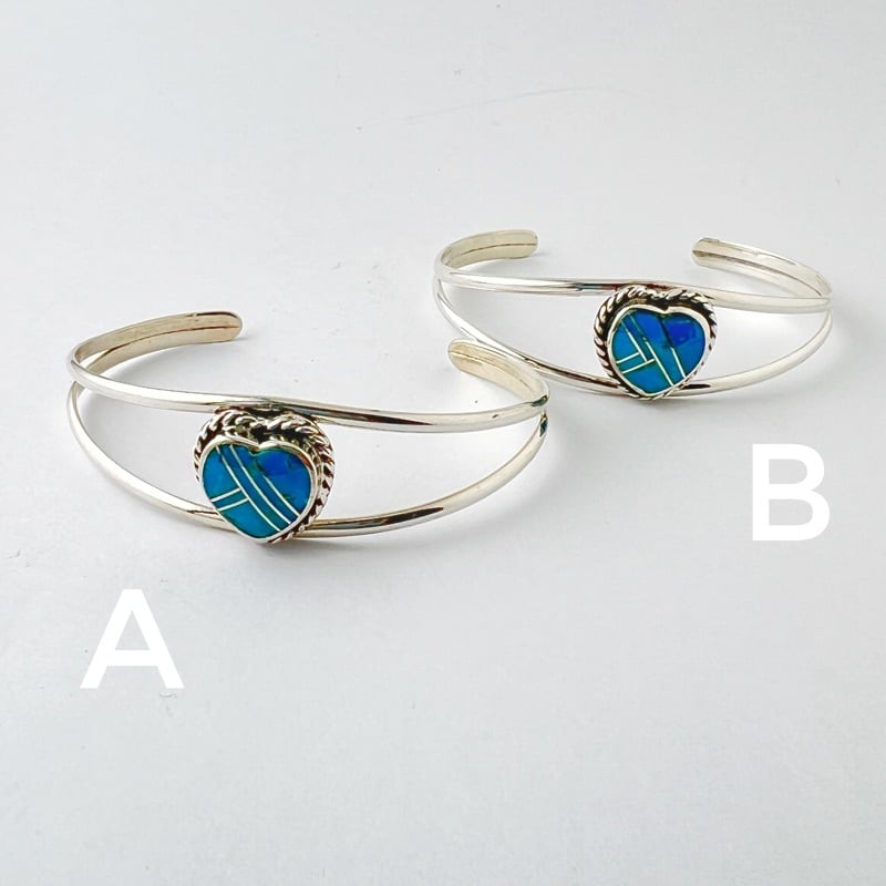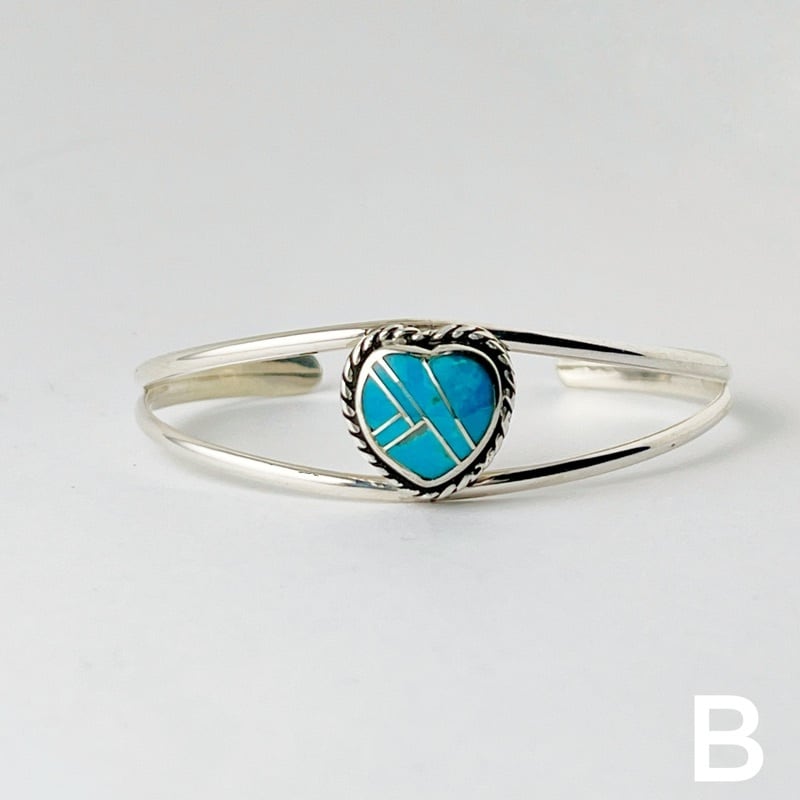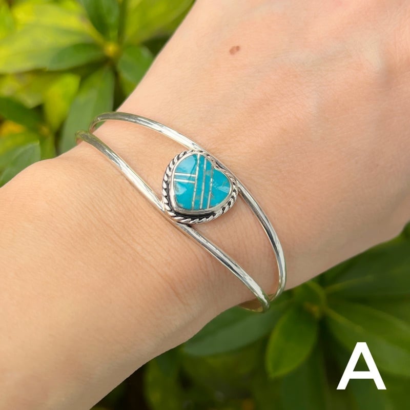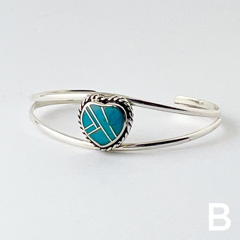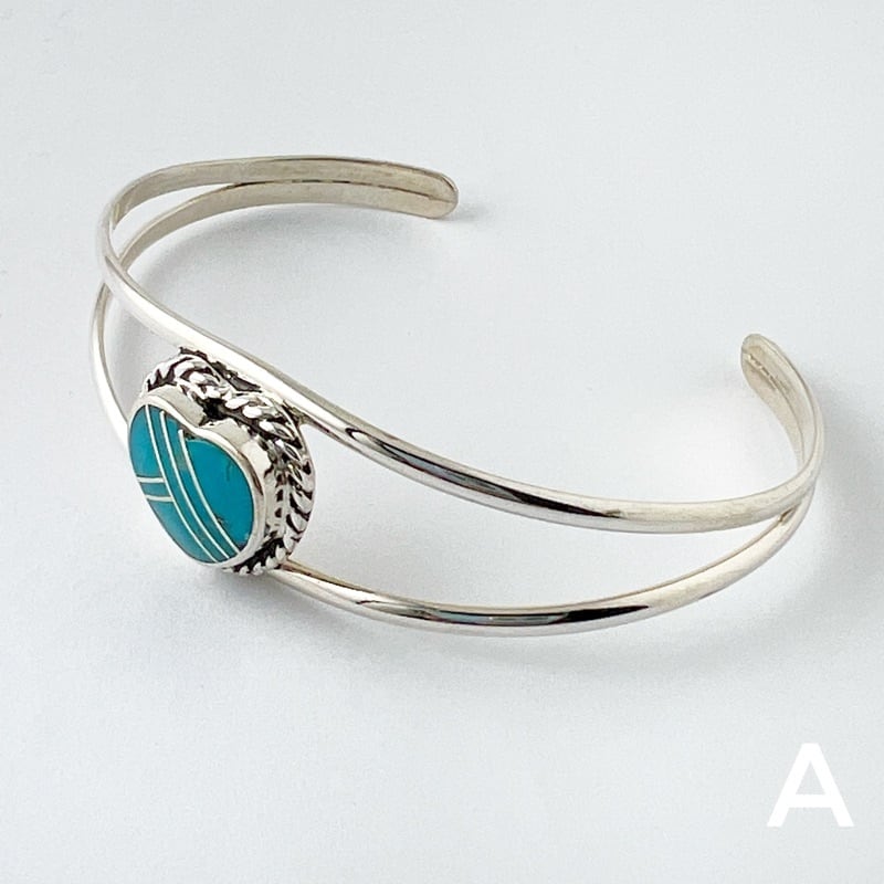 《Indian Jewelry》ハート モザイク ターコイズ ロープワーク バングル インレイ