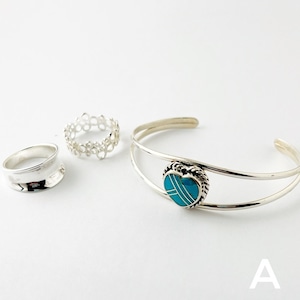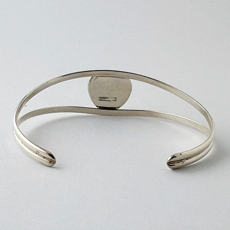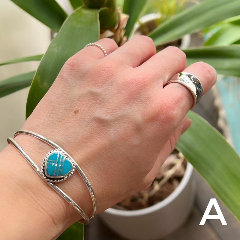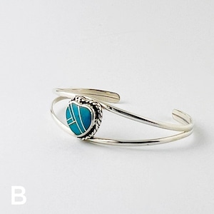 インレイバングルは、シルバーの枠を作ってから、その中にターコイズを隙間なく埋め込む技法により作製され、とても細かく高度な技法で作られています。