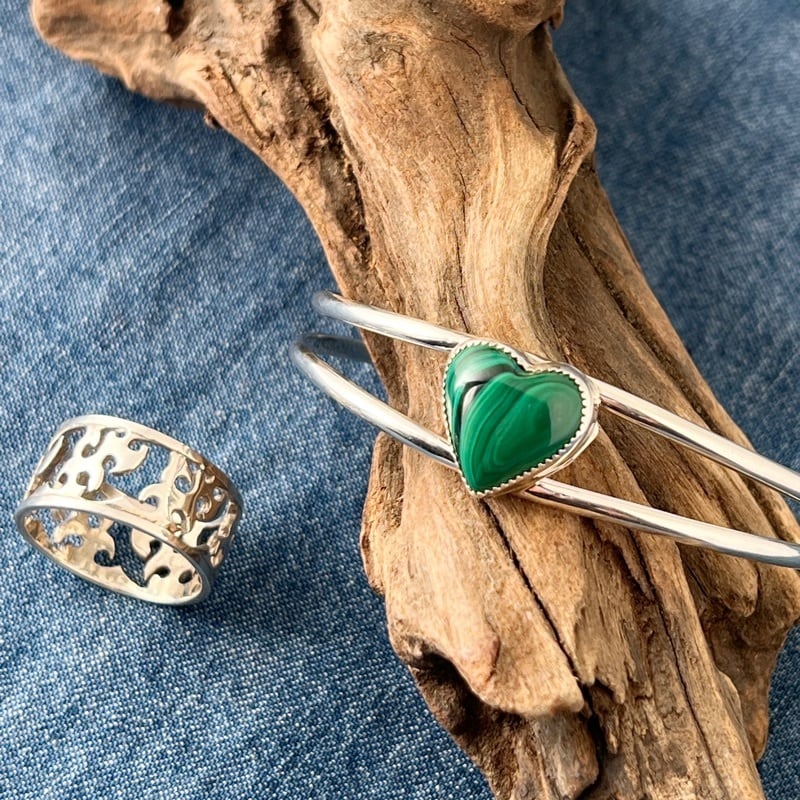 《Indian Jewelry 》ハート マラカイト グリーン バングル