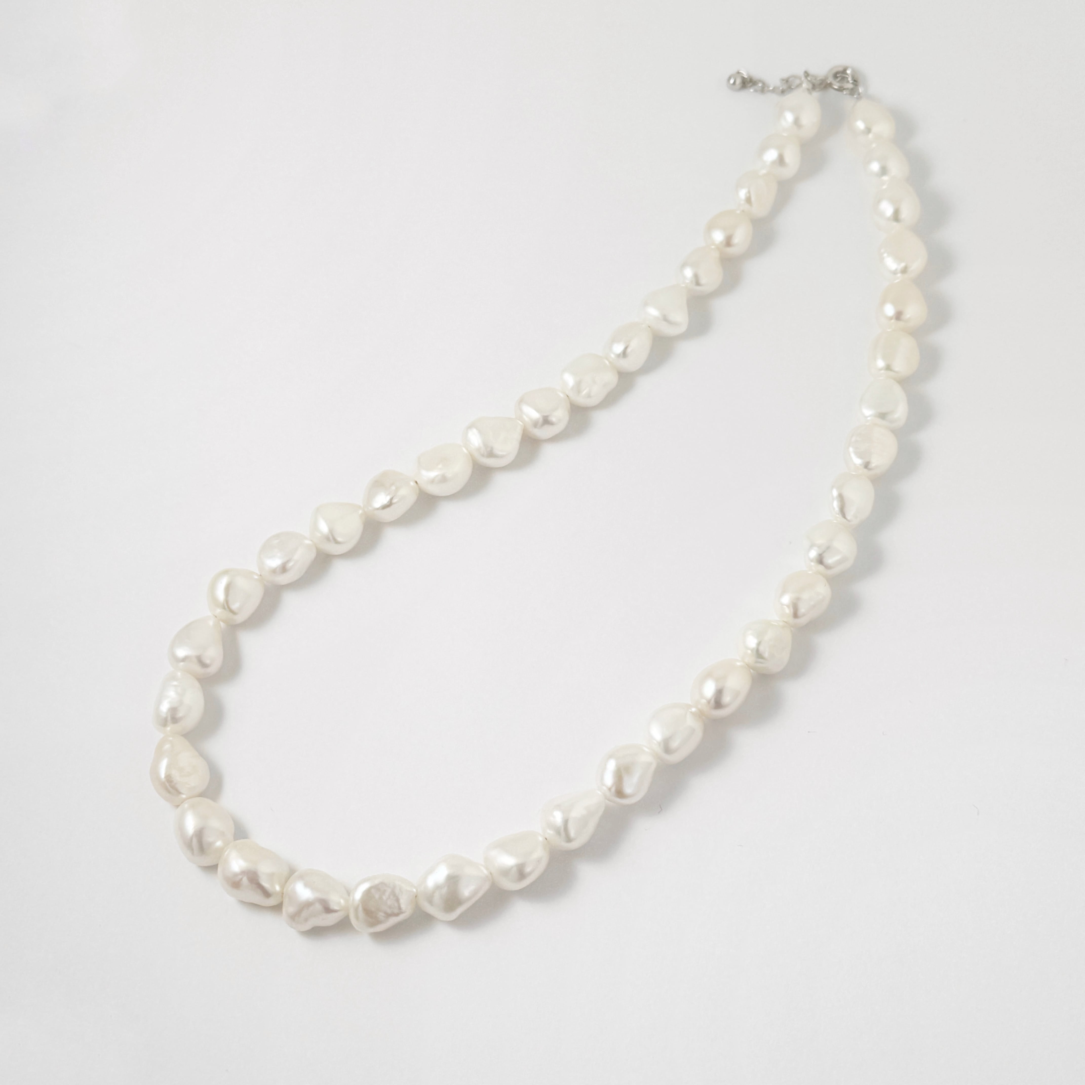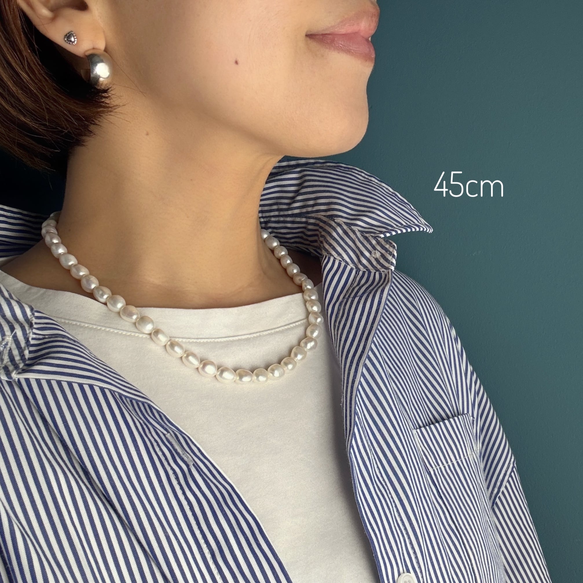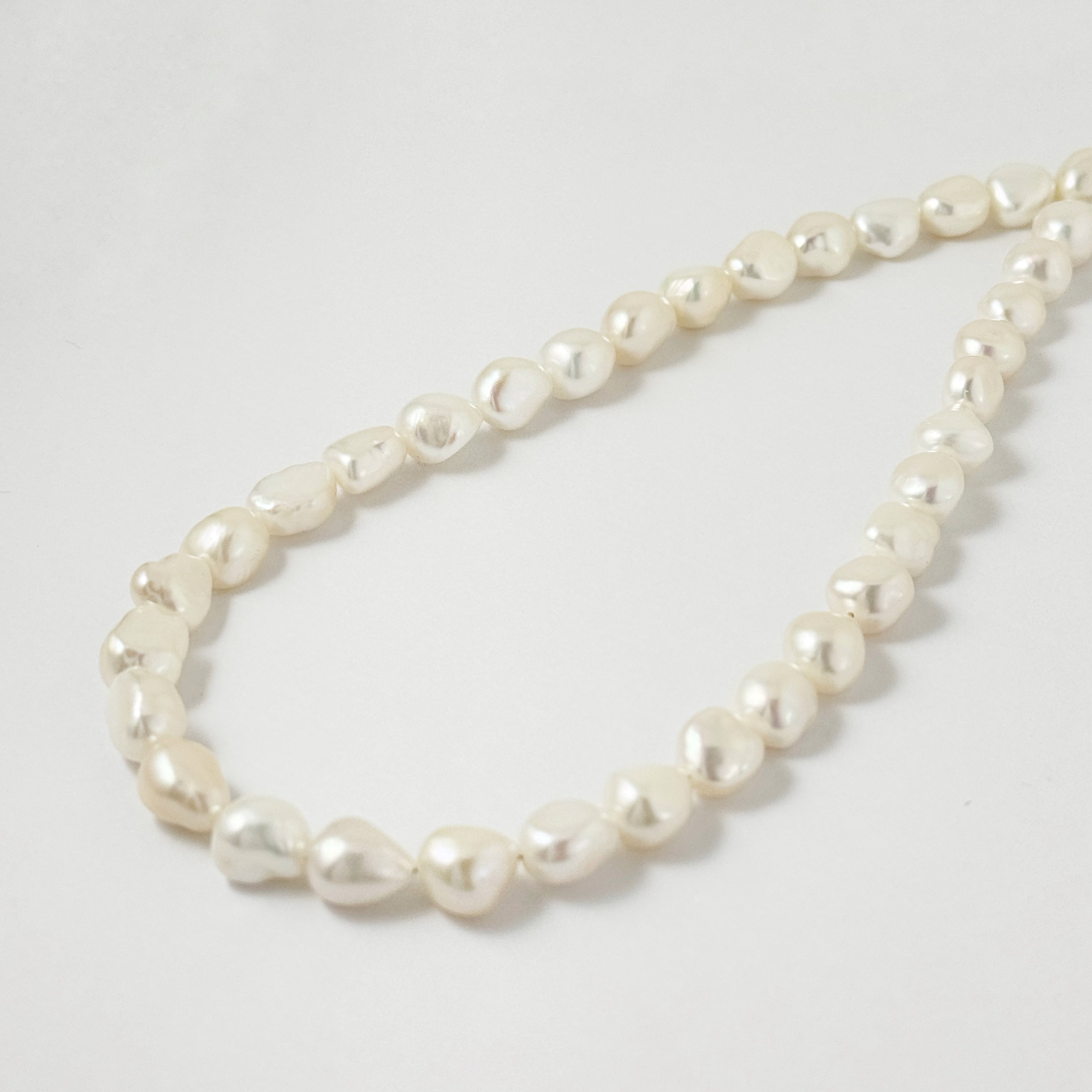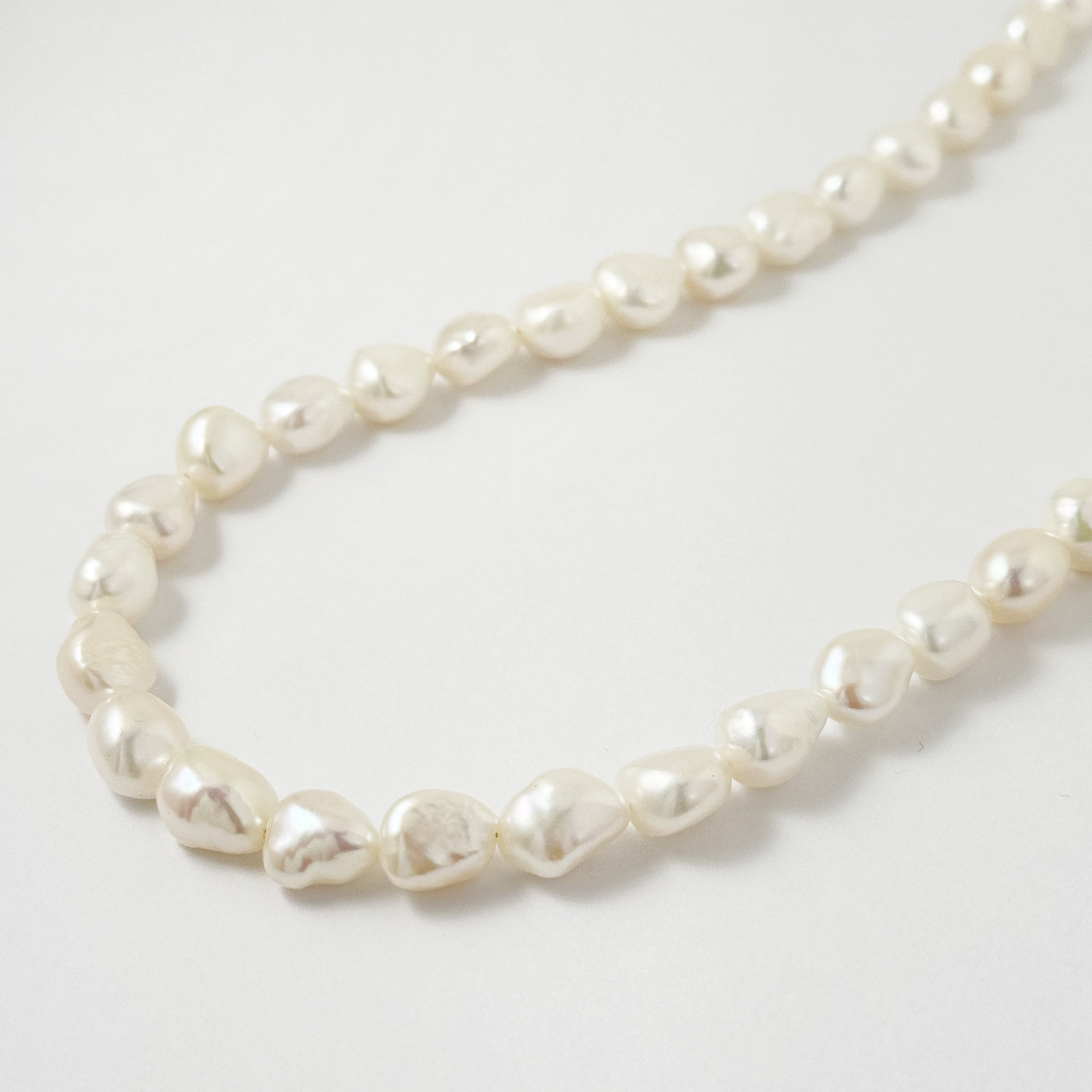 丸いパールネックレスと違ってカジュアルにも普段使いにも使えるパールネックレス