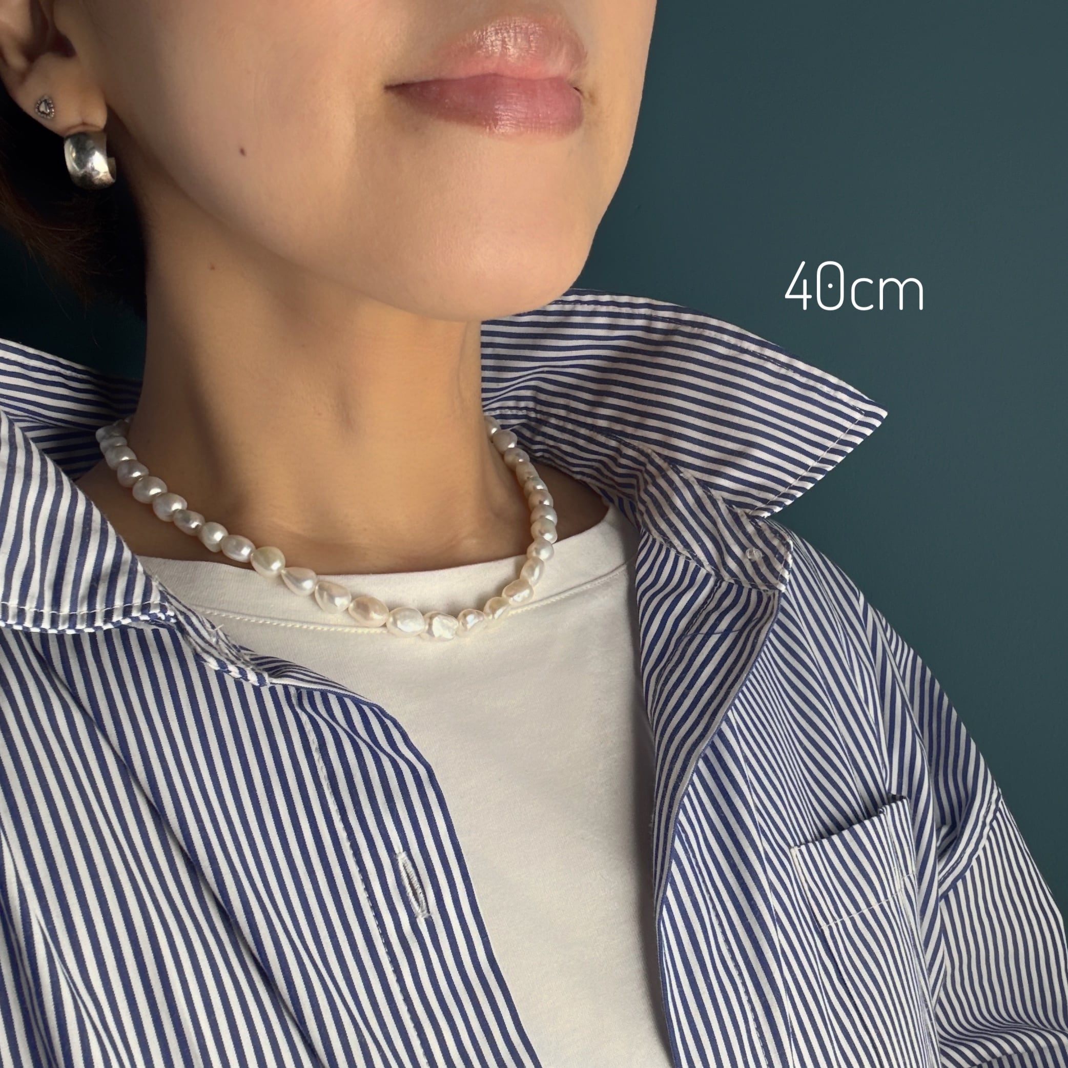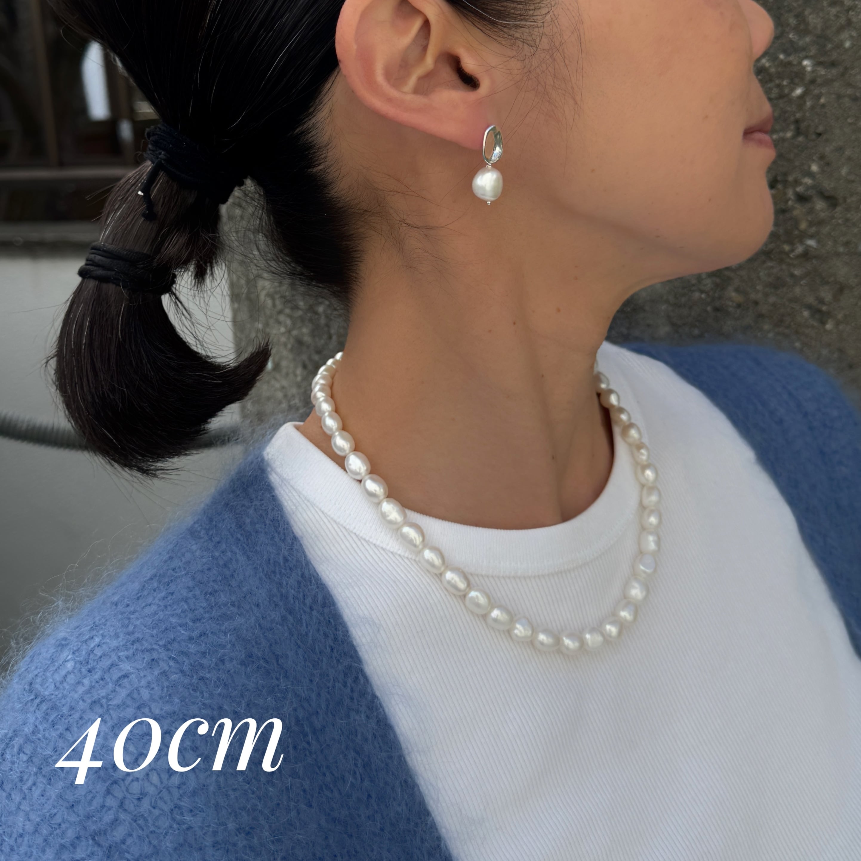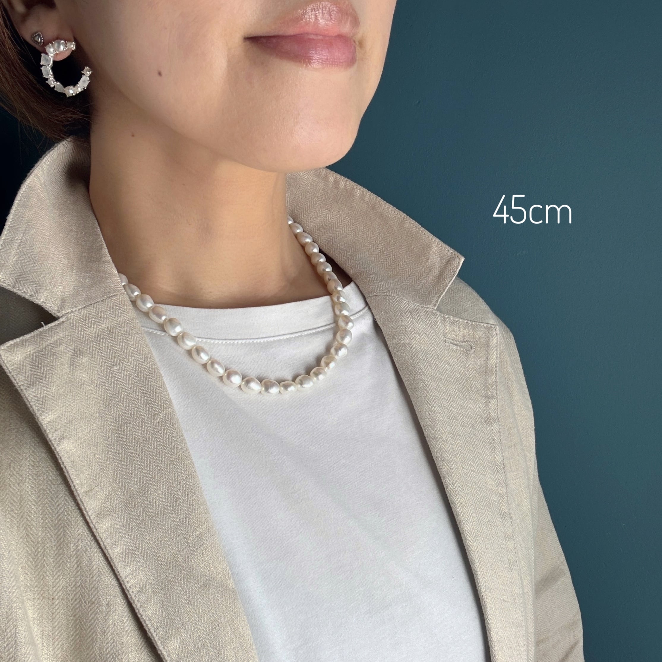 丸いパールネックレスと違ってカジュアルにも普段使いにも使えるパールネックレス