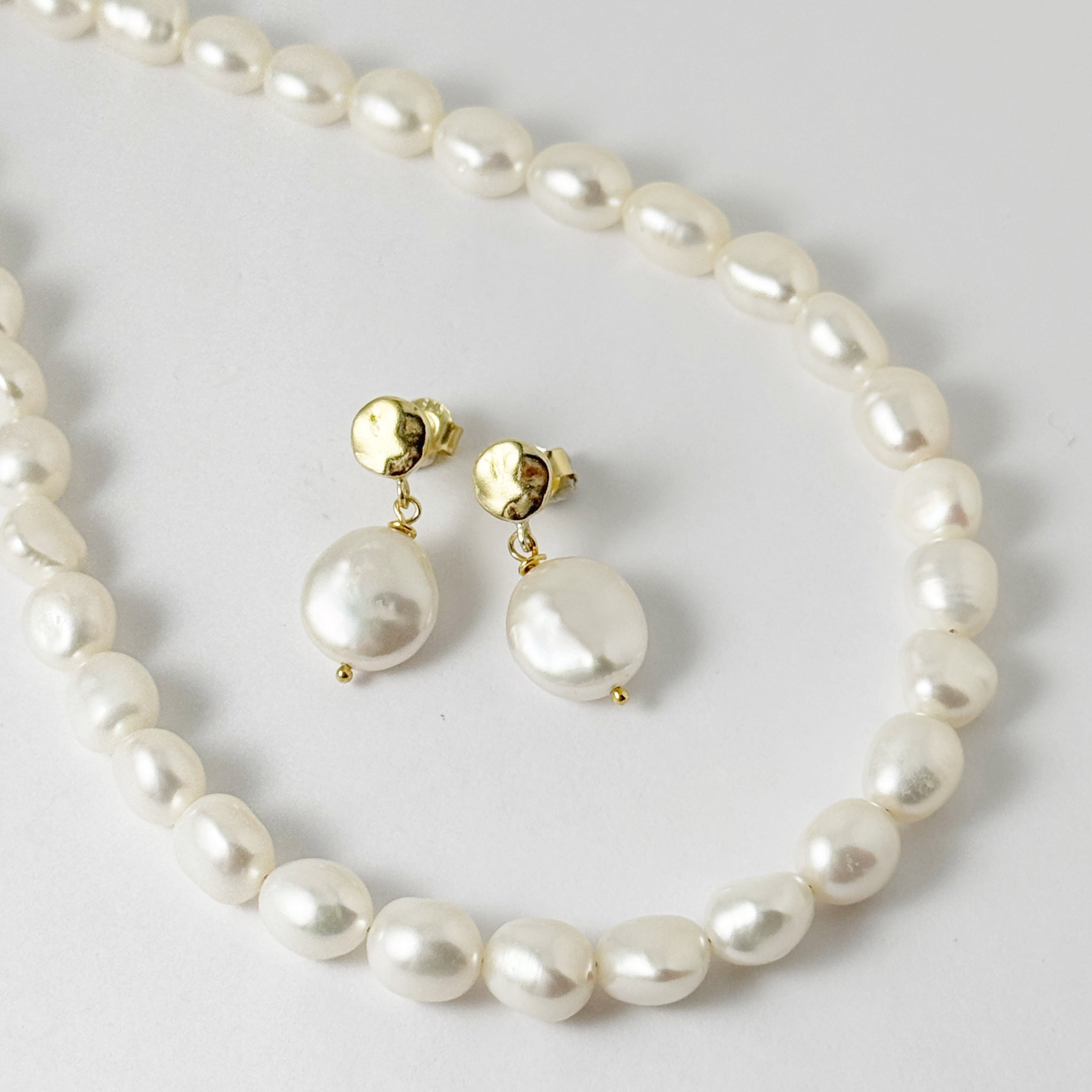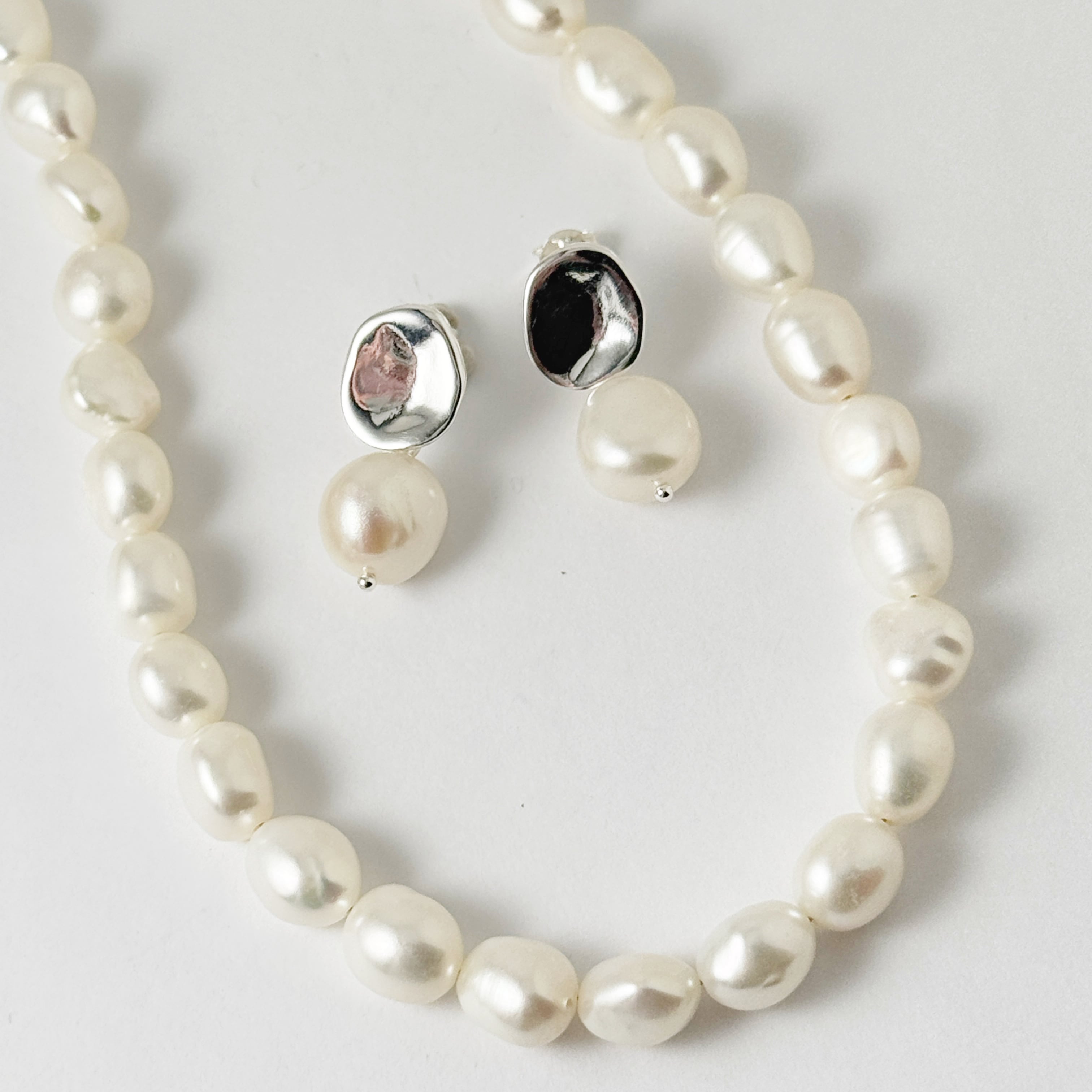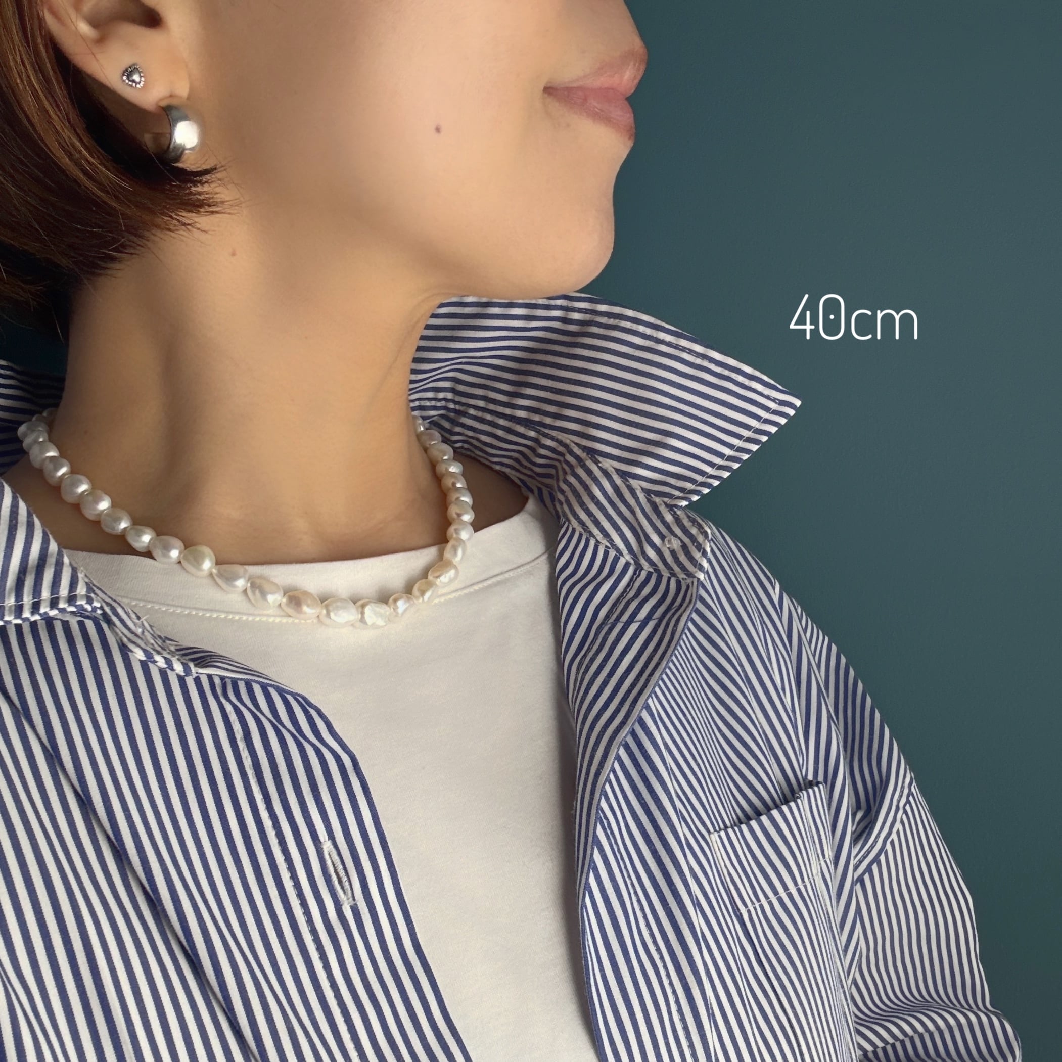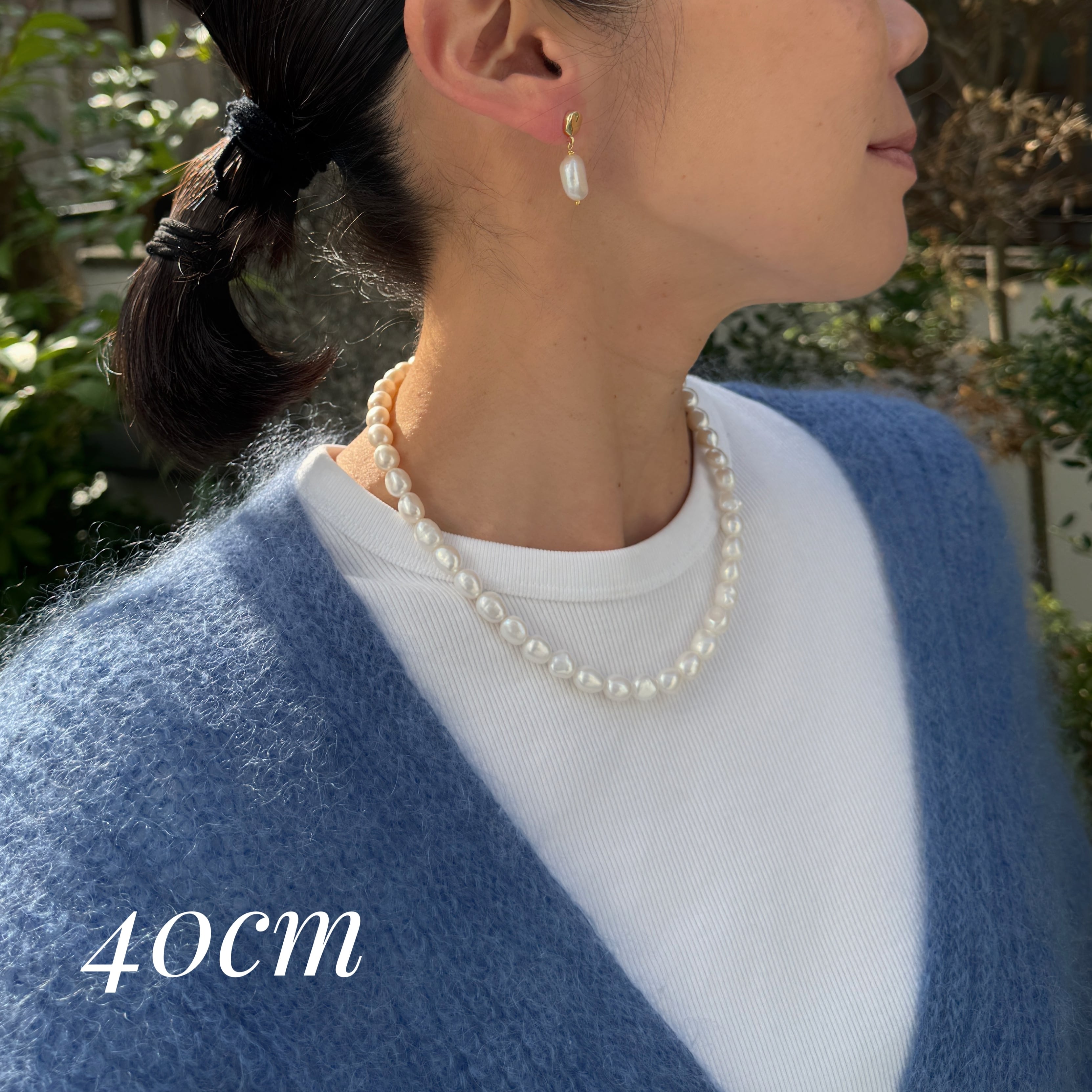 丸いパールネックレスと違ってカジュアルにも普段使いにも使えるパールネックレス