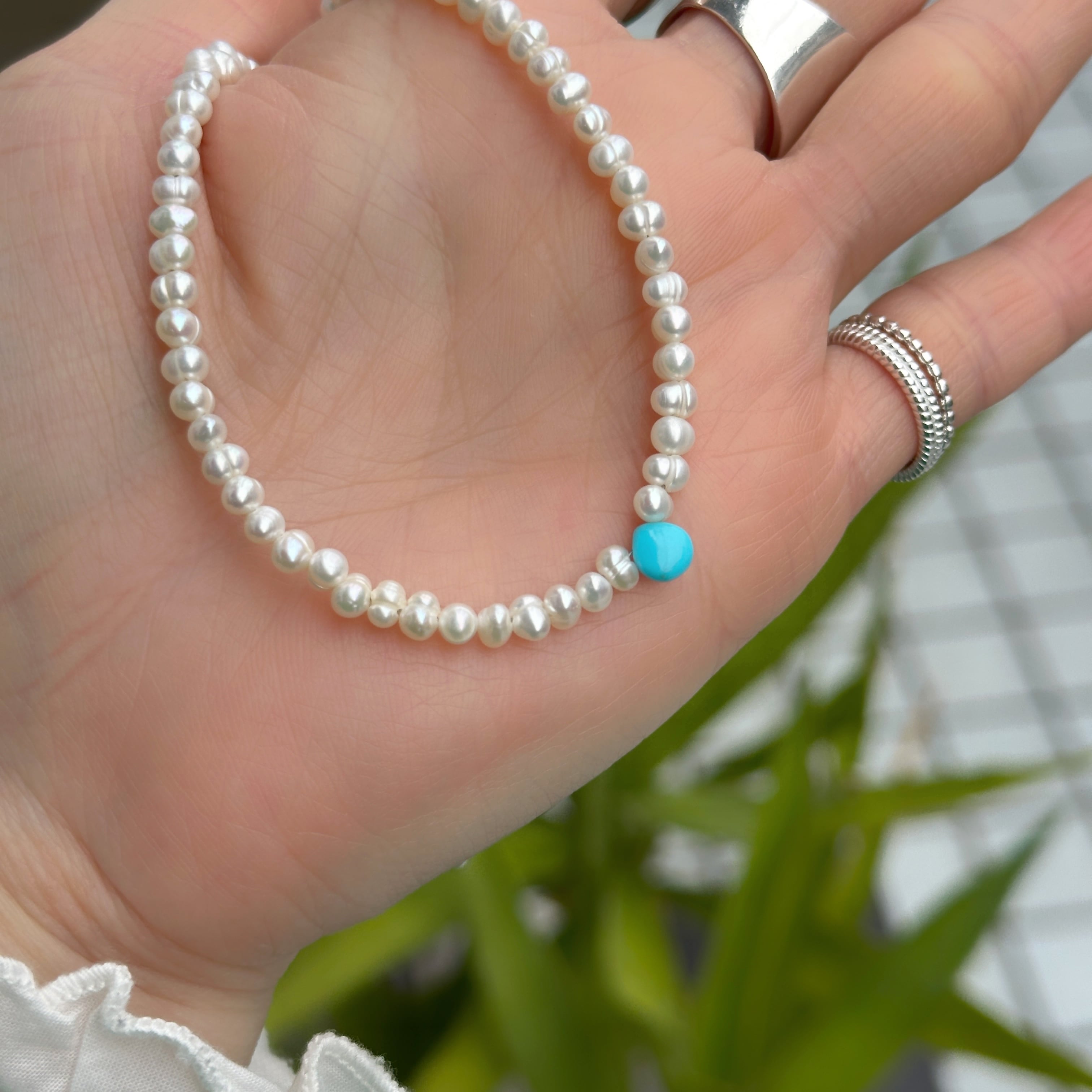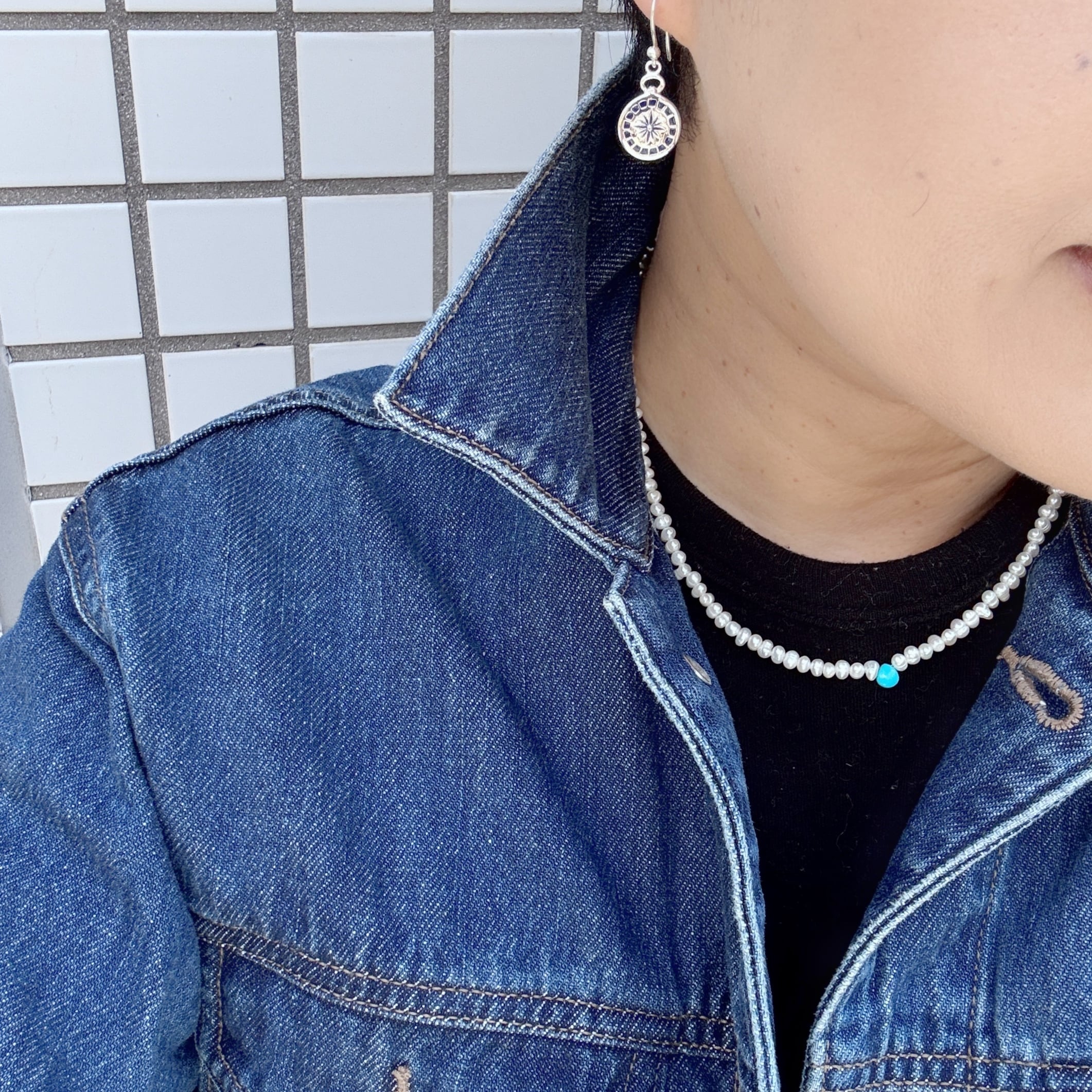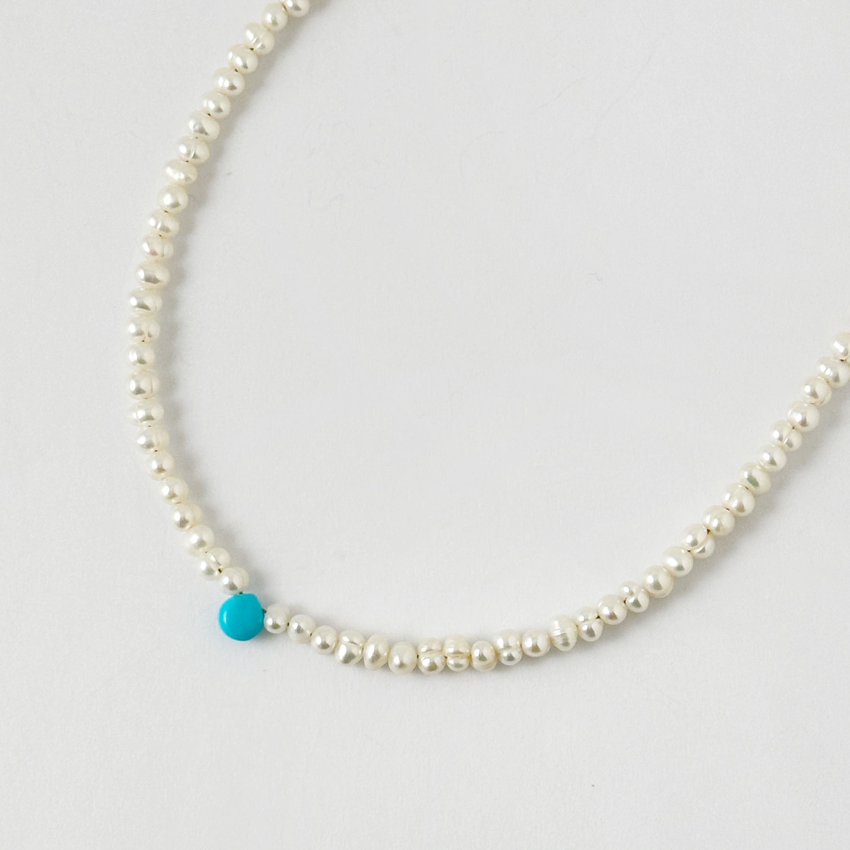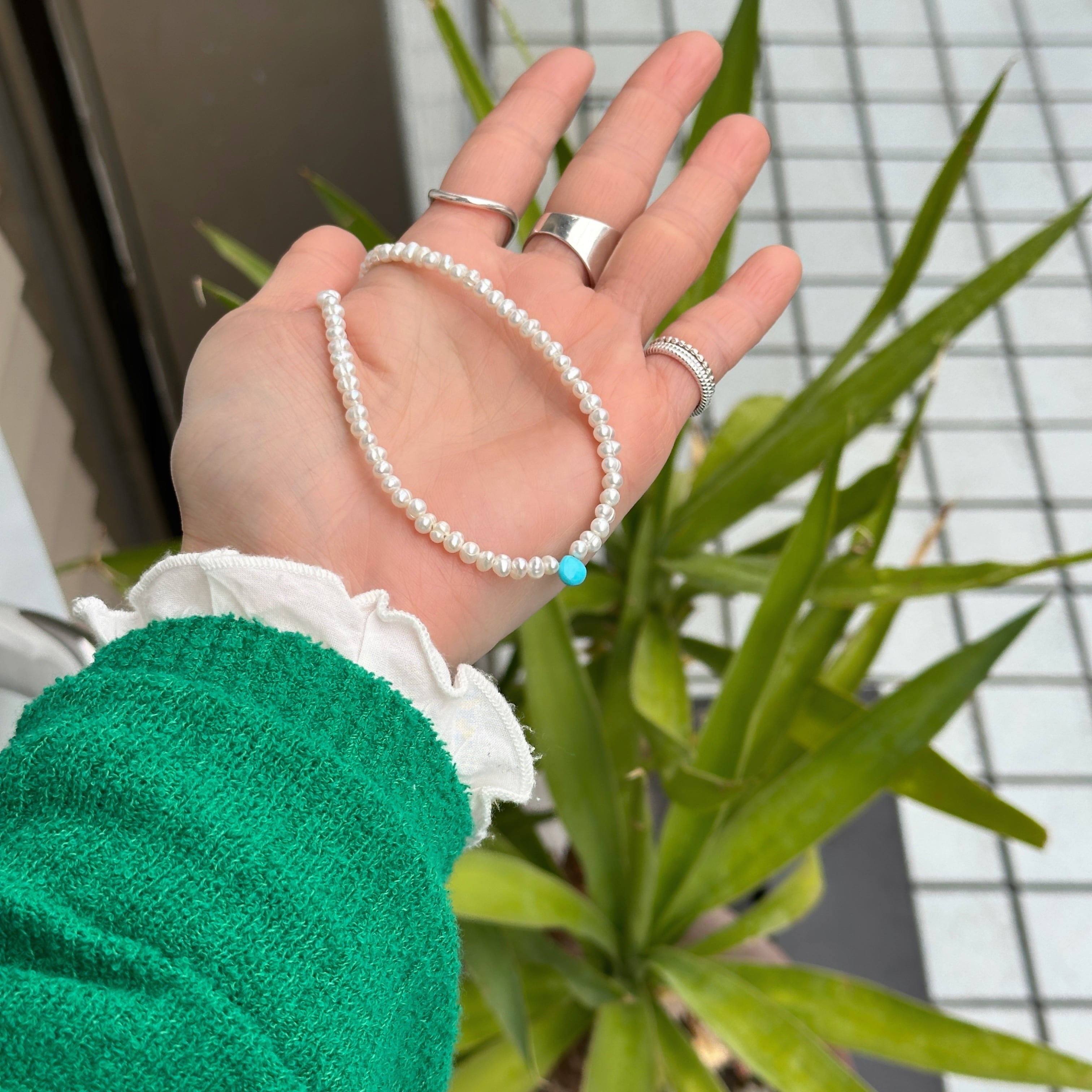 Lagoon Original ポテト型 淡水パール &一粒 ターコイズ 40 / 45cm
