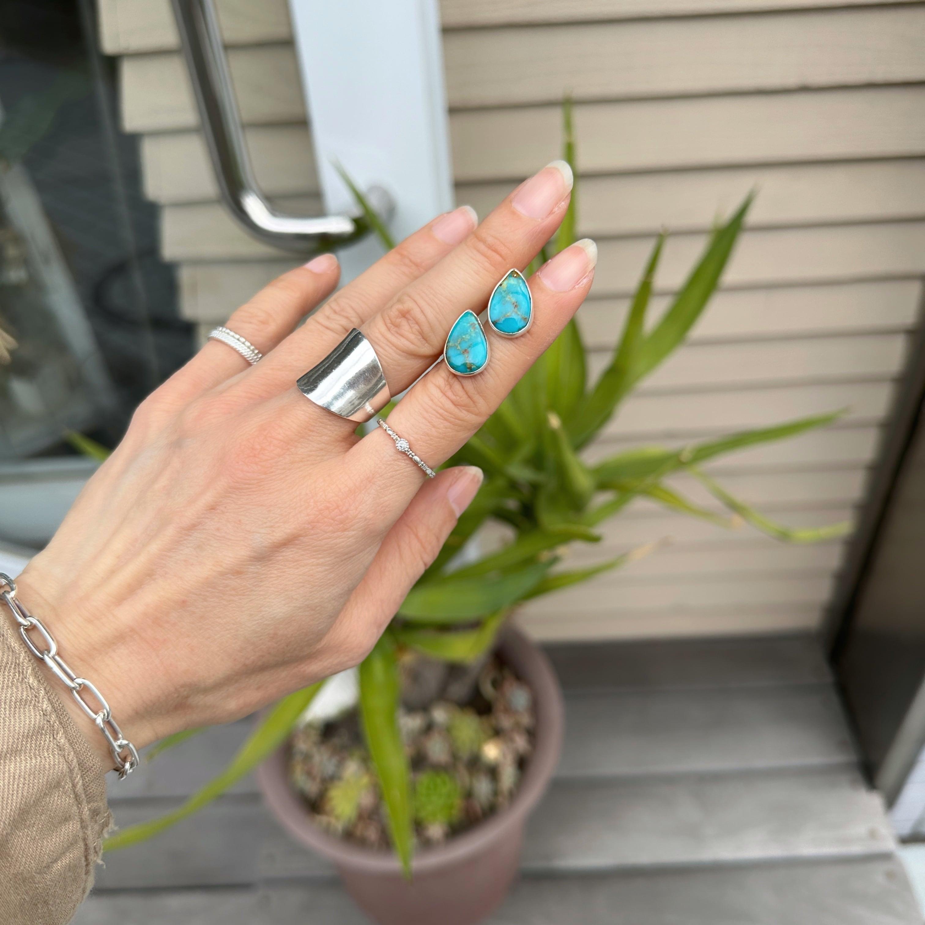 大地を感じるインクリュージョンが入ったブルーがとても目を引くターコイズです!