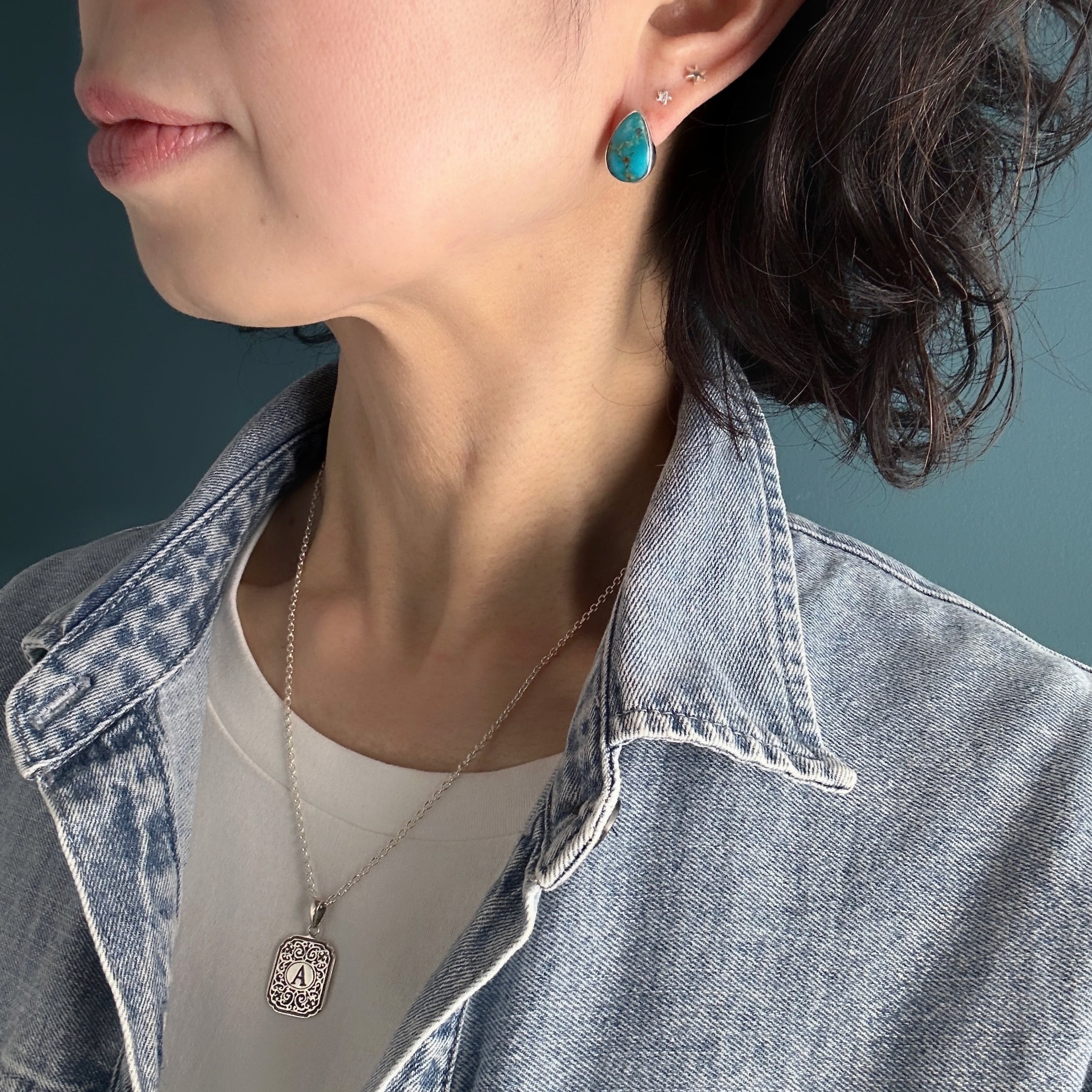 《Indian Jewelry 》 ターコイズ ドロップ型 スタッド ピアス