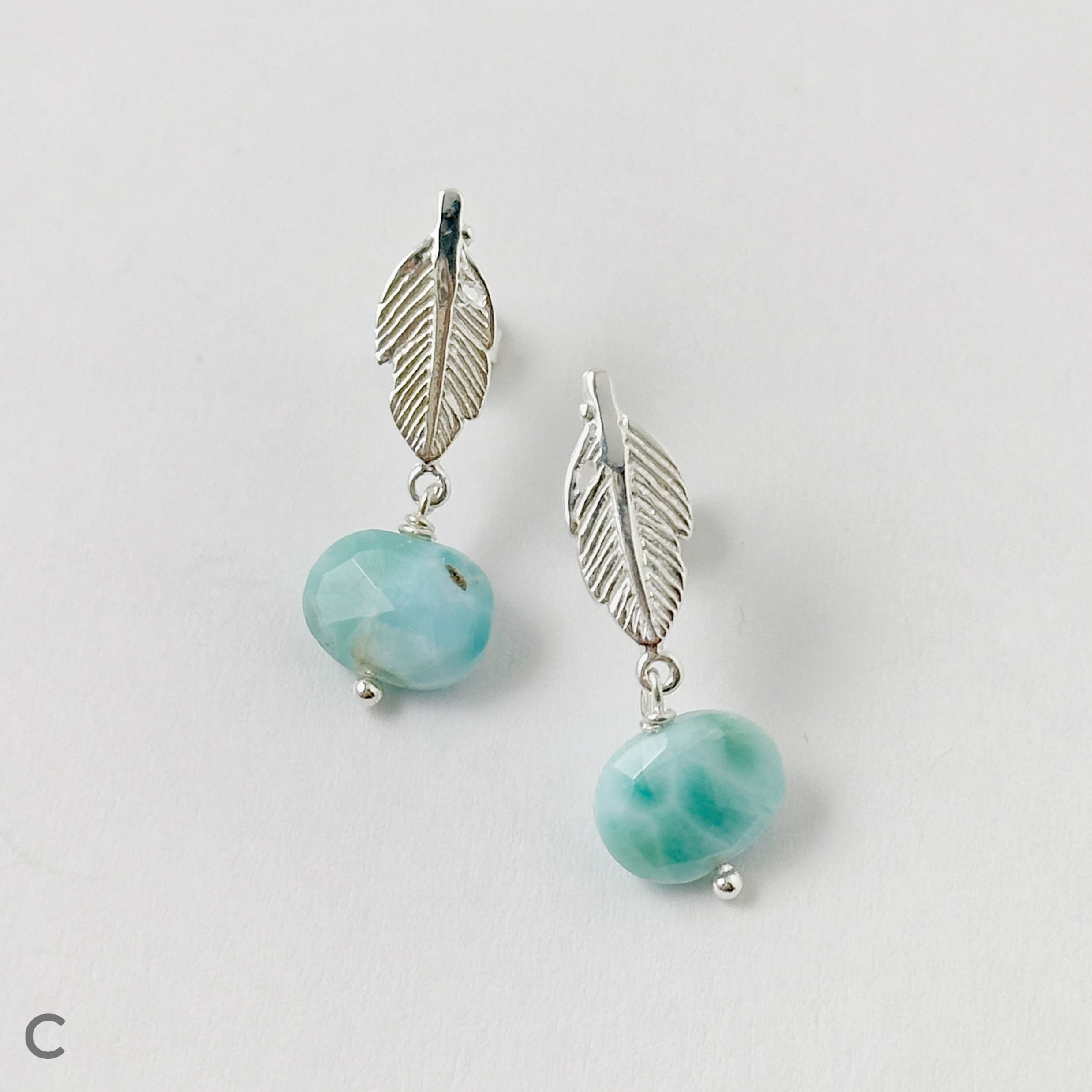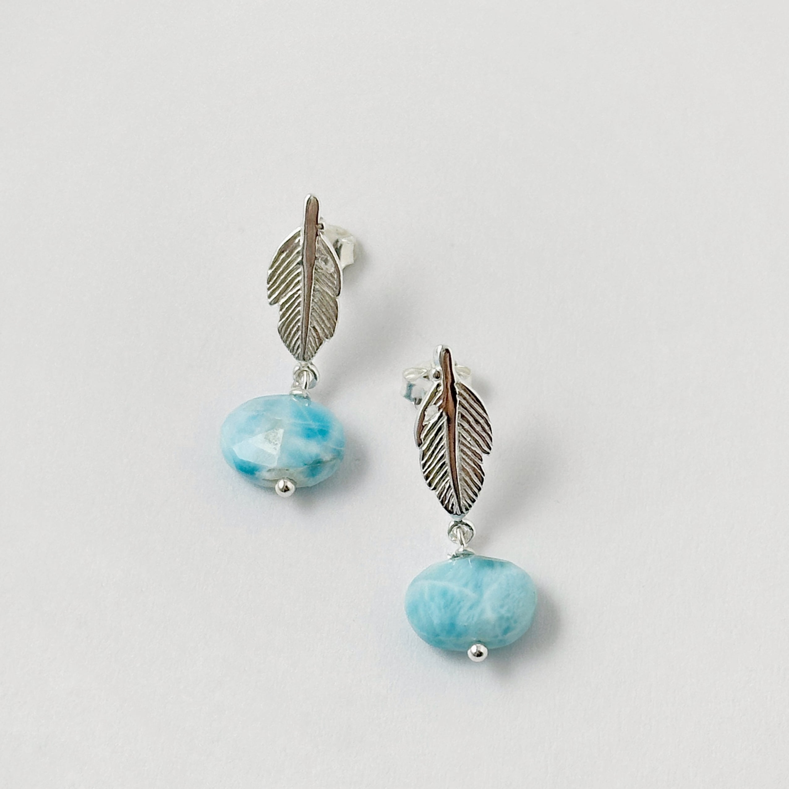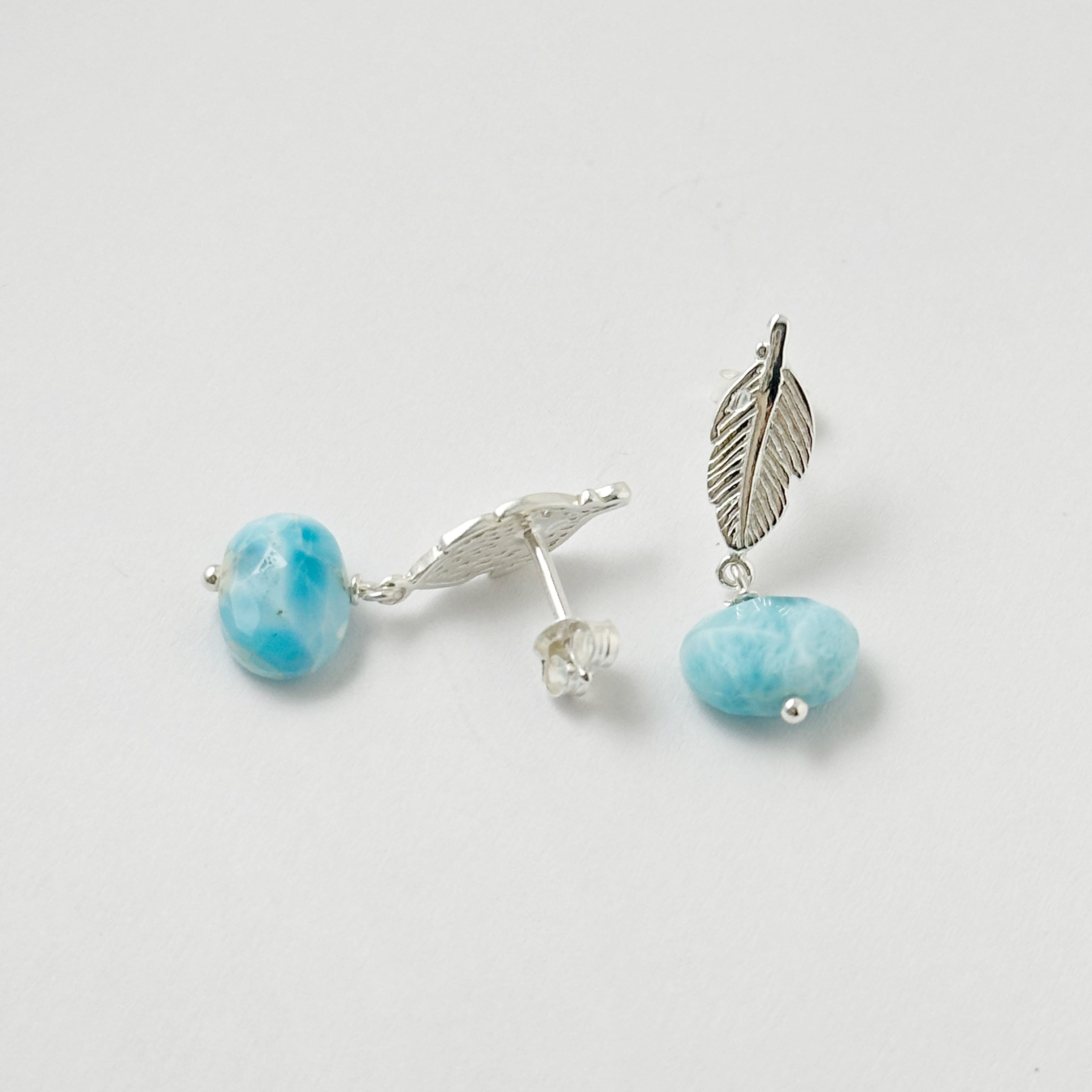 Lagoon Original ラリマー と フェザー スタッド ピアス