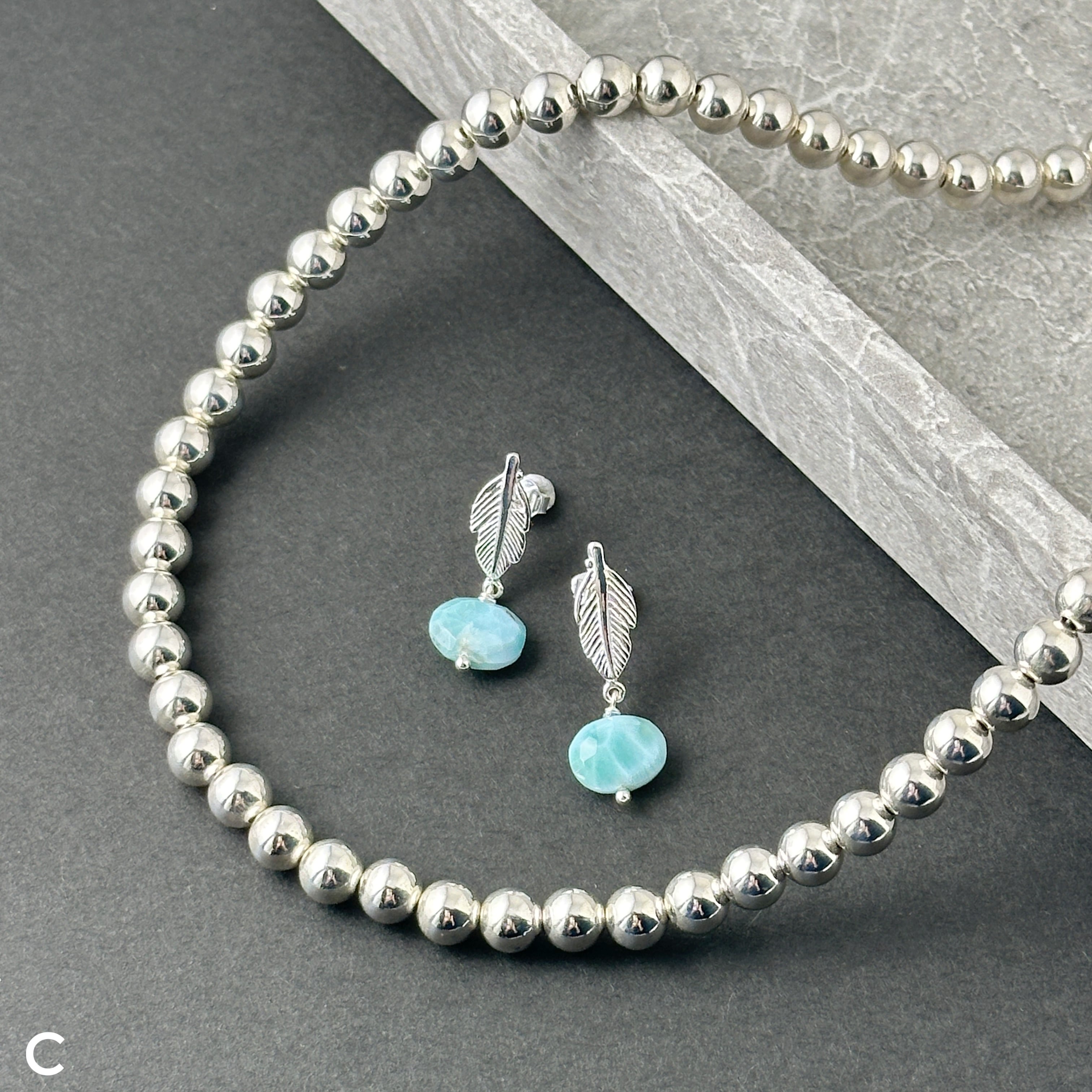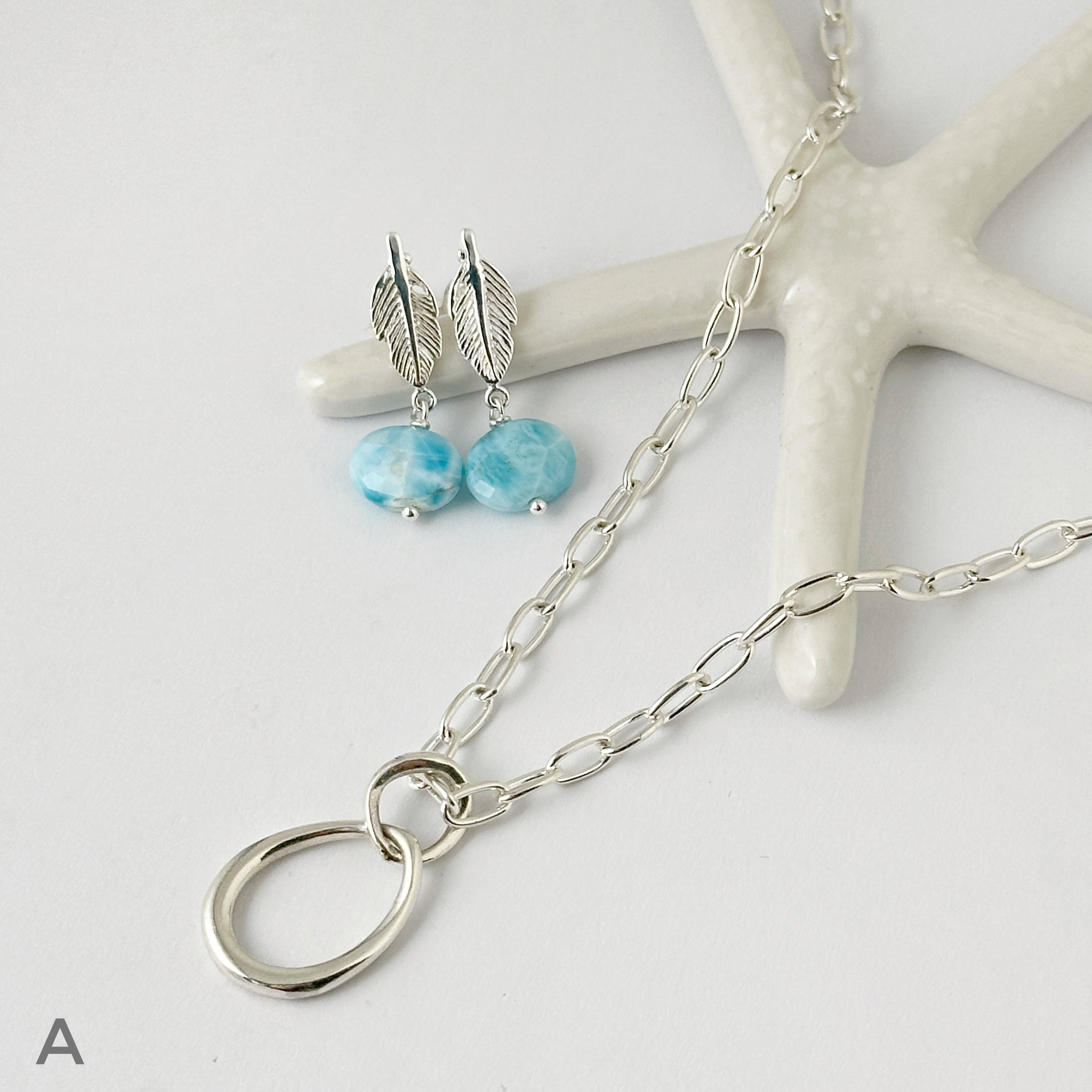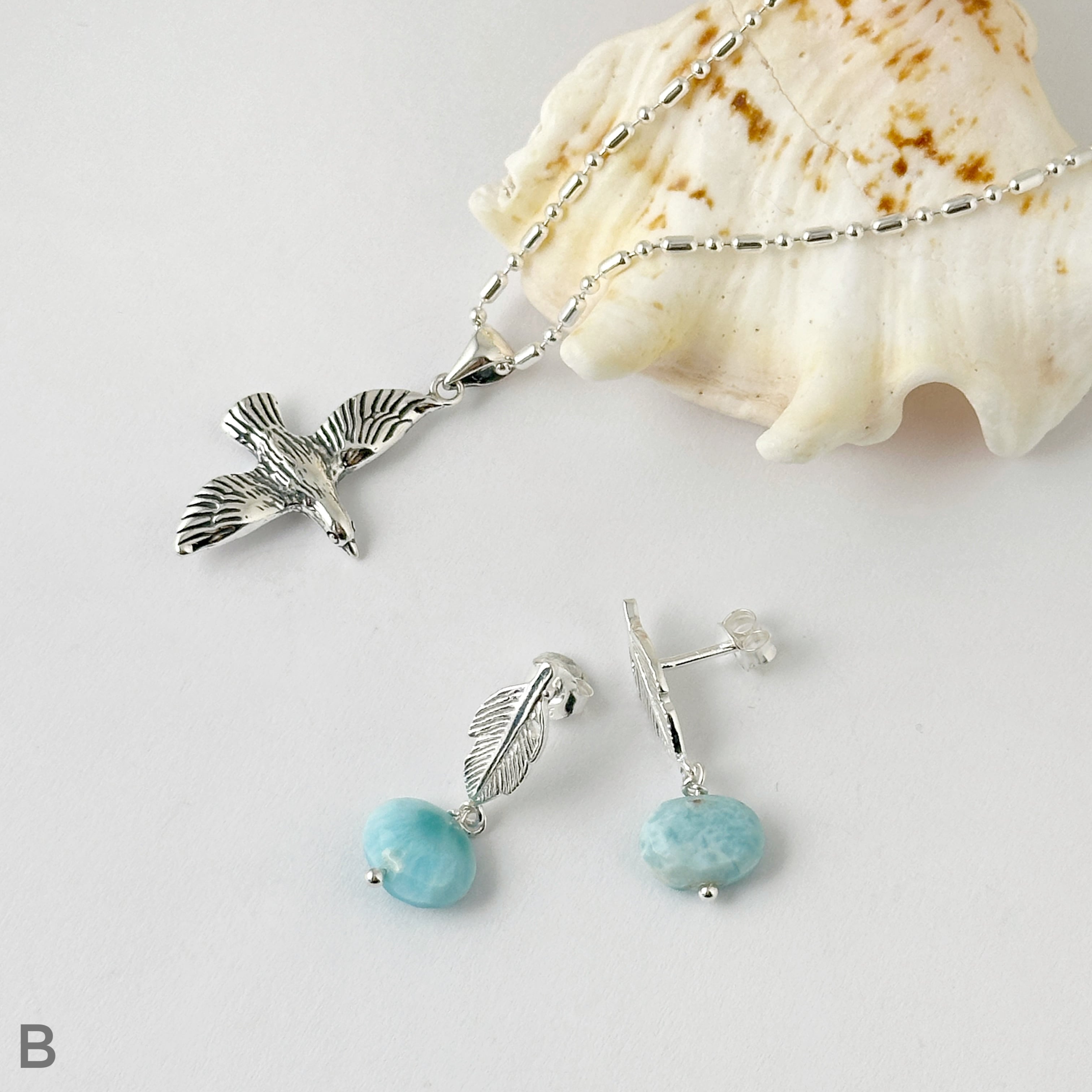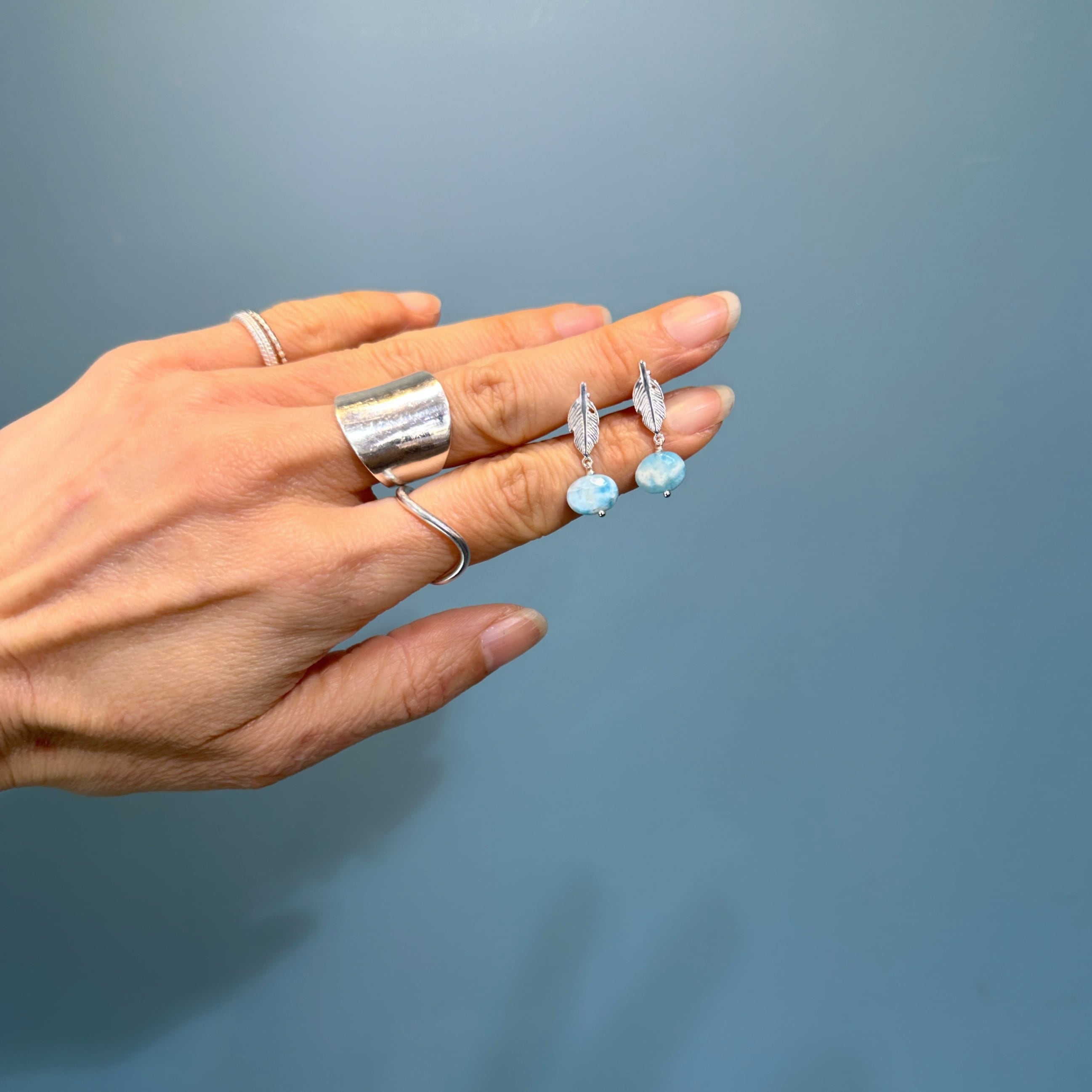 Lagoon Original ラリマー と フェザー スタッド ピアス
