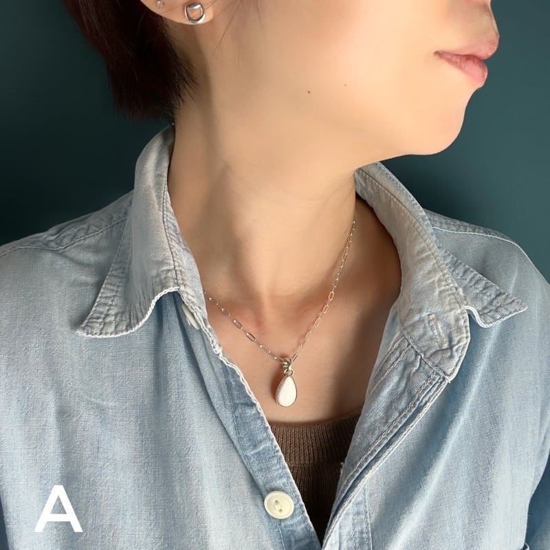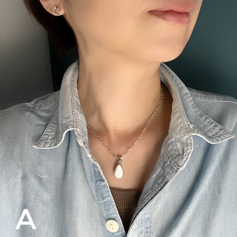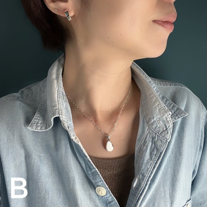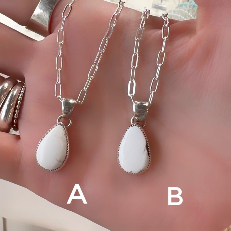 《Indian Jewelry 》ホワイトバッファロー シンプル ドロップ ネックレス (チェーン オプション)
