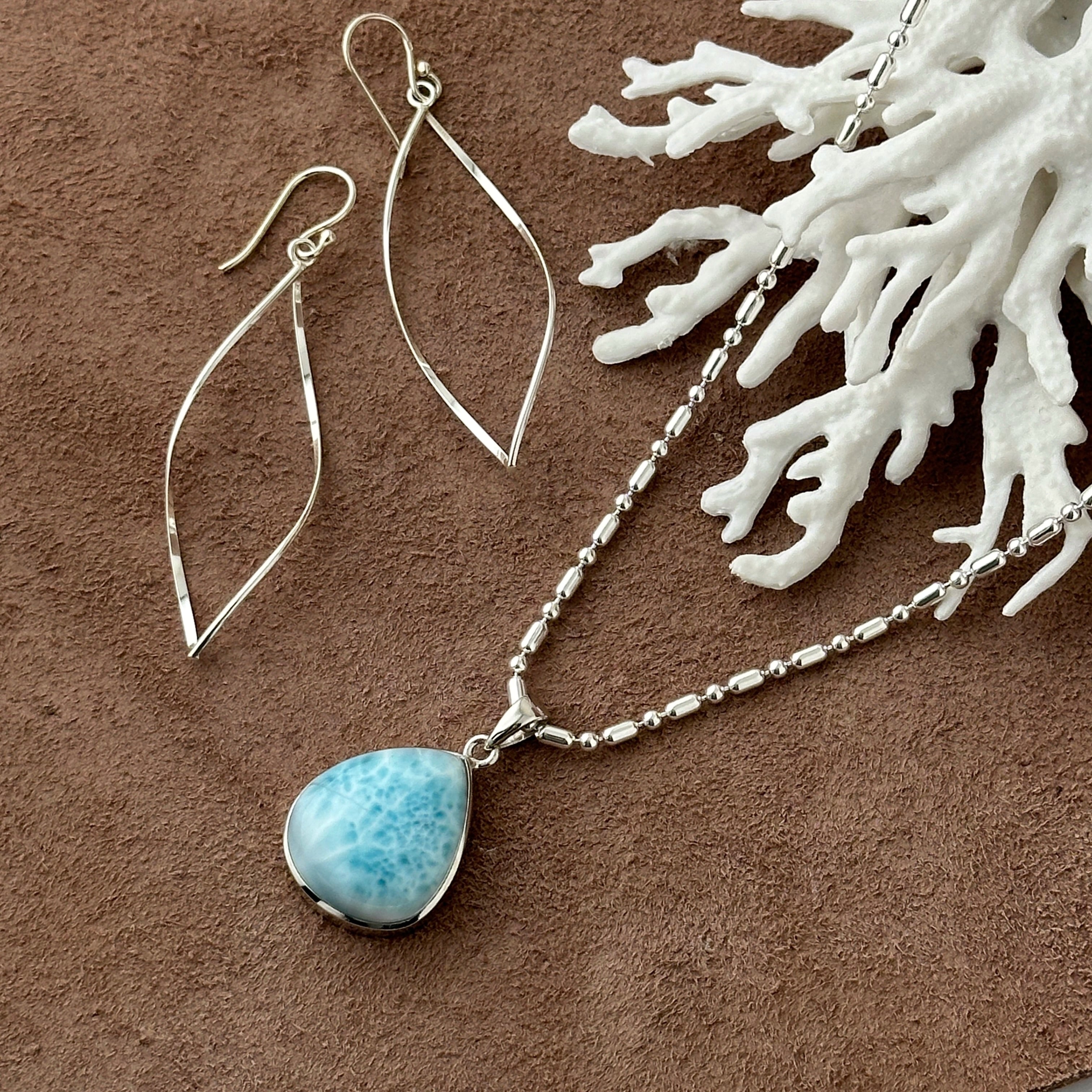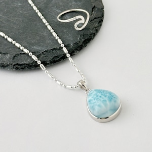 一点物 ラリマー ぷっくり ドロップ型 ペンダント ネックレス