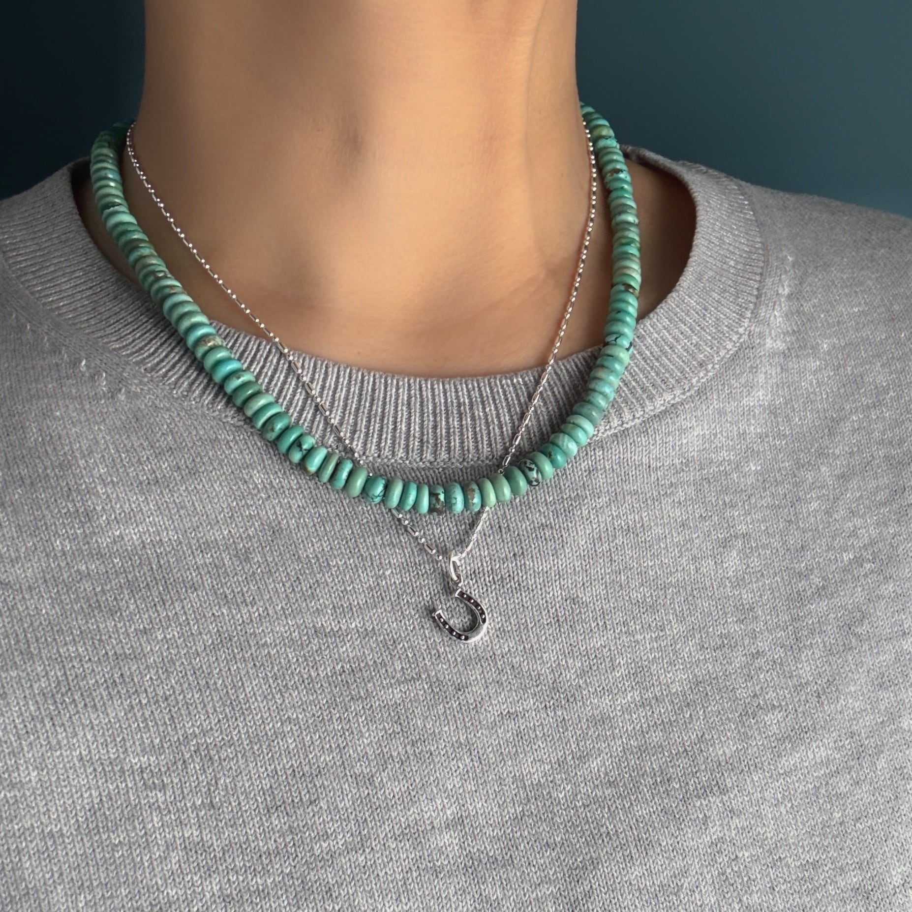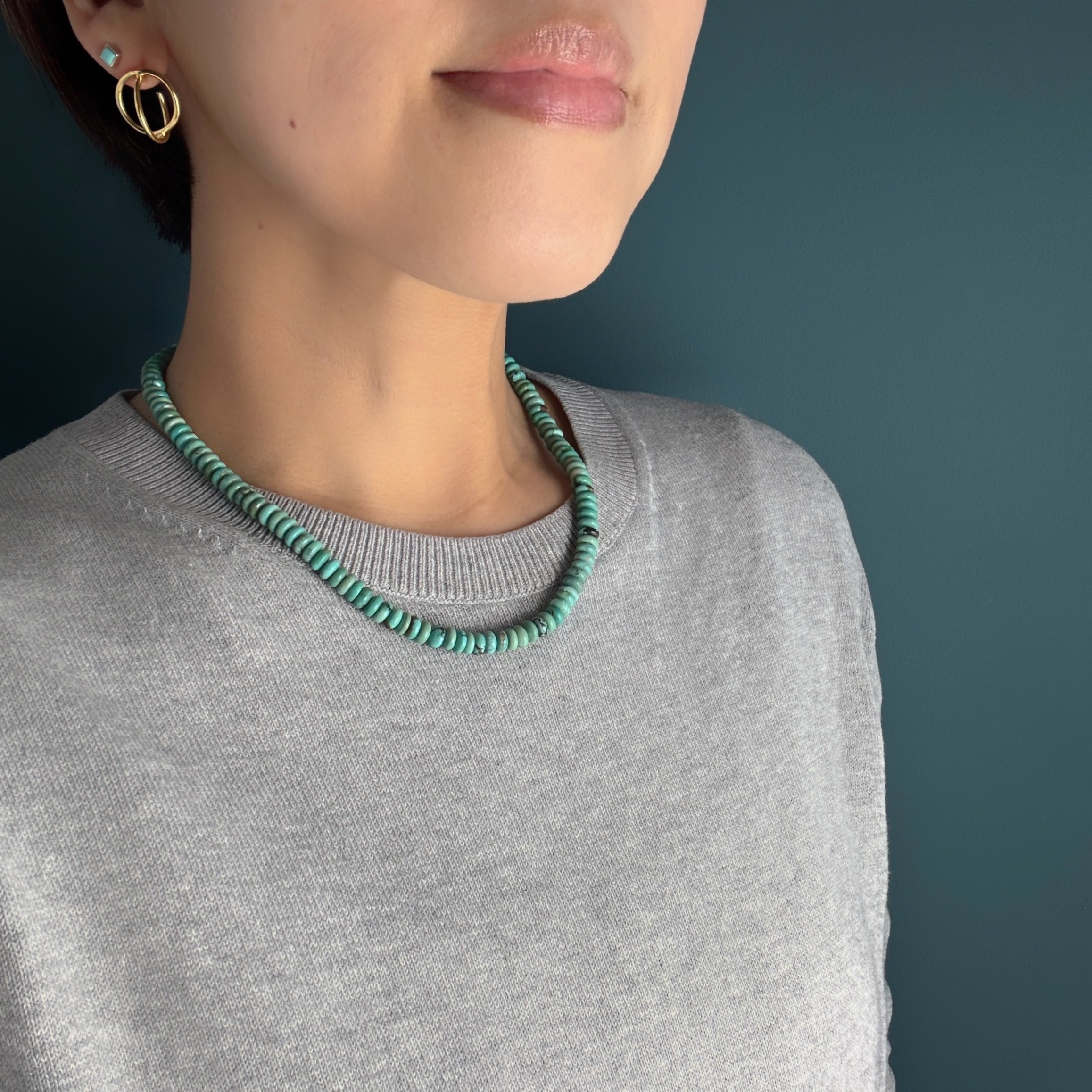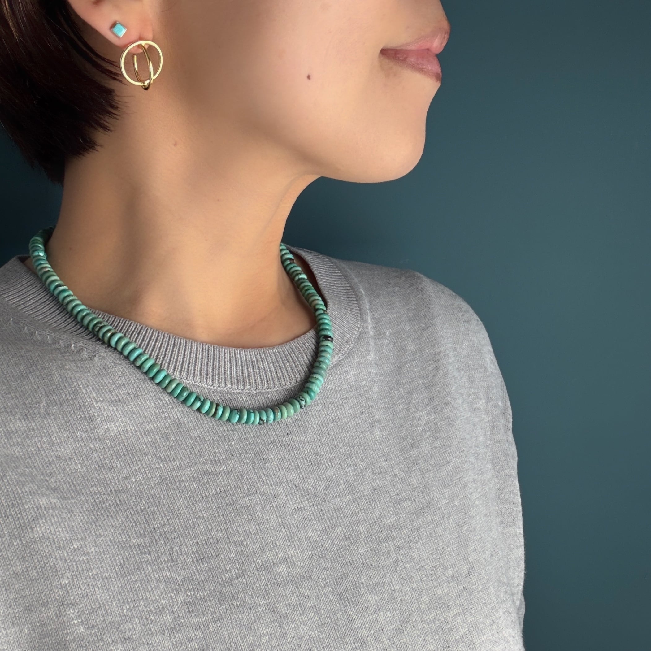 ロンデル型のターコイズを繋ぎ合わせたネックレスです。