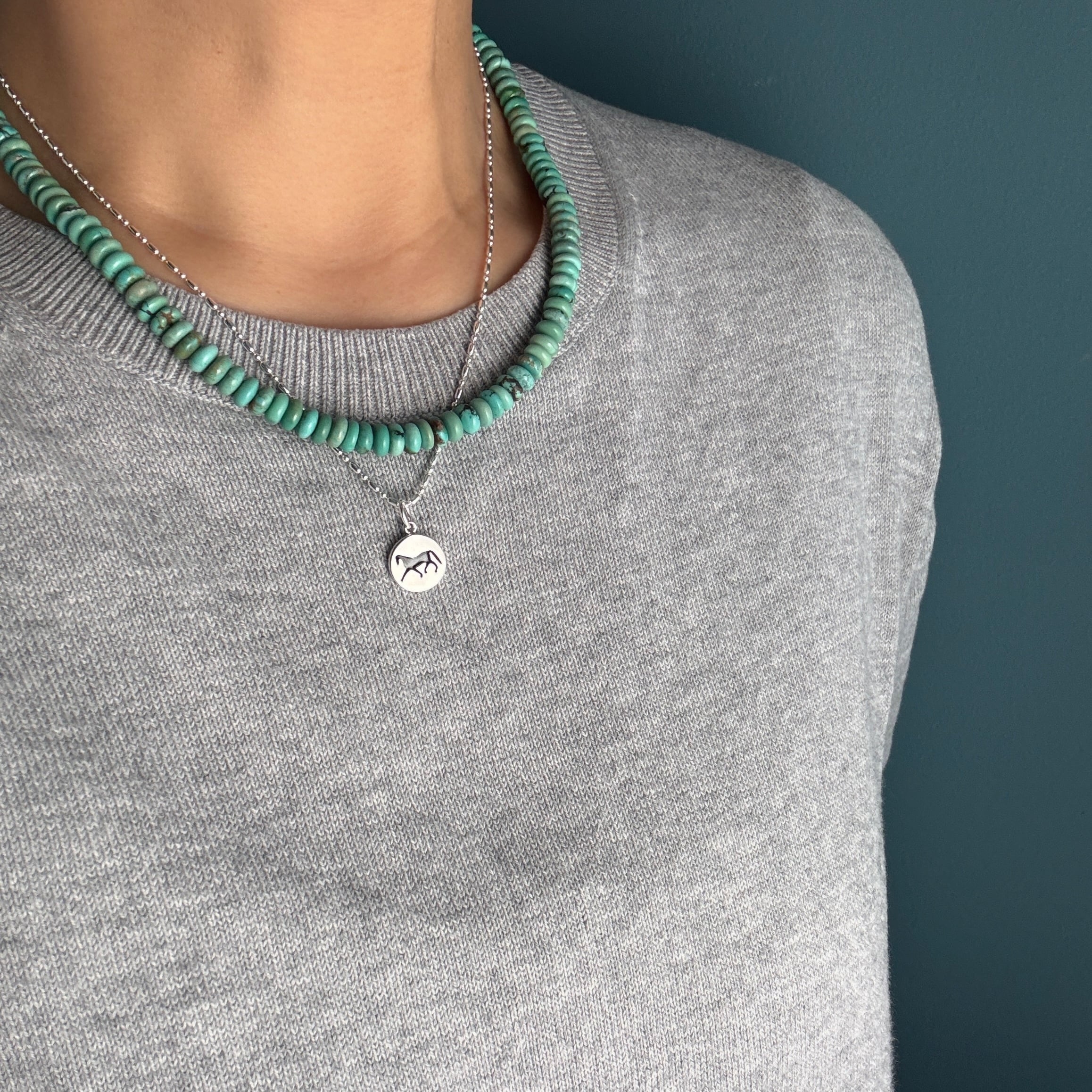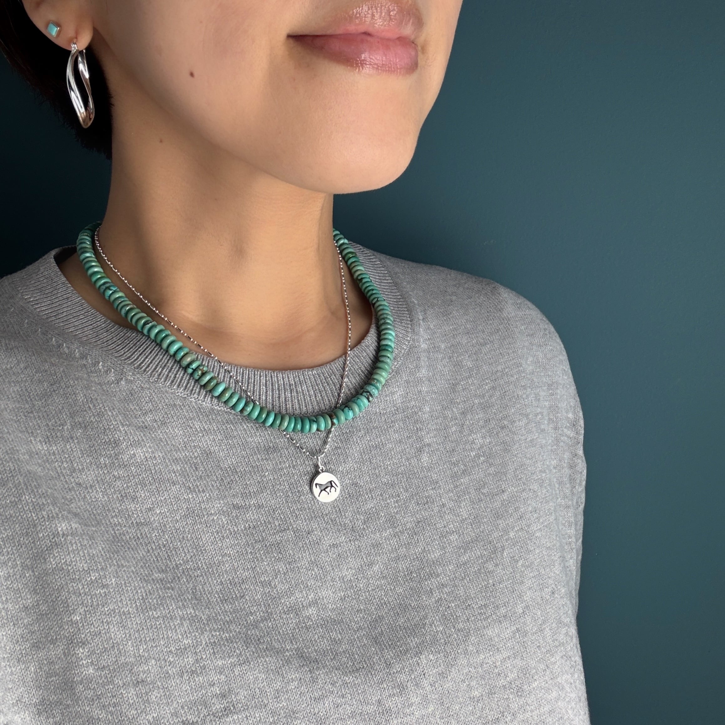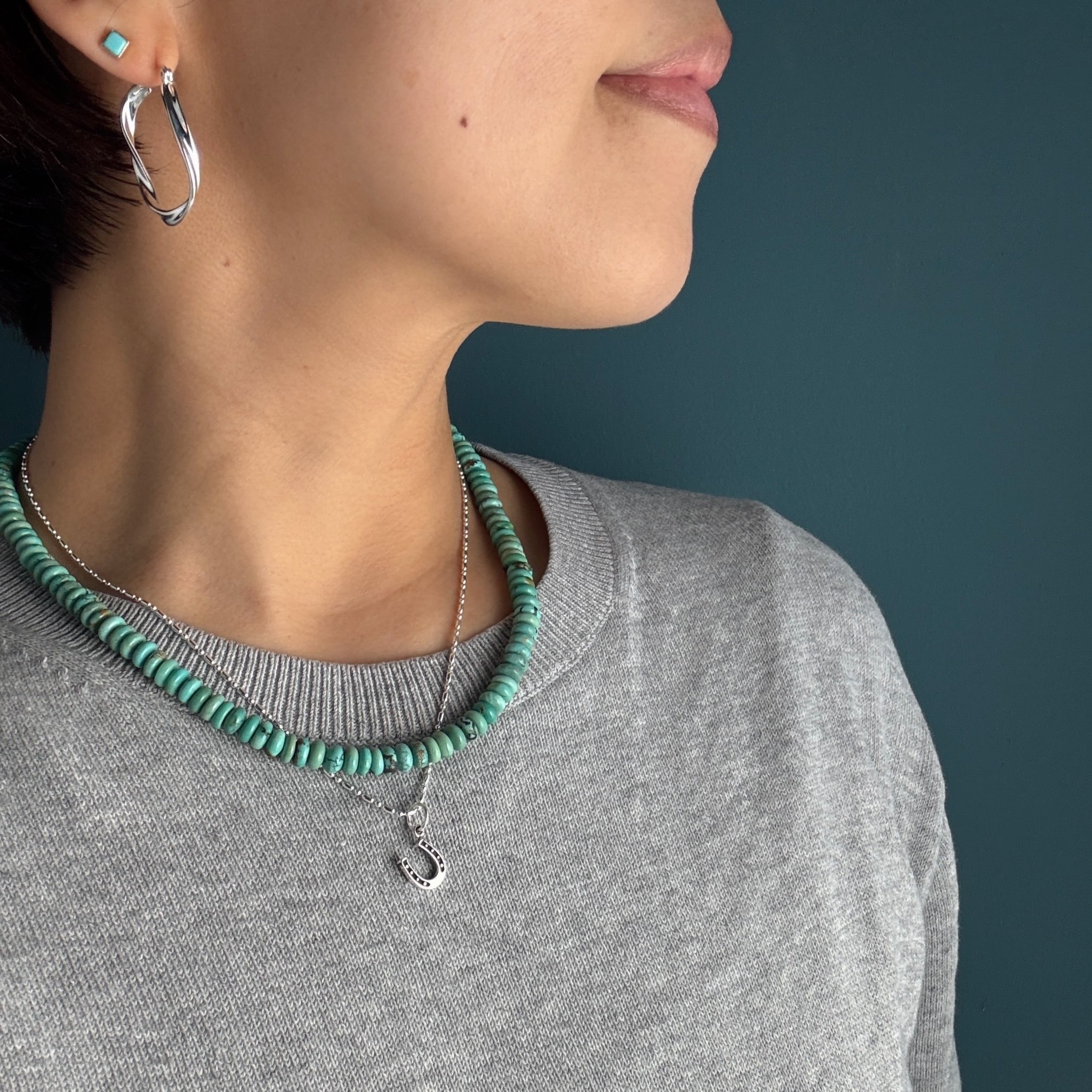 ロンデル型のターコイズを繋ぎ合わせたネックレスです。