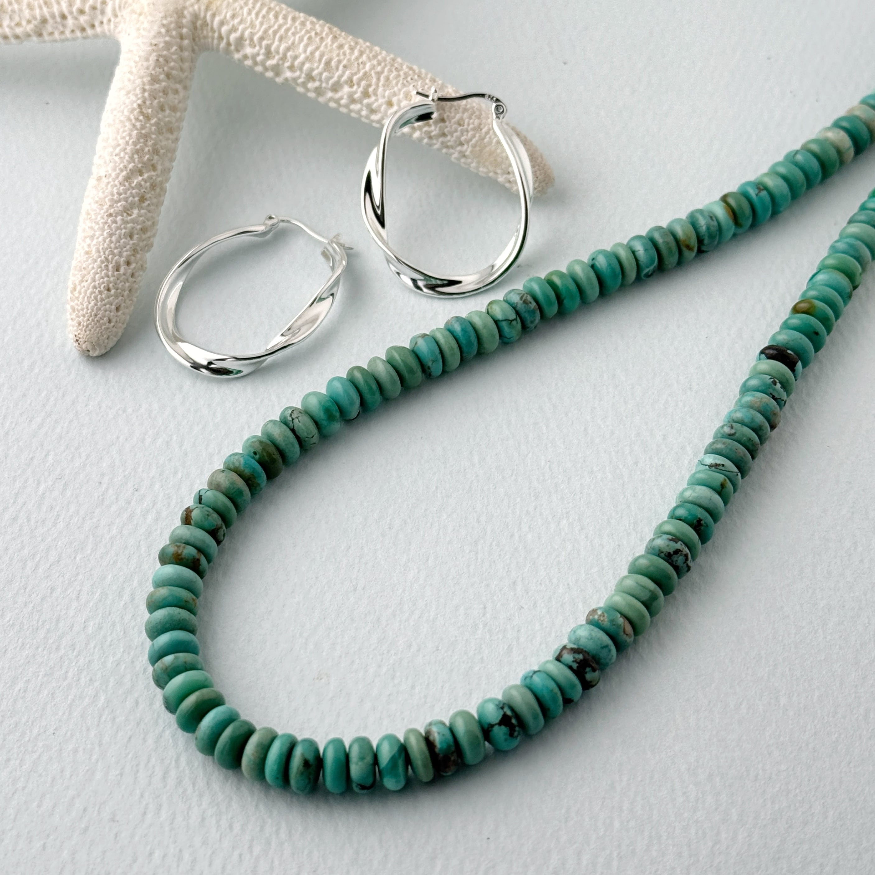 Lagoon Original ターコイズ ロンデル ターコイズ 一連 ネックレス 40-45cm