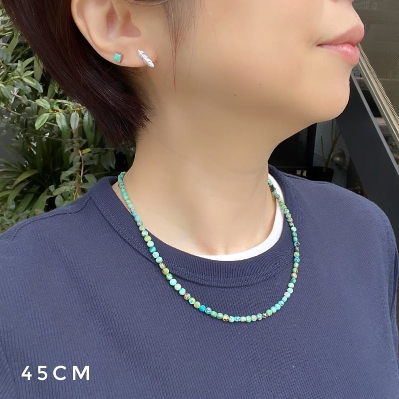 ポストは上部についていますので、ぶらさがる見え方になります。ネイビーカットソーの着用スタッフはピアスホールが耳たぶ中央に開いています。