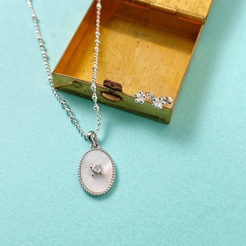梅のようなかわいらしいデザインがポイントで5つの花びらのようなシルバーは、キラキラしています。