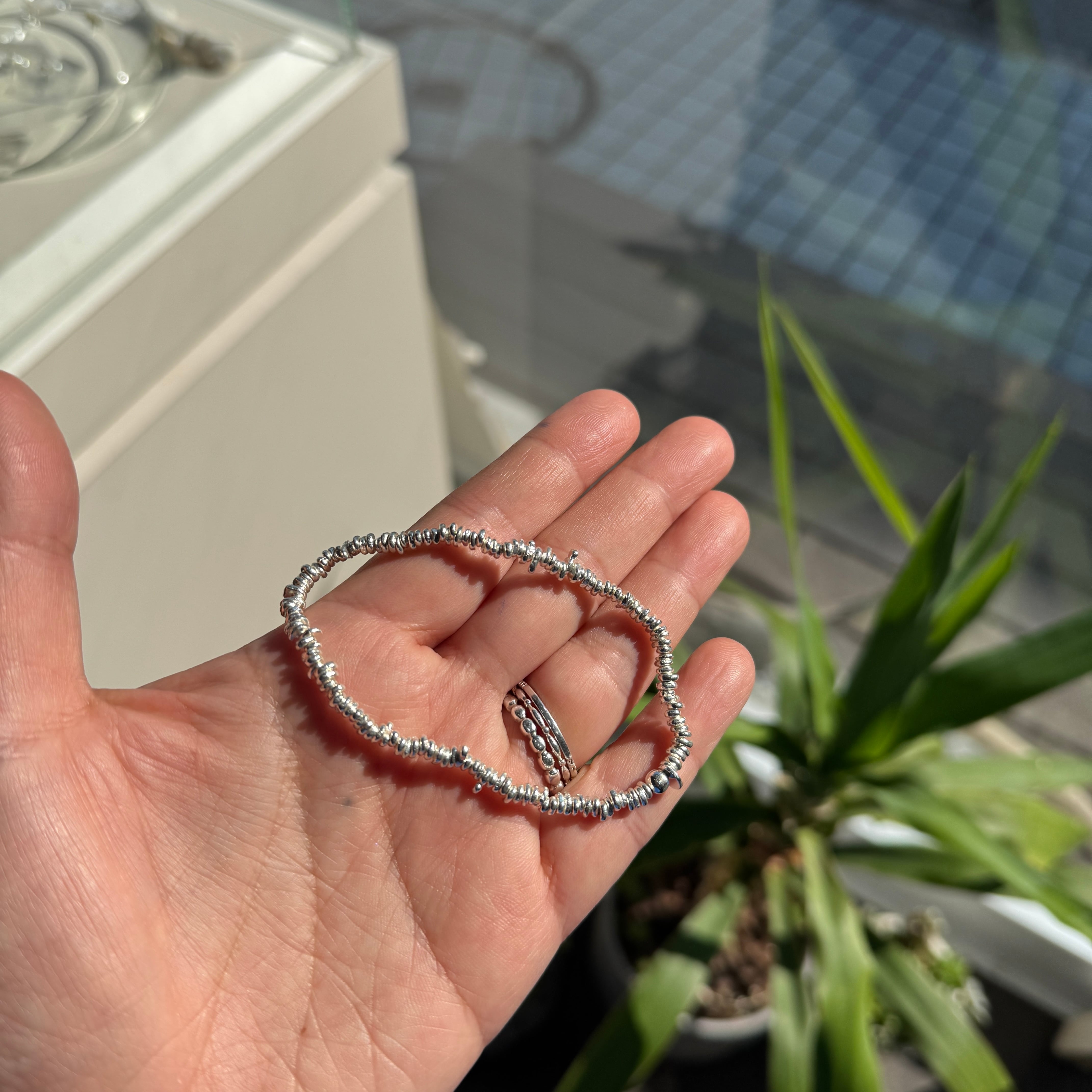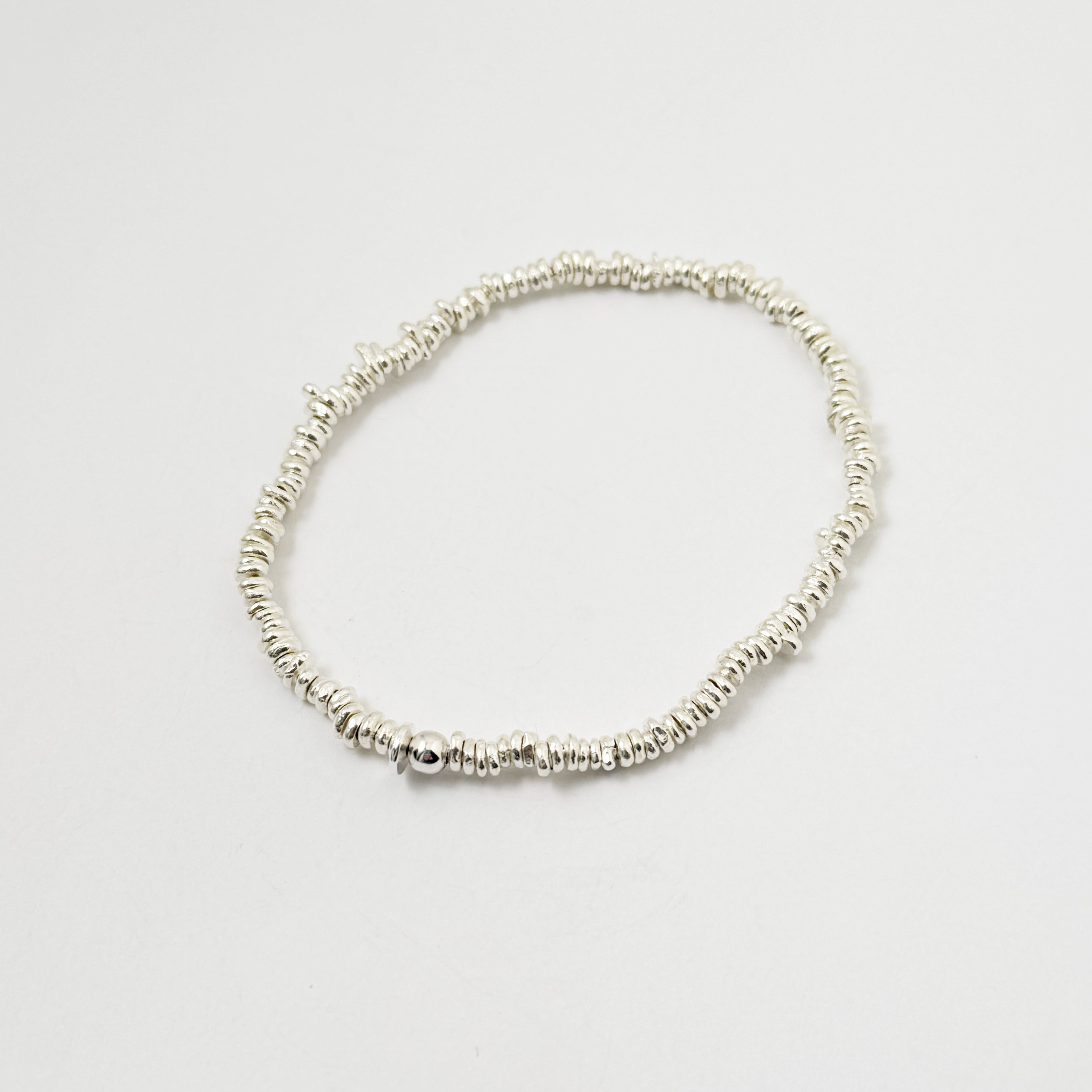 シルバー ビーズ ブレスレット (ゴムが伸びます!!)