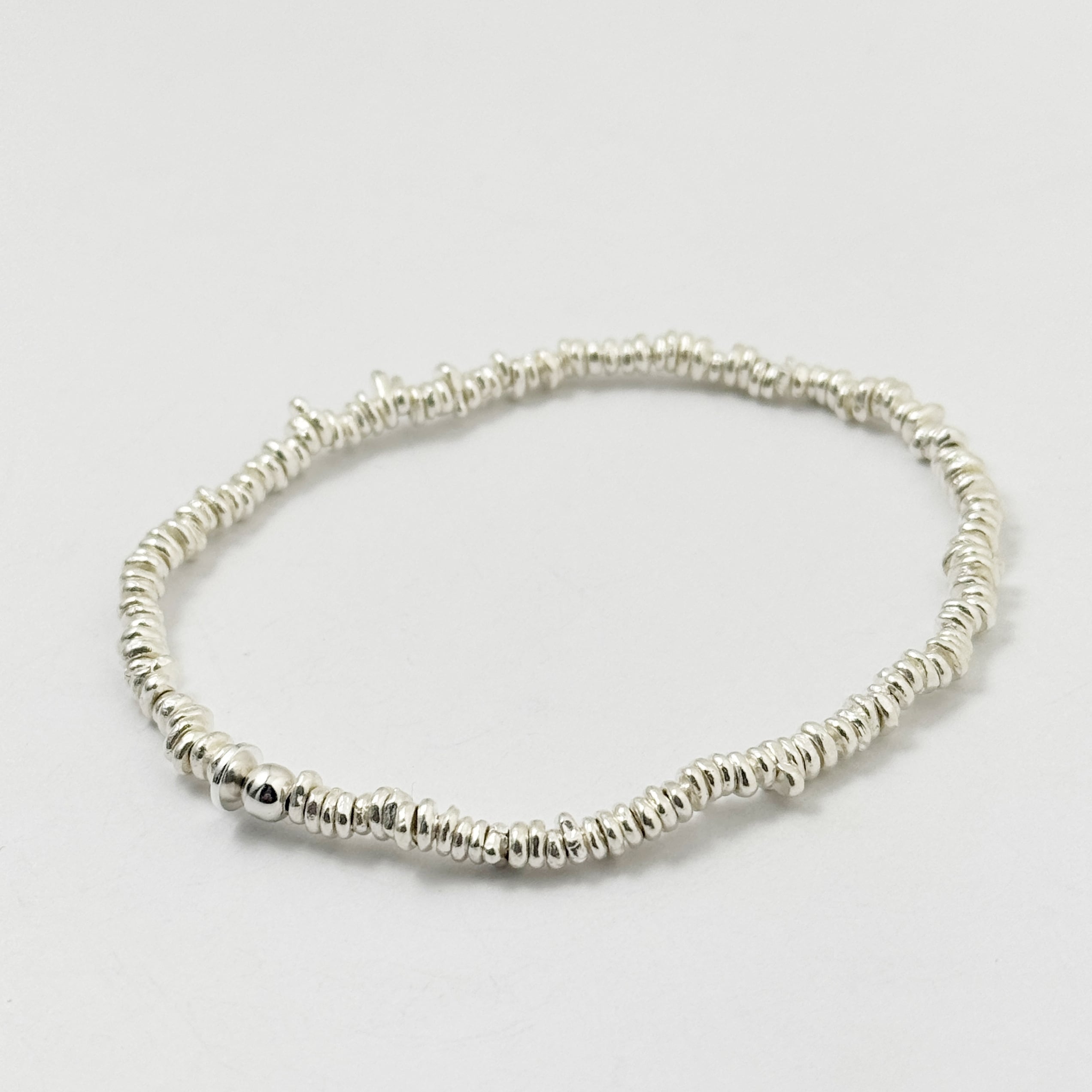 シルバービーズを使用した、ボリュームのあるブレスレット。
