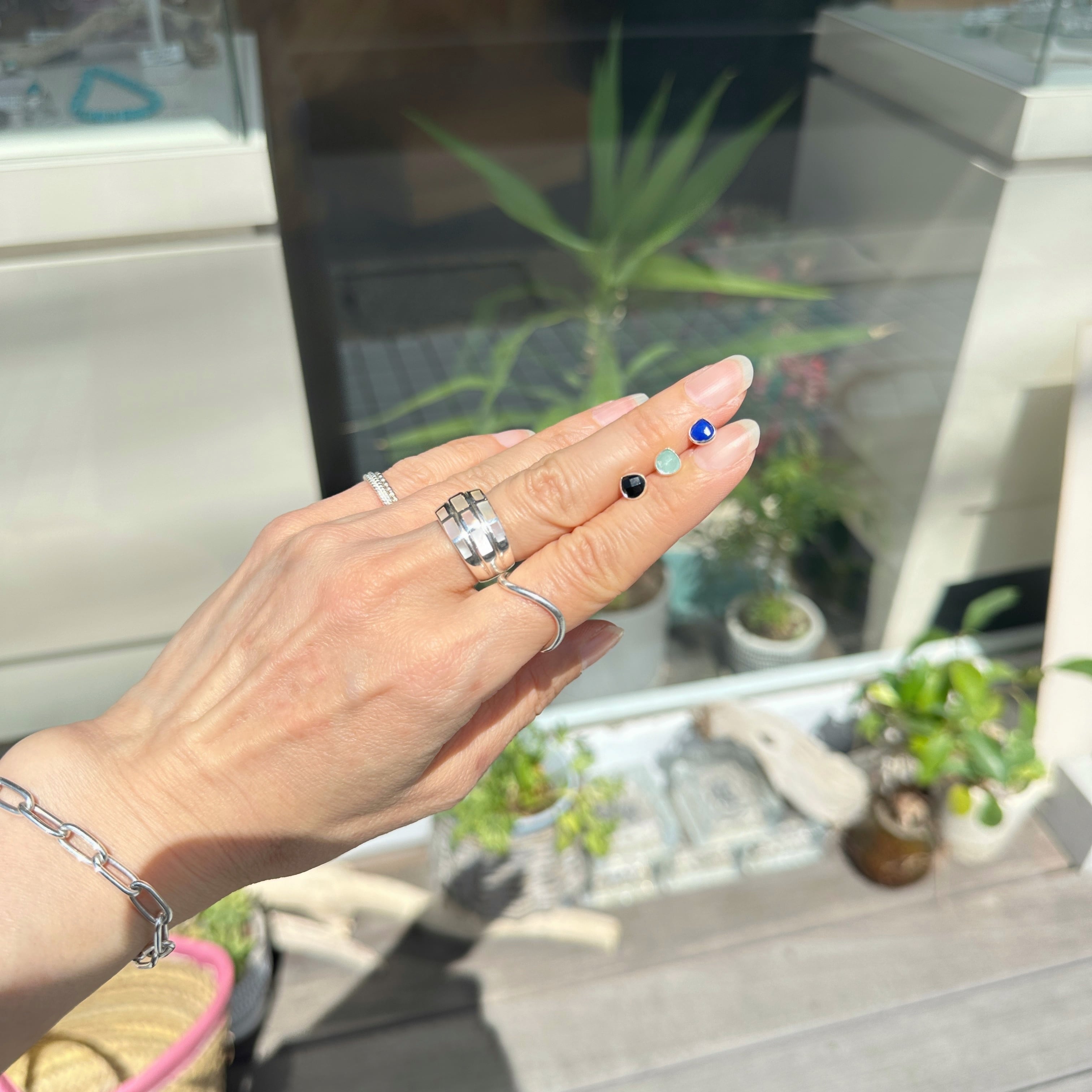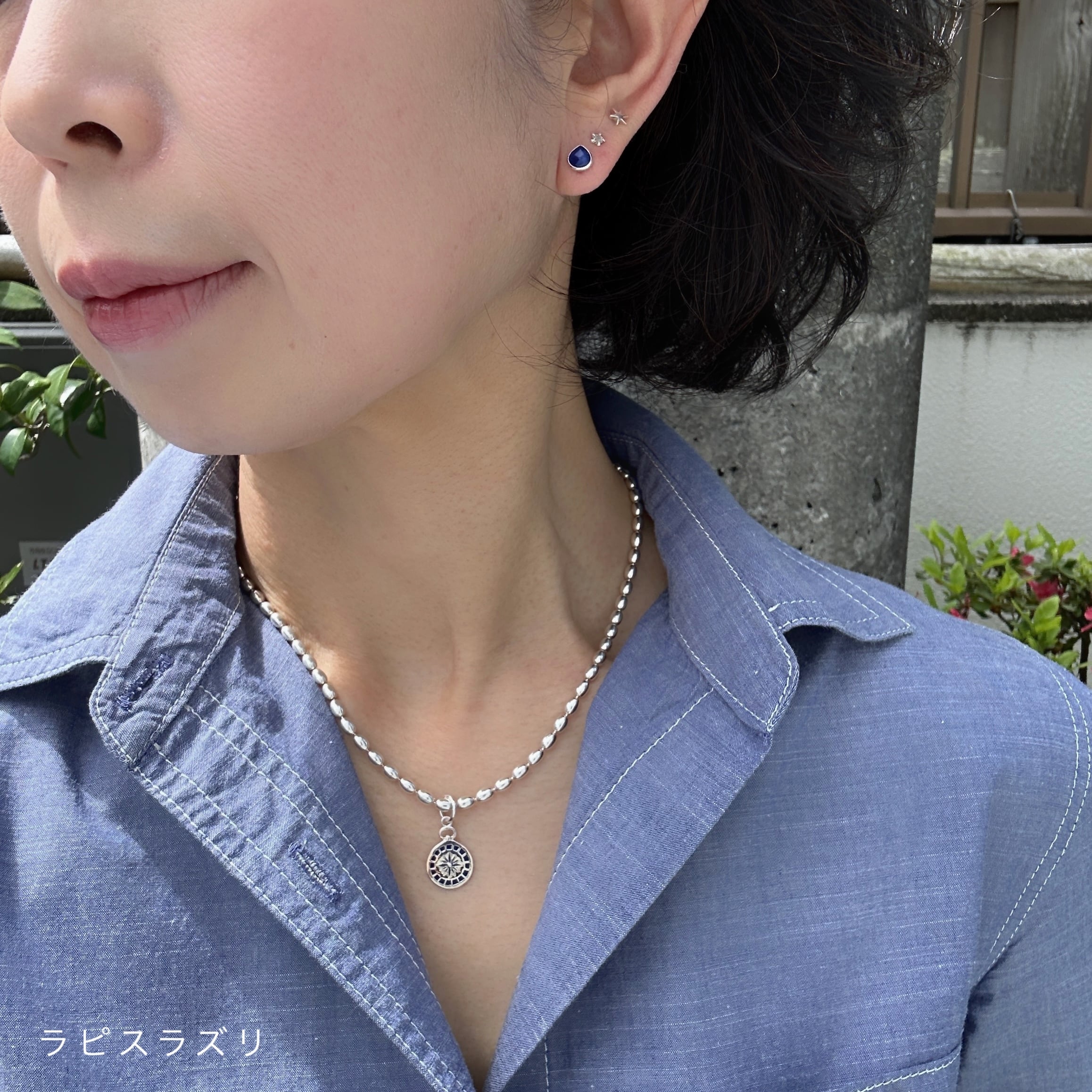 天然石の周りをシルバーでフレーミングしたシンプルなデザインとなります。