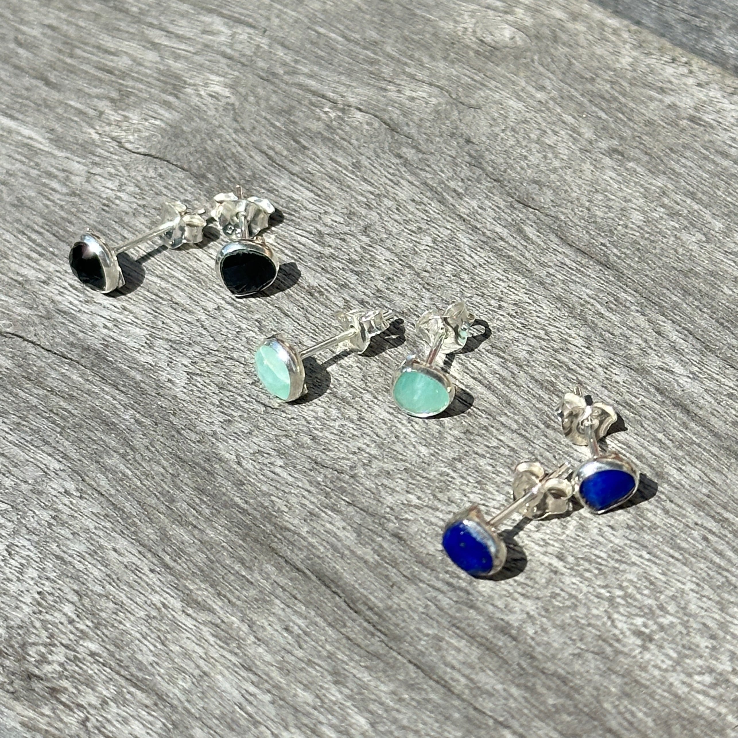 マロン型 スタッドピアス オニキス / カルセドニー / ラピスラズリ小さめピアス プチピアス Small
