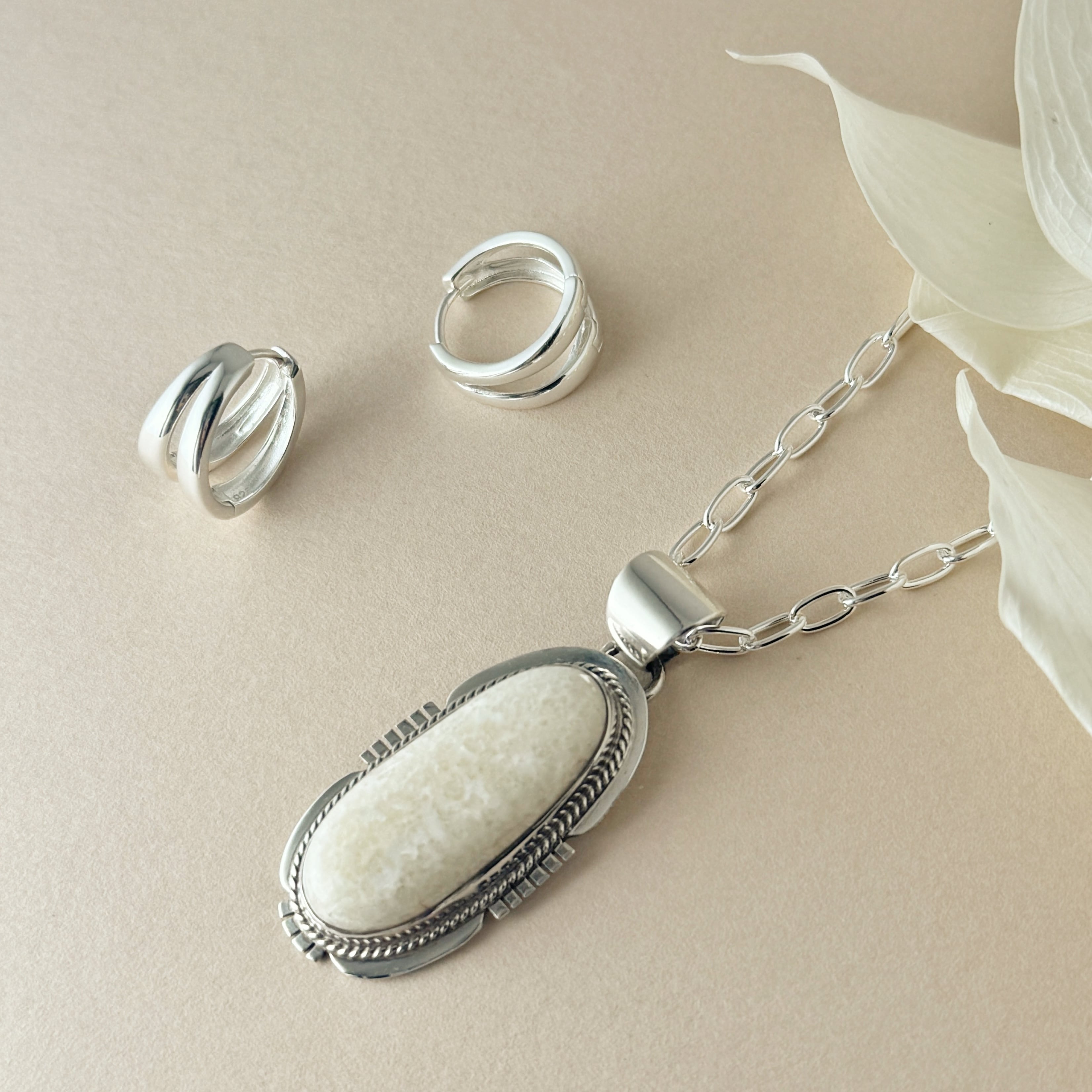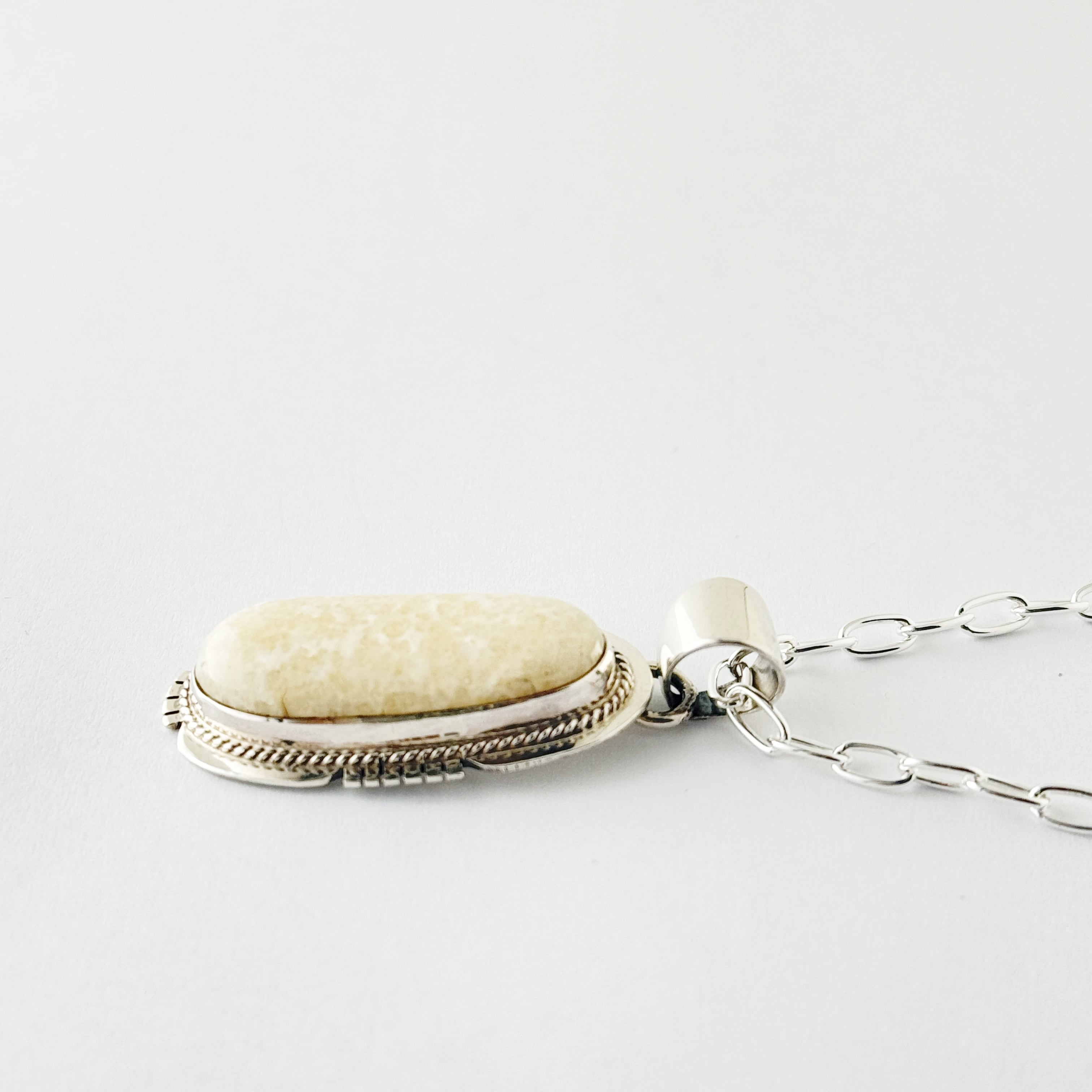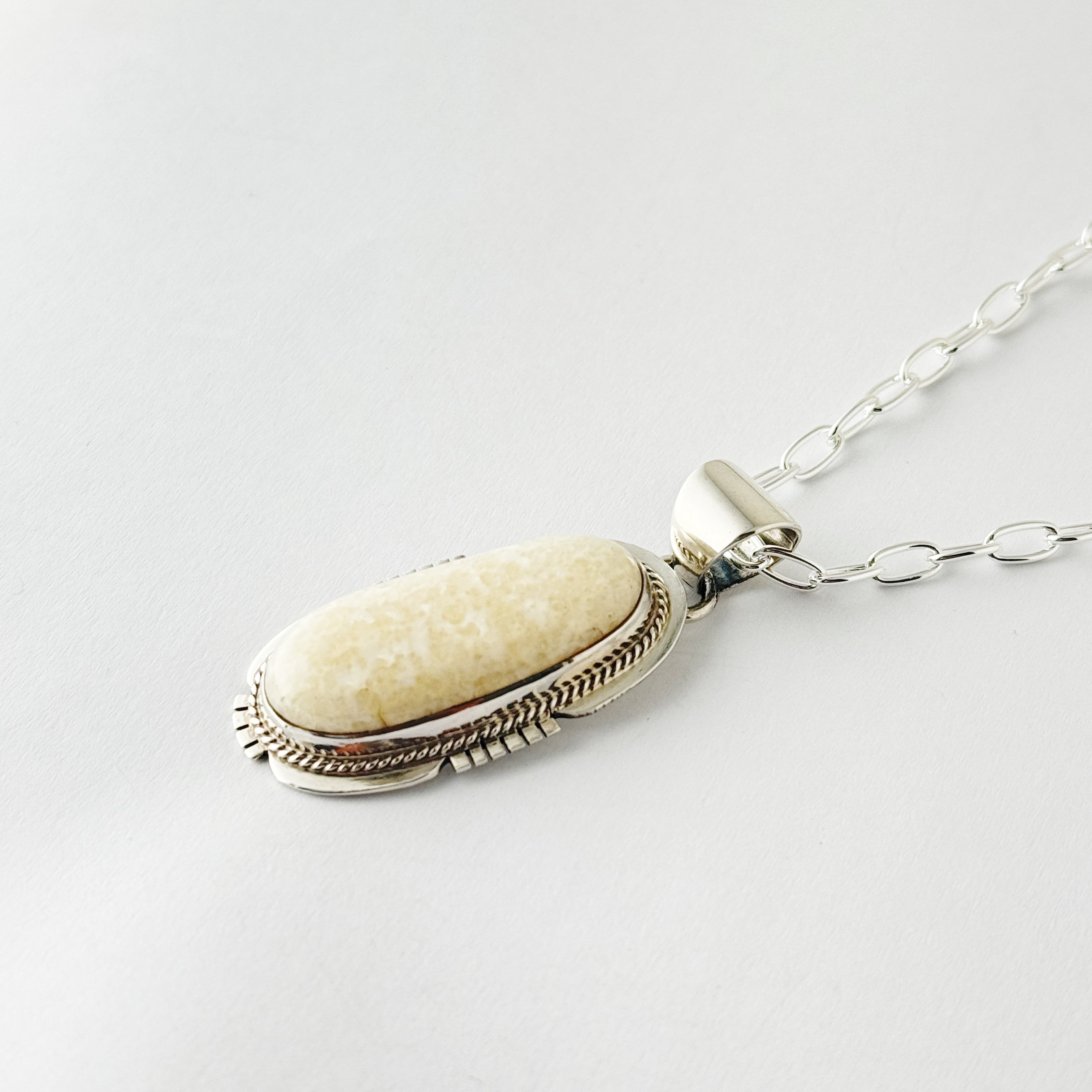 《Indian Jewelry 》 ウォーラスアイボリー L サイズ 各一点物ネックレス (チェーン オプション)