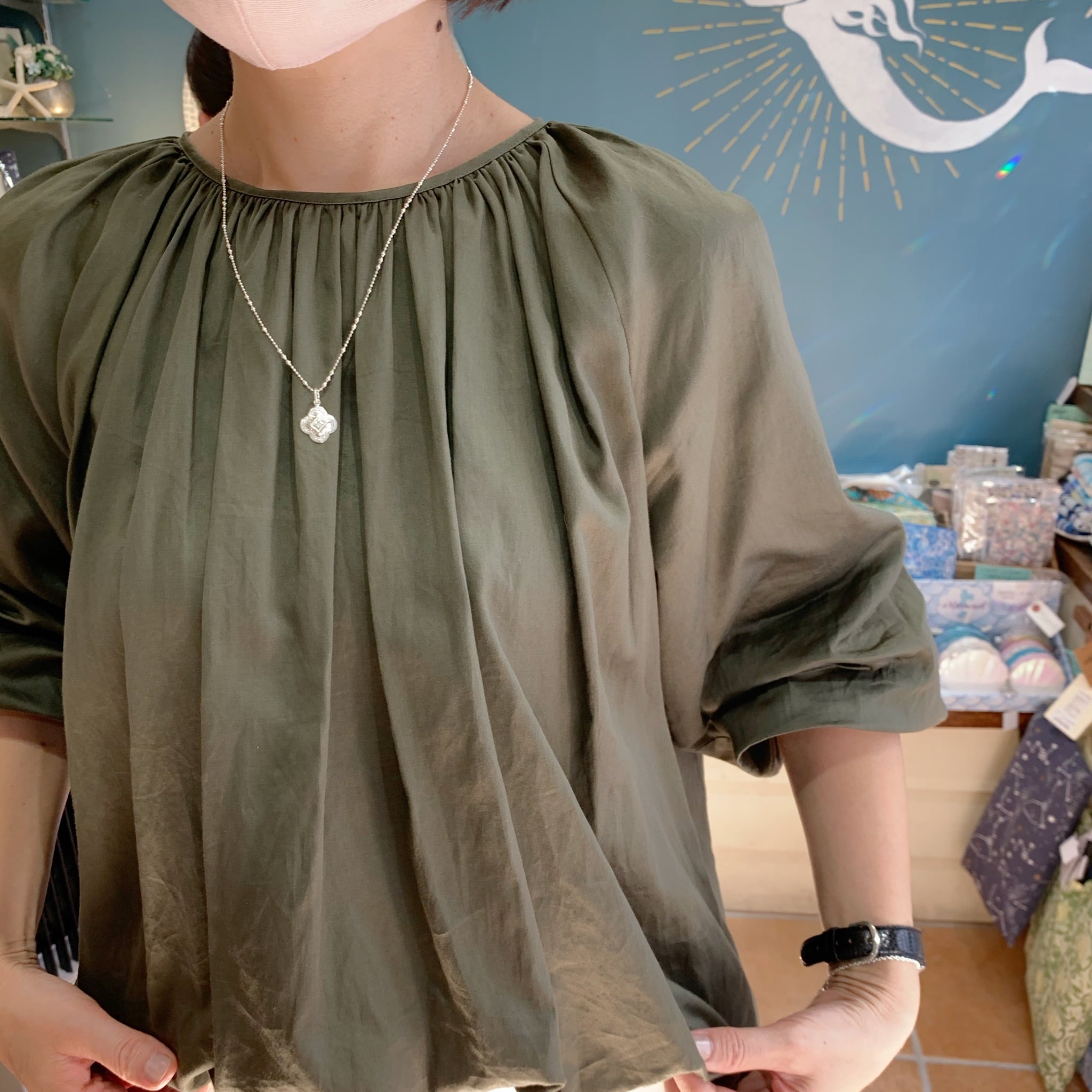 ちょっと可愛らしい洋服にも似合うアイテムです。