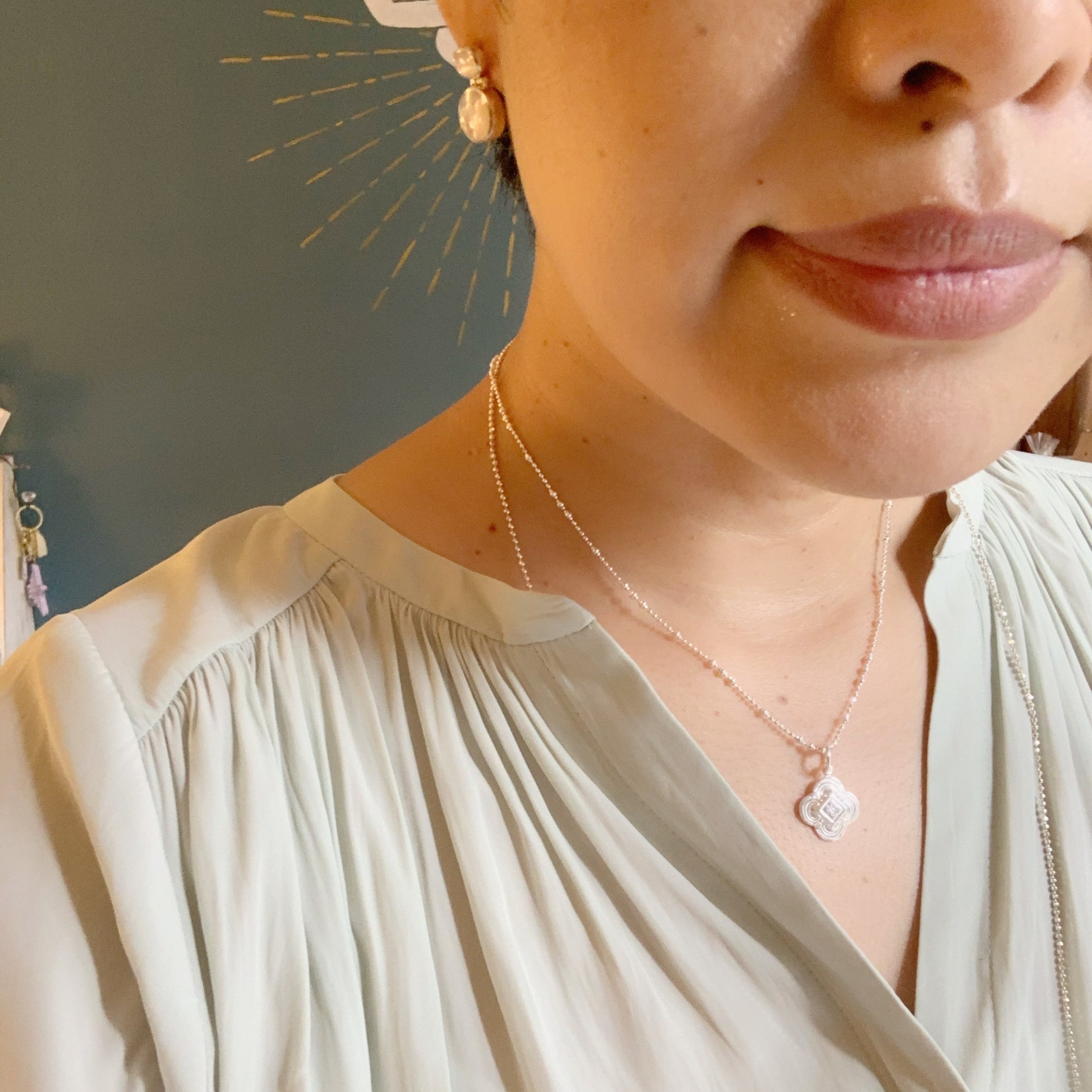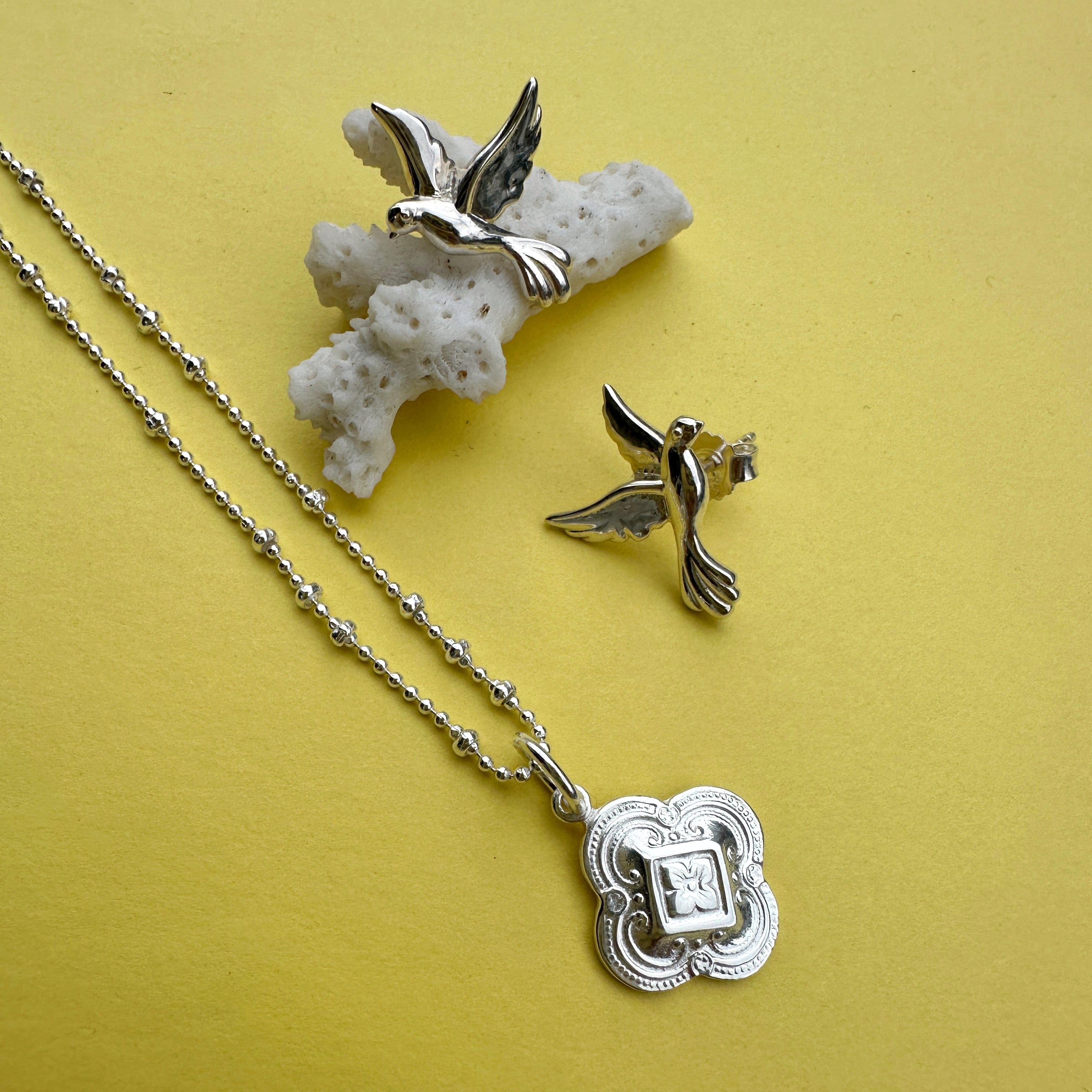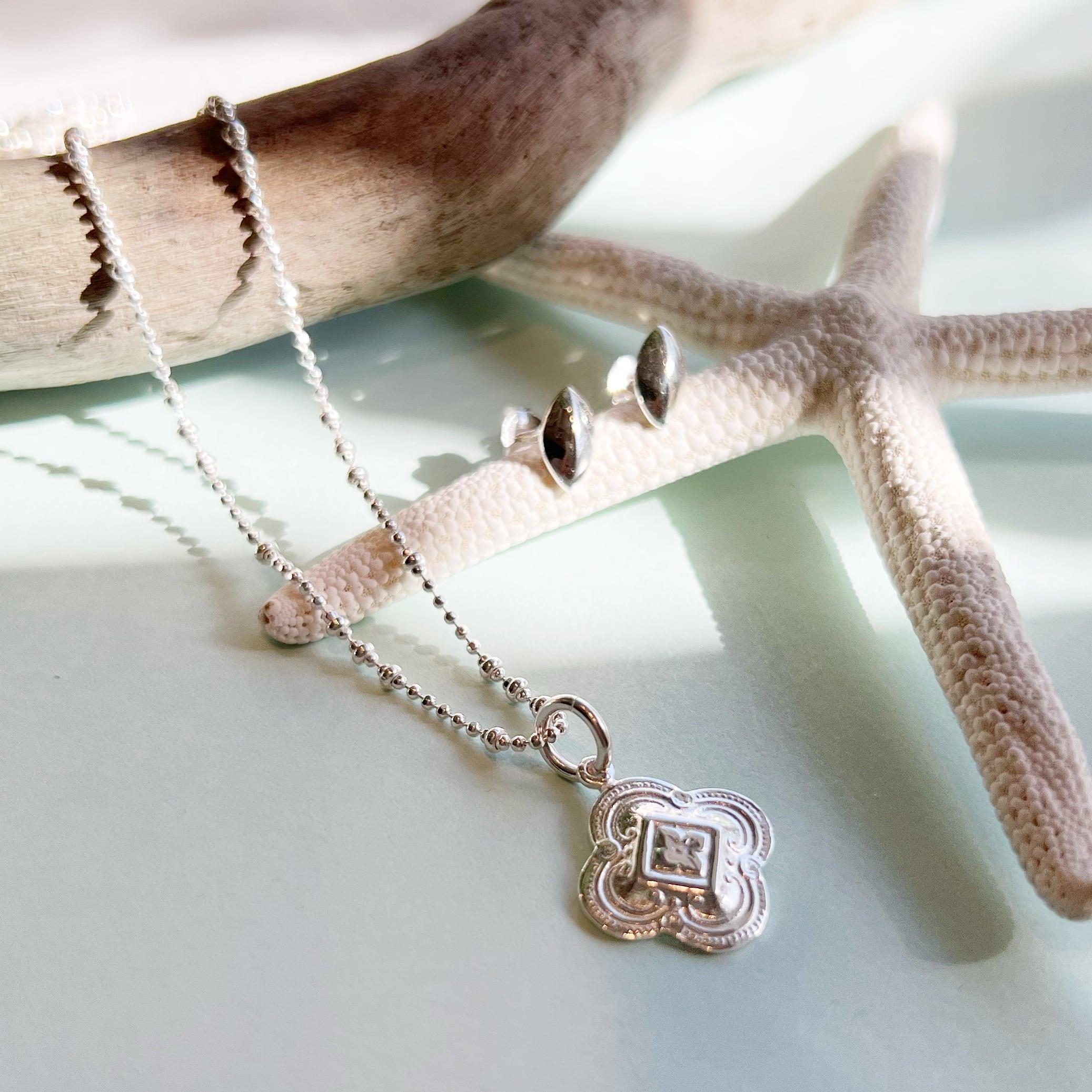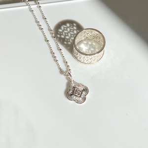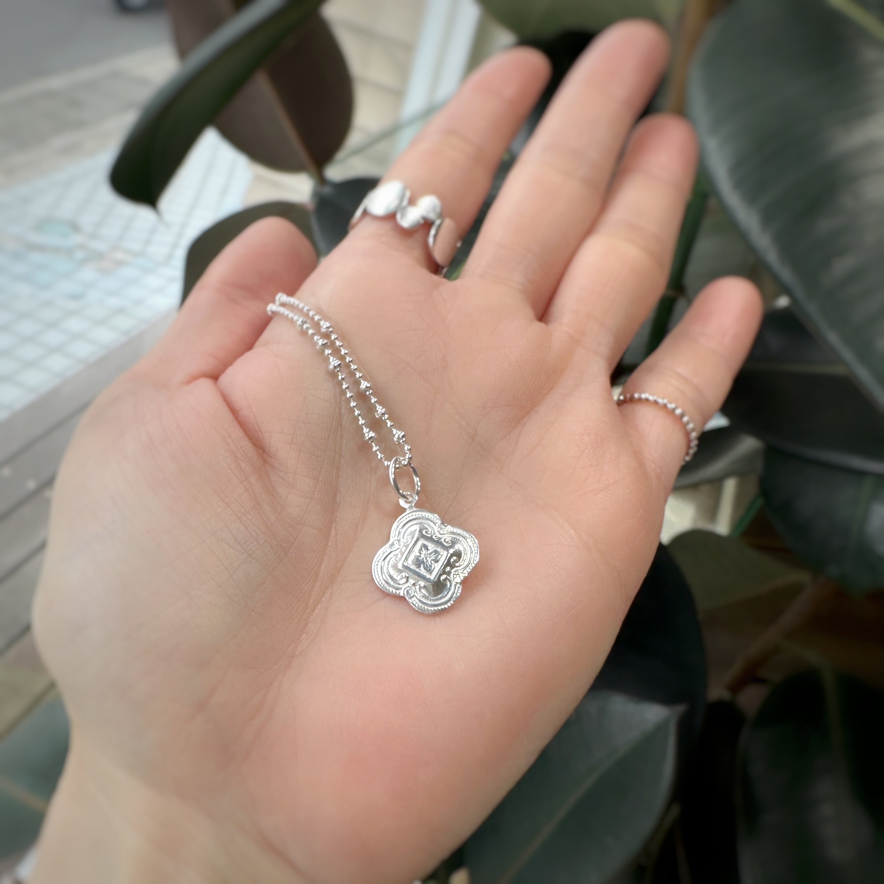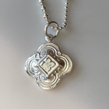かわいく彫り込まれた(カービング)フラワー型のペンダントトップ