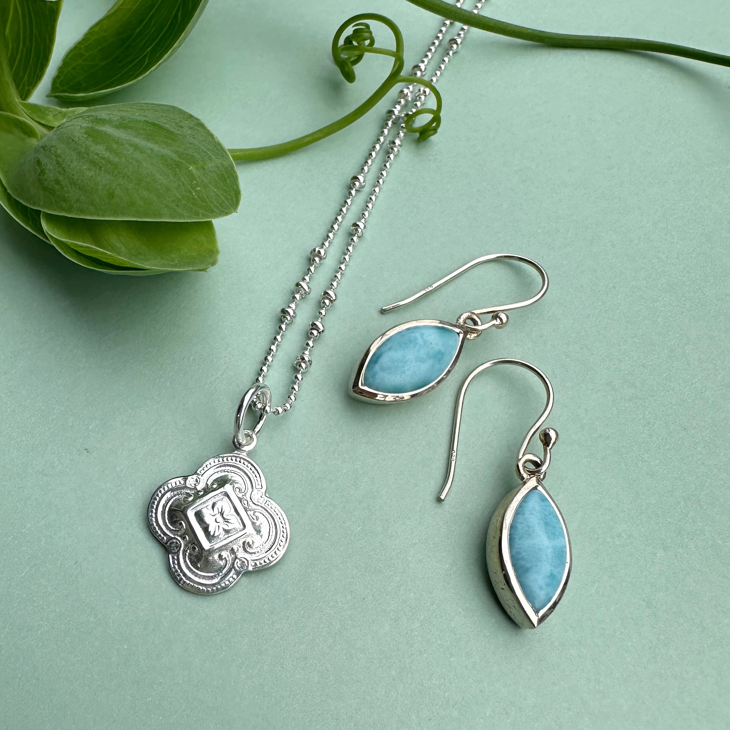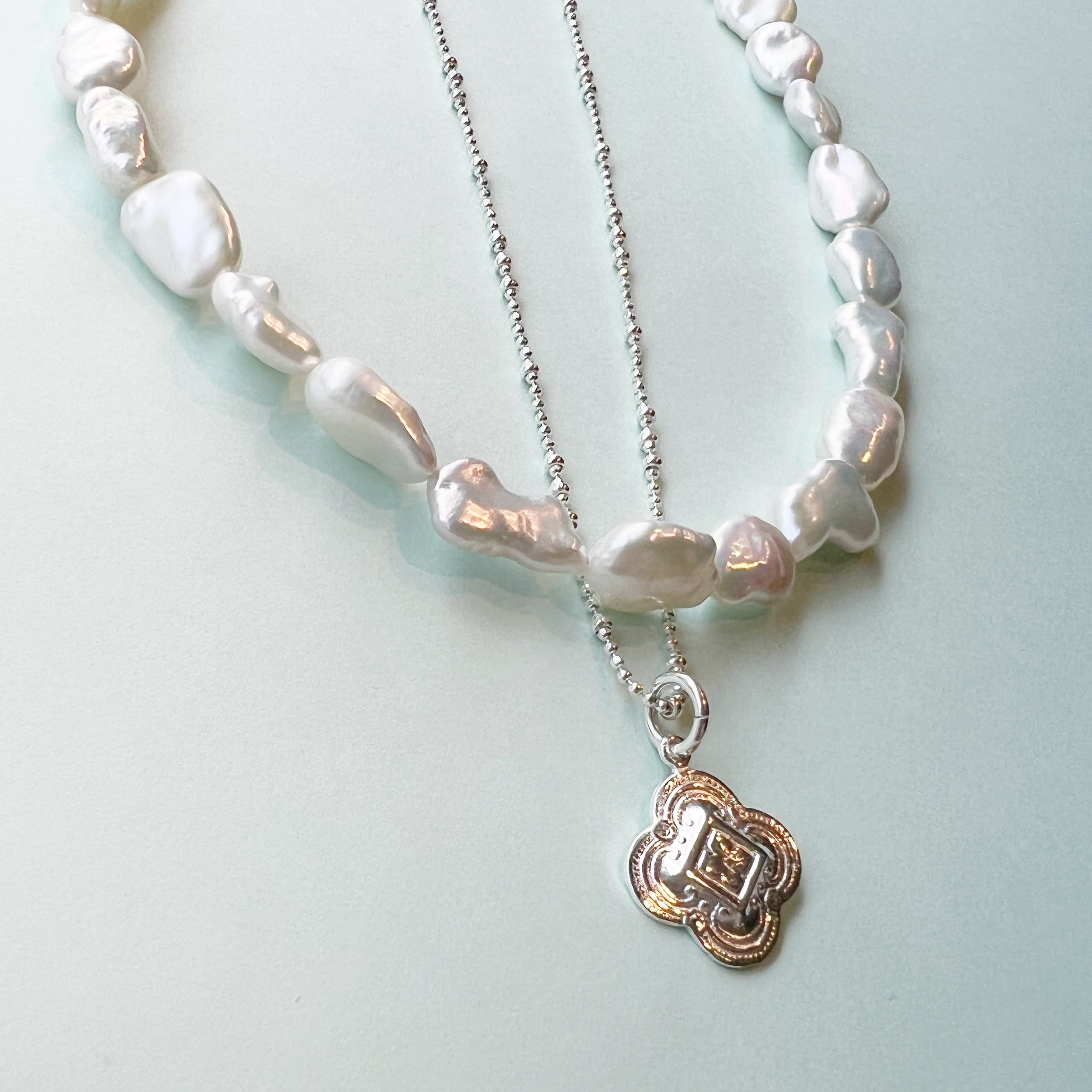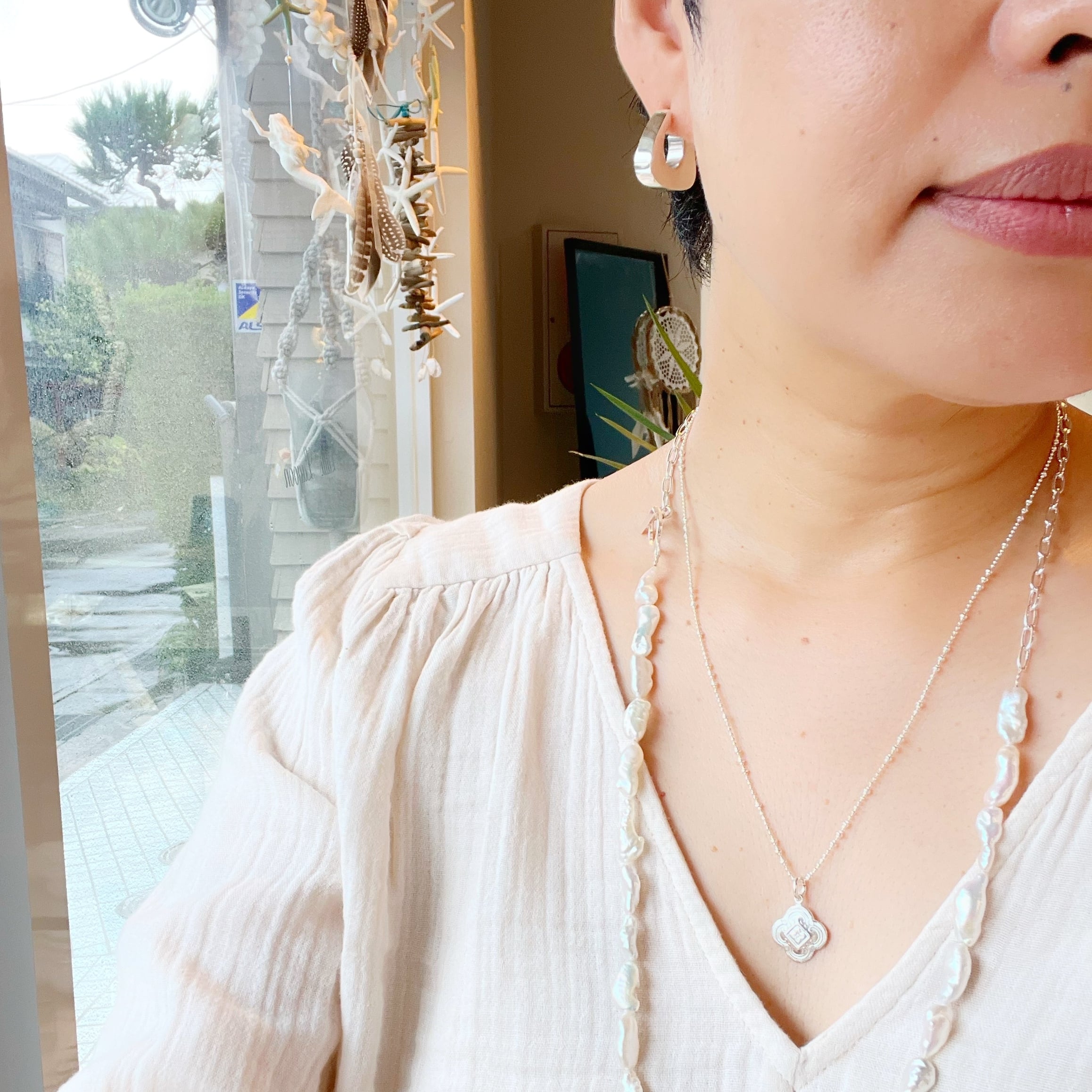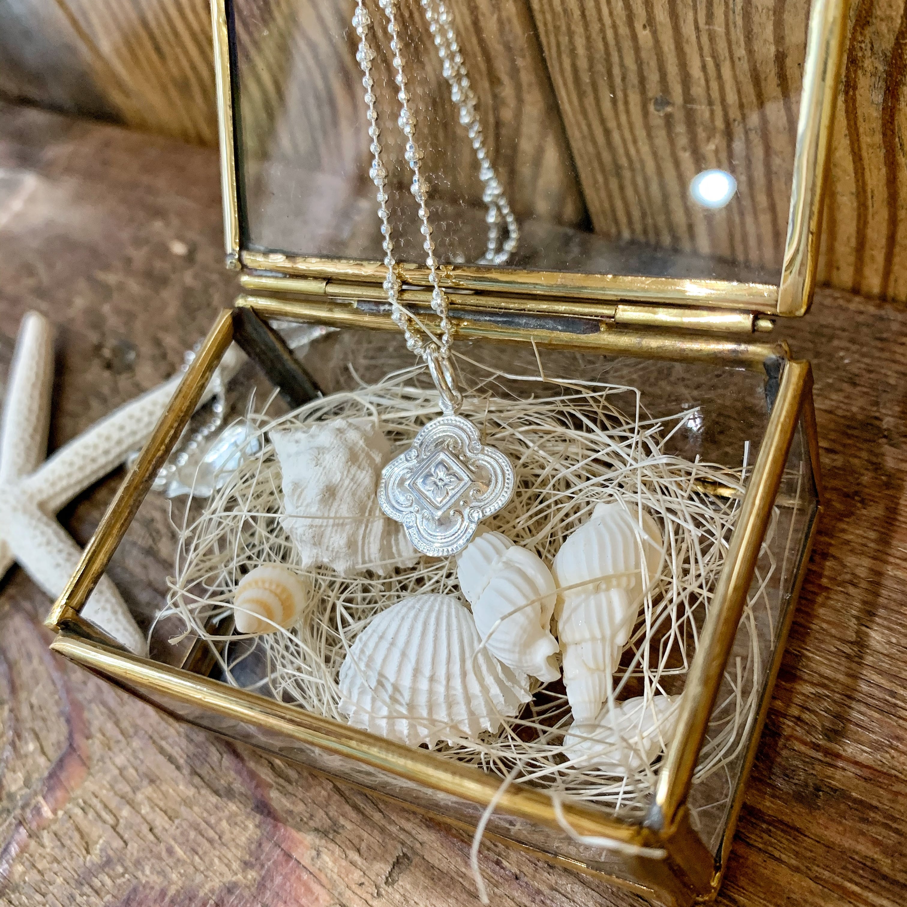 かわいく彫り込まれた(カービング)フラワー型のペンダントトップ
