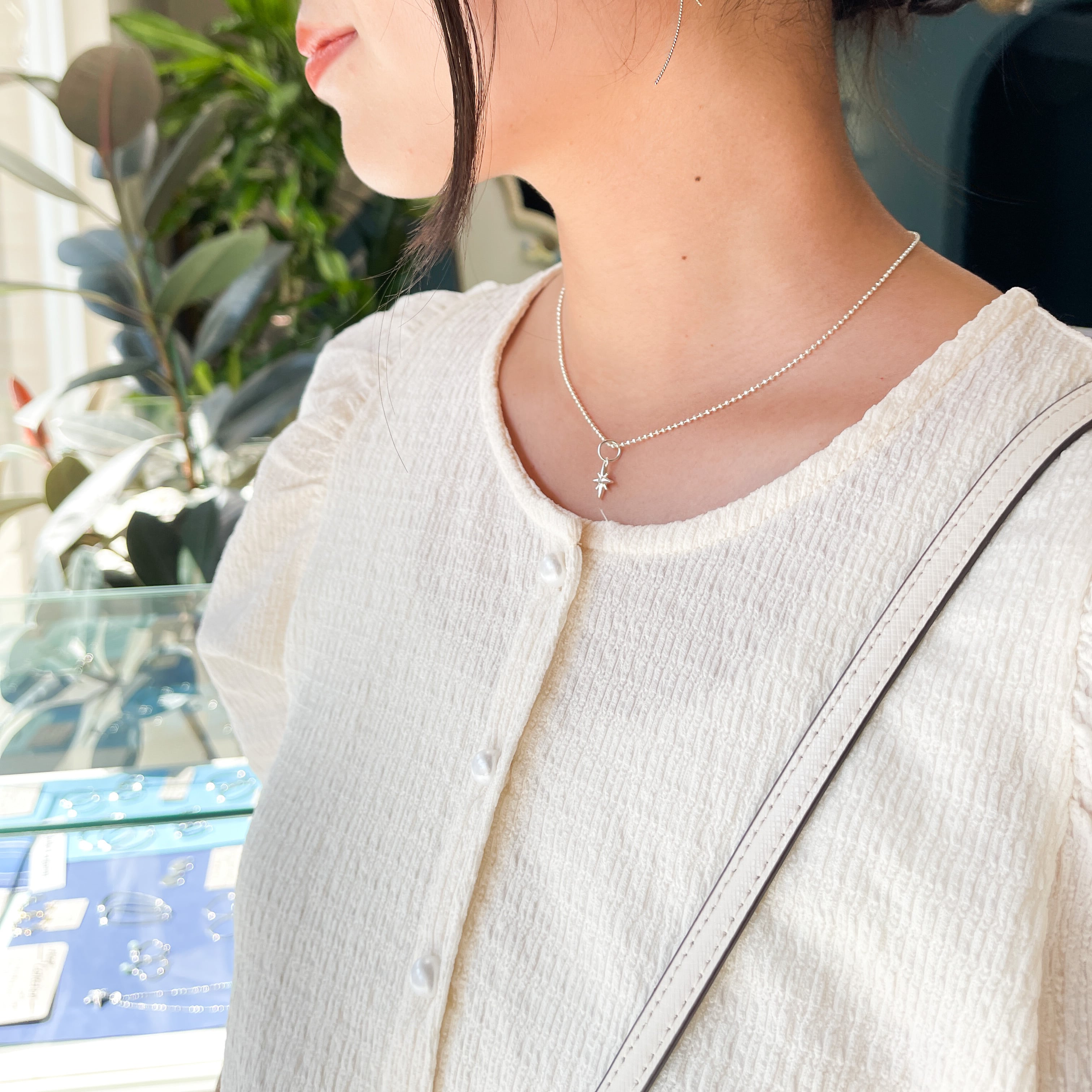 お仕事にも使えそうな、小ぶりなネックレスです。