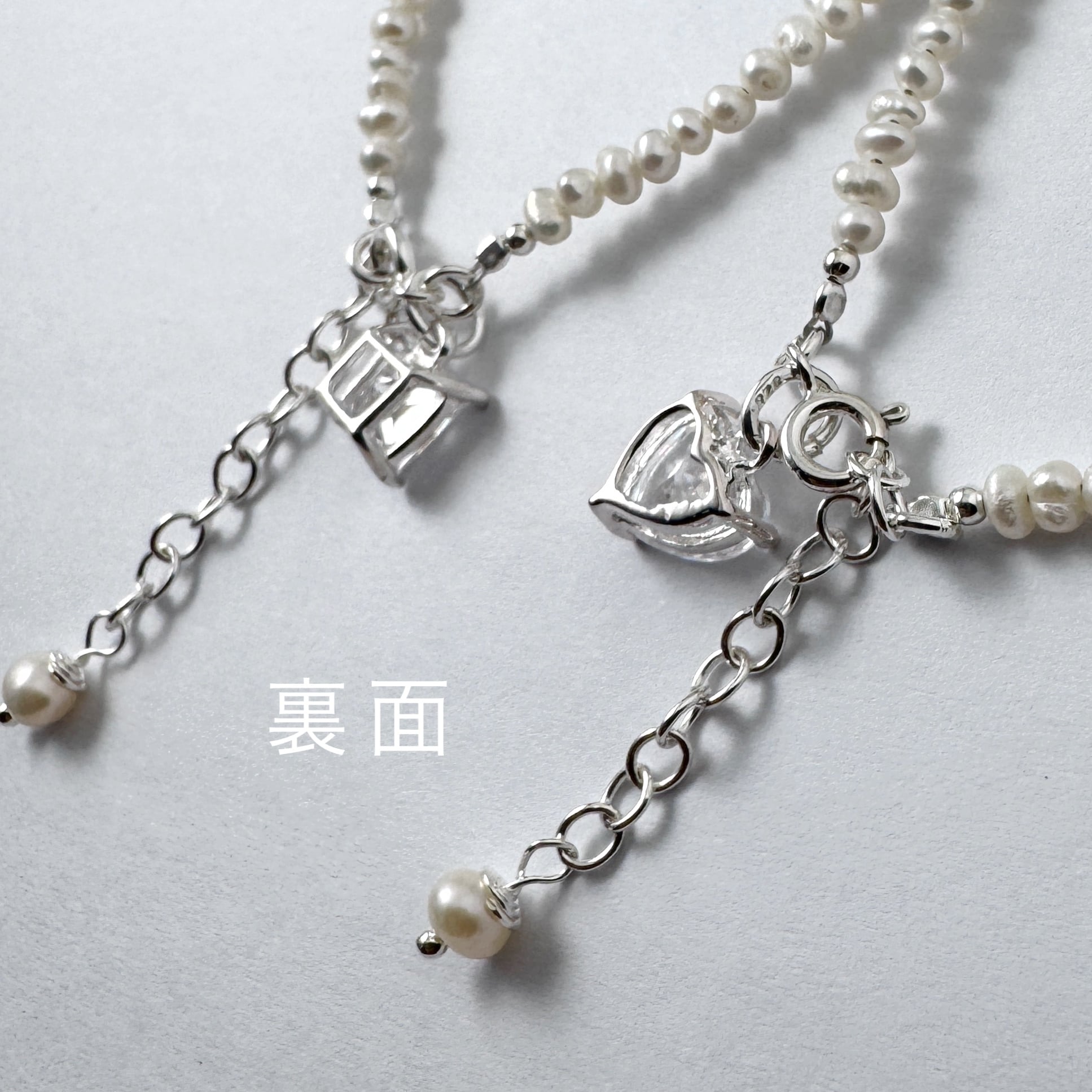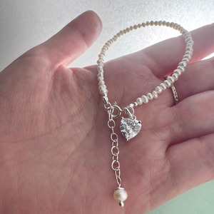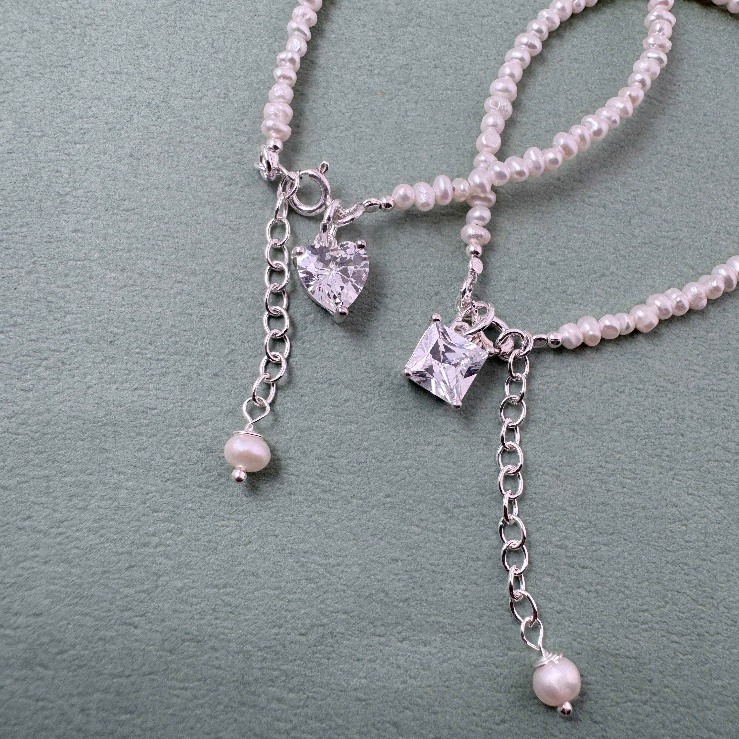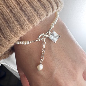 【再入荷】Lagoon Oroginal ホワイトパールブレスレット スクエアジルコニアor ハートジルコニア