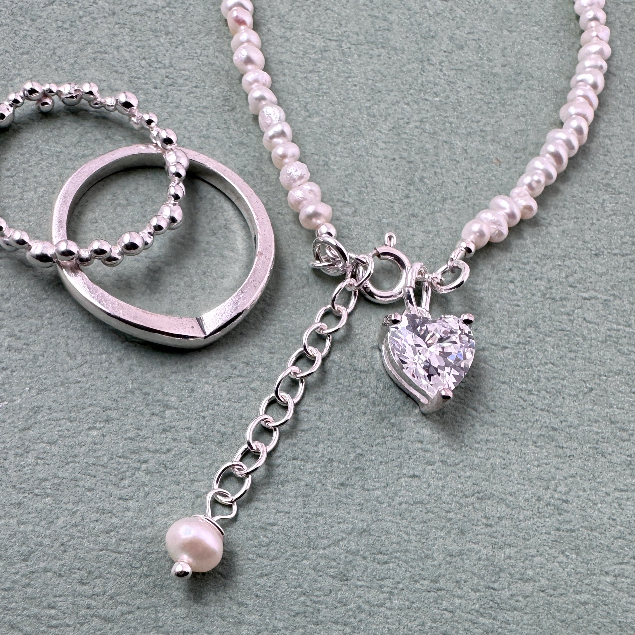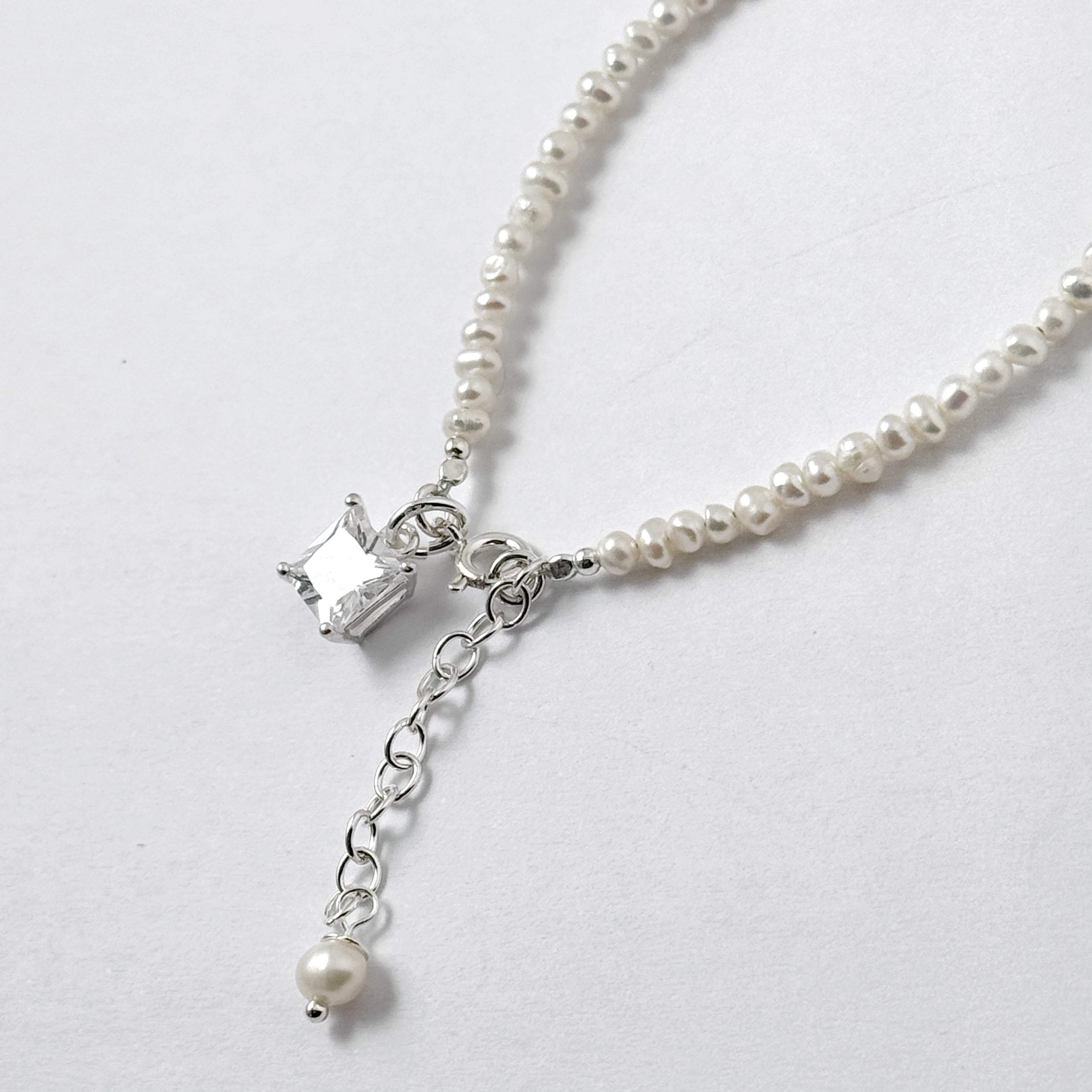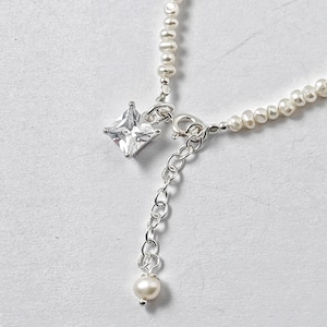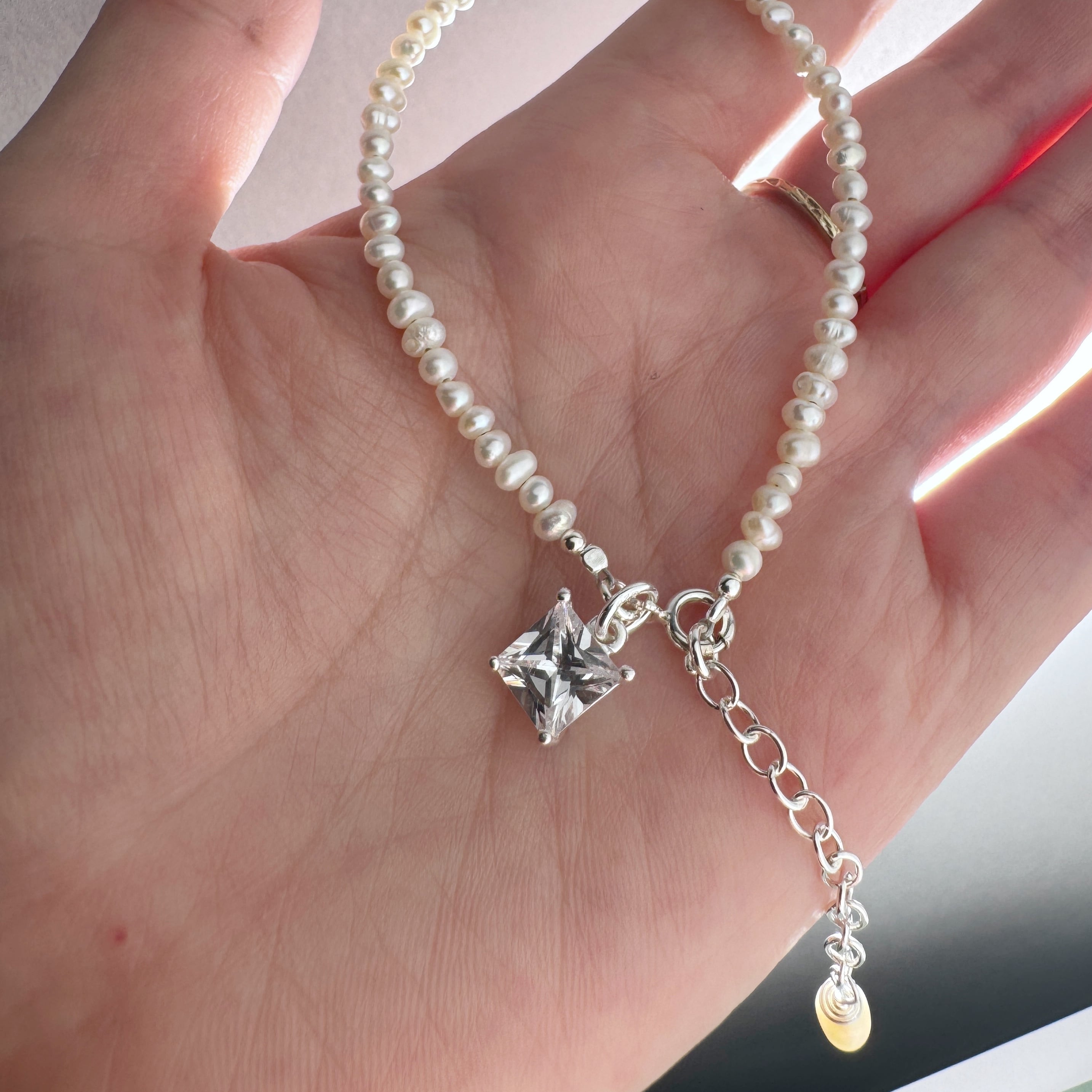 【再入荷】Lagoon Oroginal ホワイトパールブレスレット スクエアジルコニアor ハートジルコニア