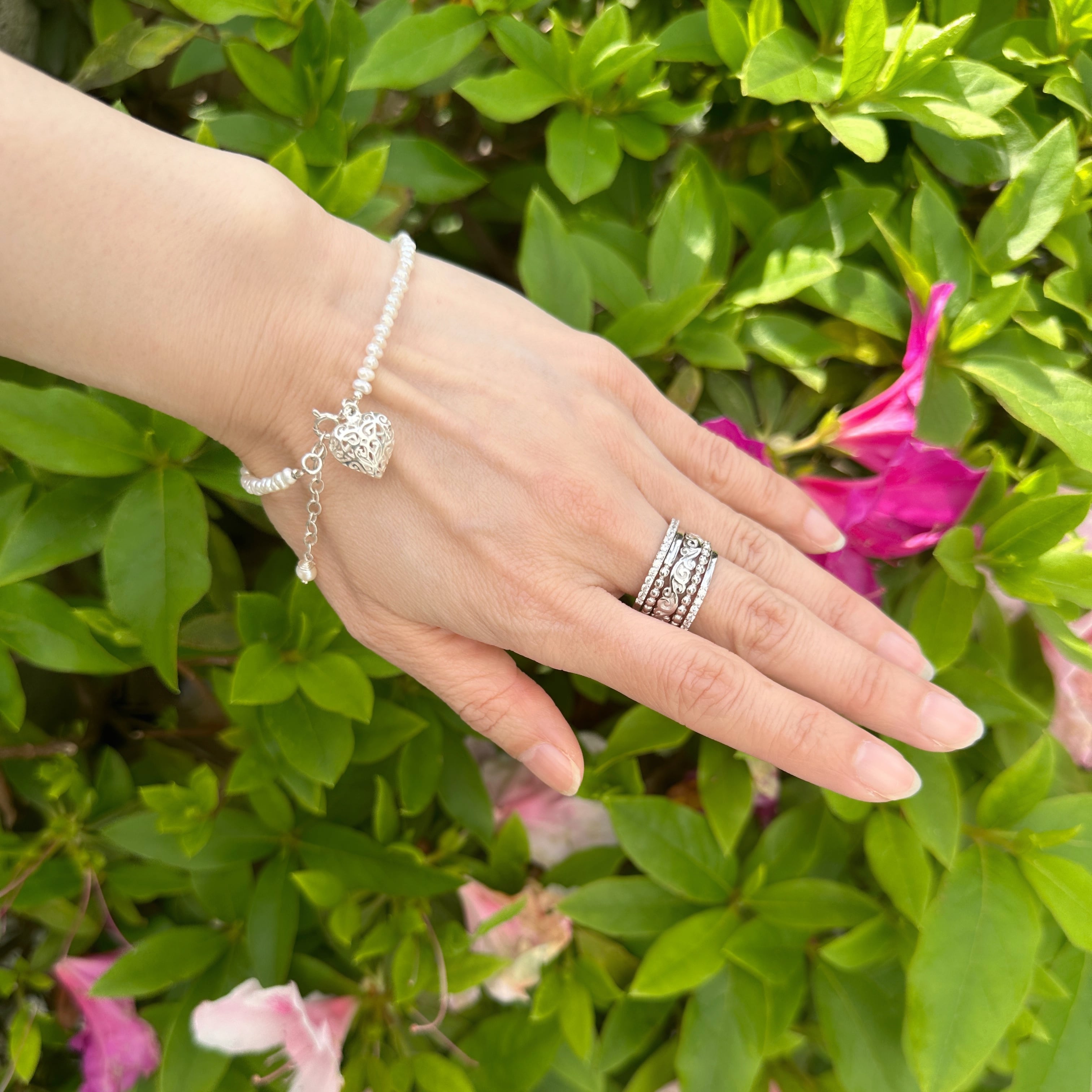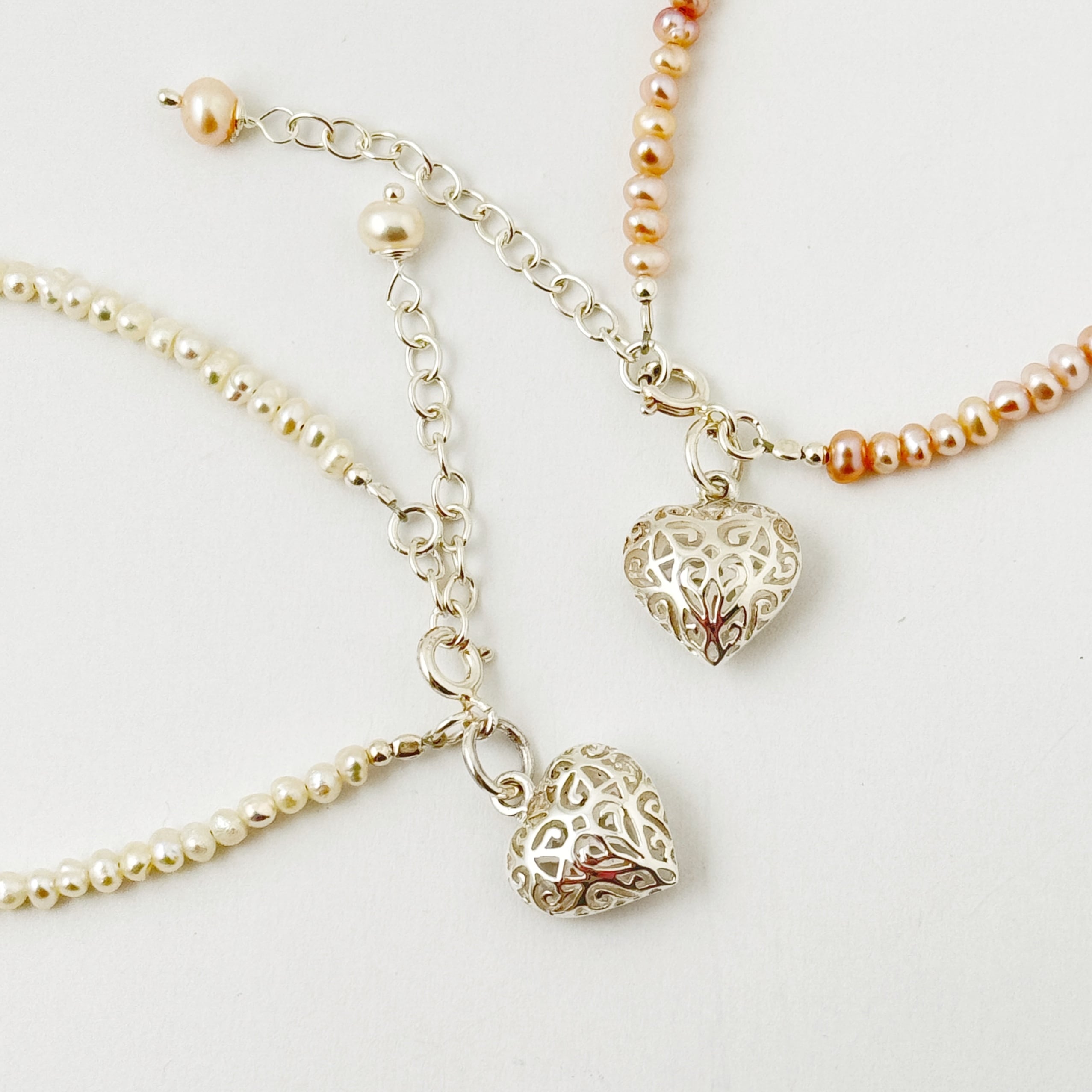 Lagoon Original で作った ハートがついたパールブレスレット。