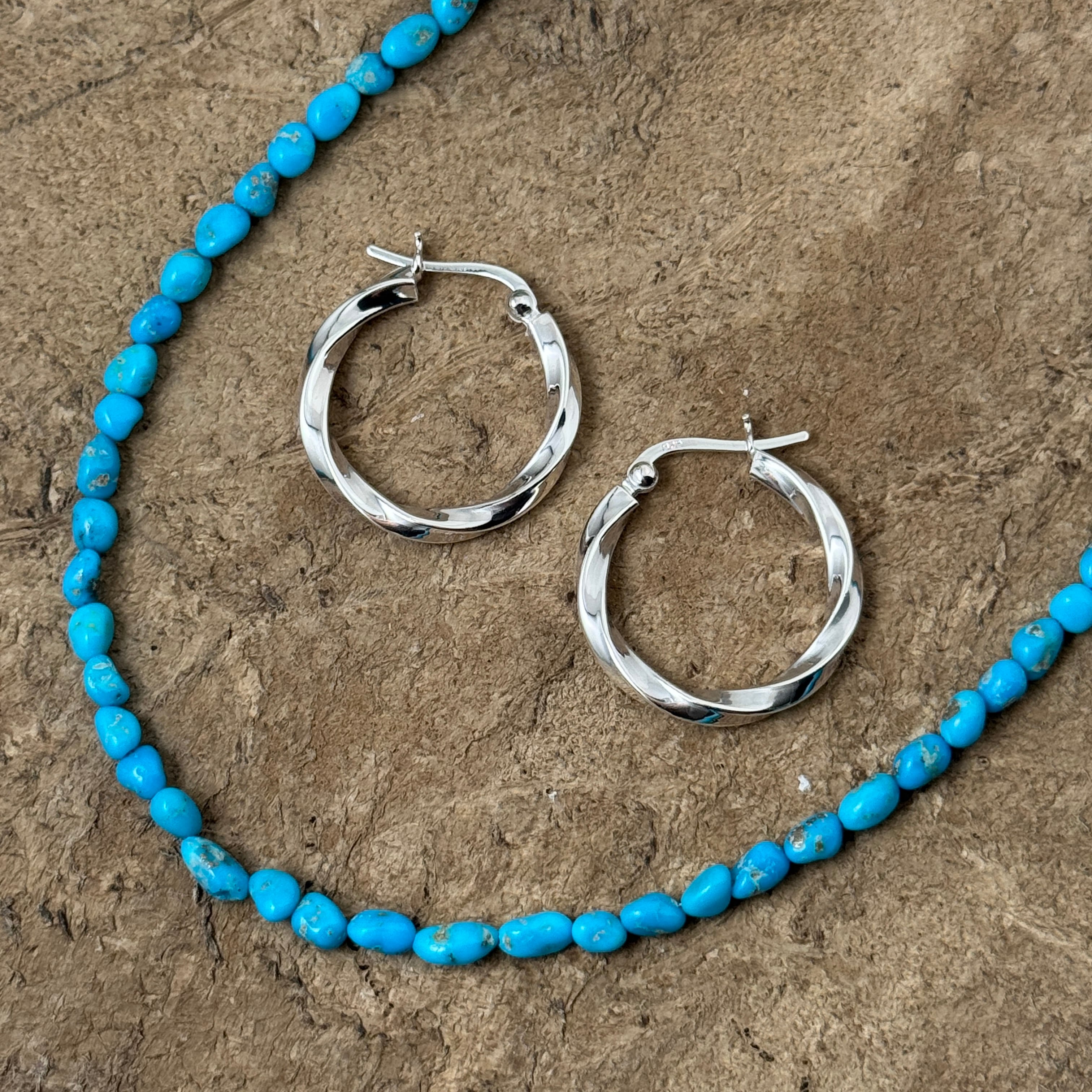 ターコイズのネックレスでカジュアルにも似合ってしまうので、今日はどうしよう…と言う日の救世主ピアス!