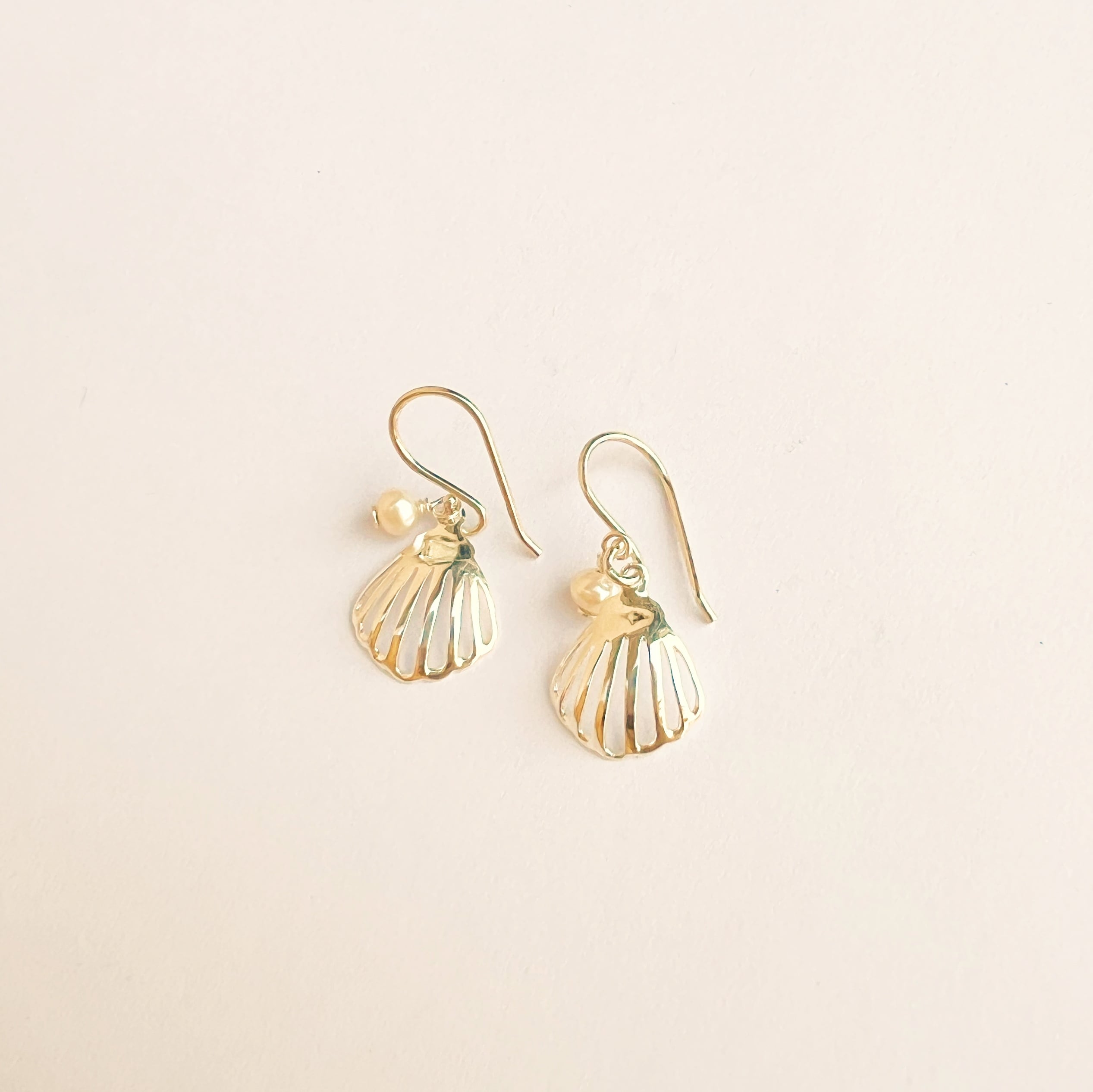 スカシのシェルに、小さな淡水パールをセットしました。