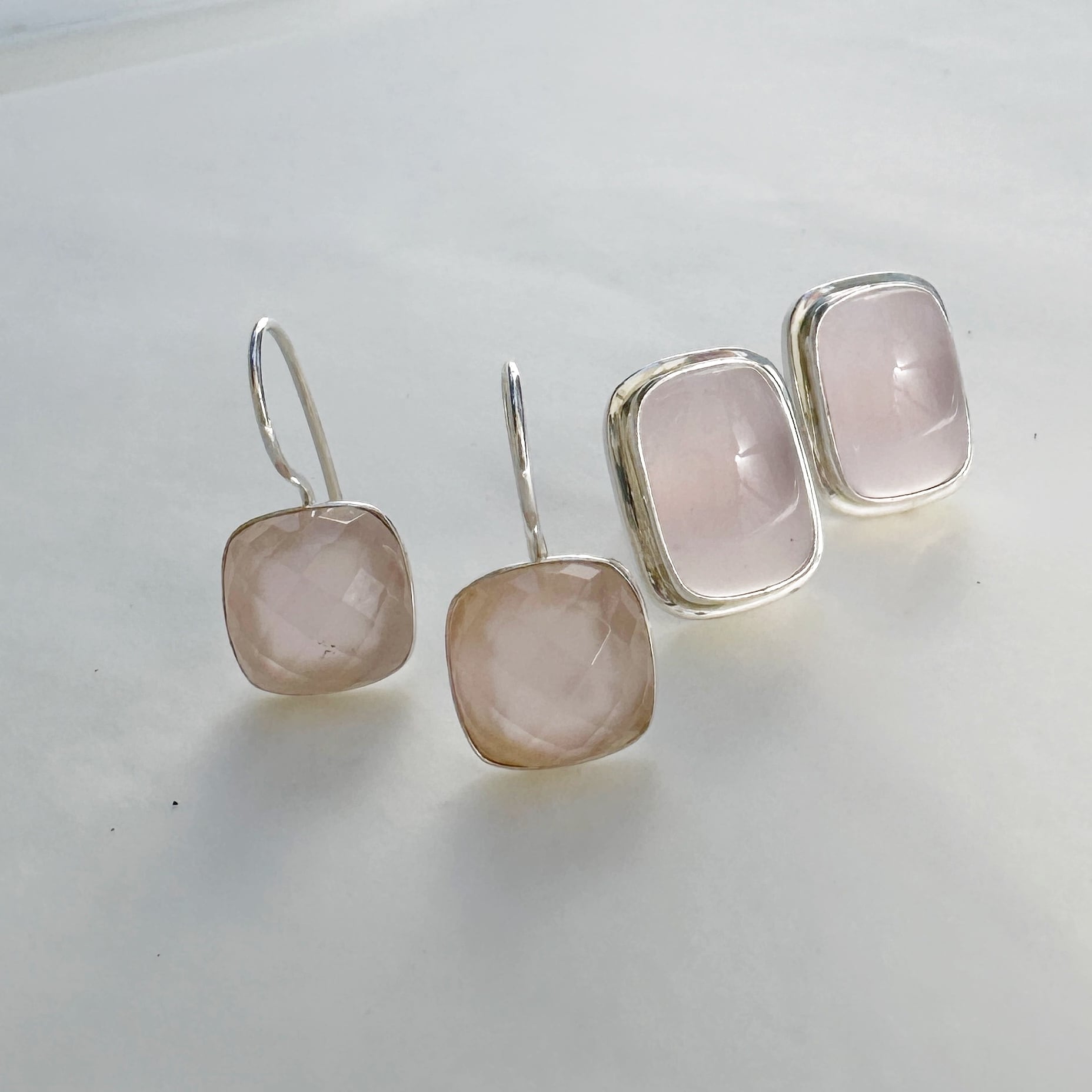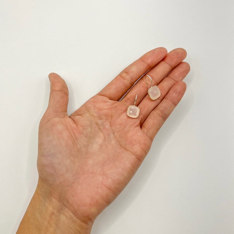 スクエア型なので、シャープな印象も持ち合わせつつ、ストーンの表情が優しいので、甘口になりすぎないピンクジュエリーです。