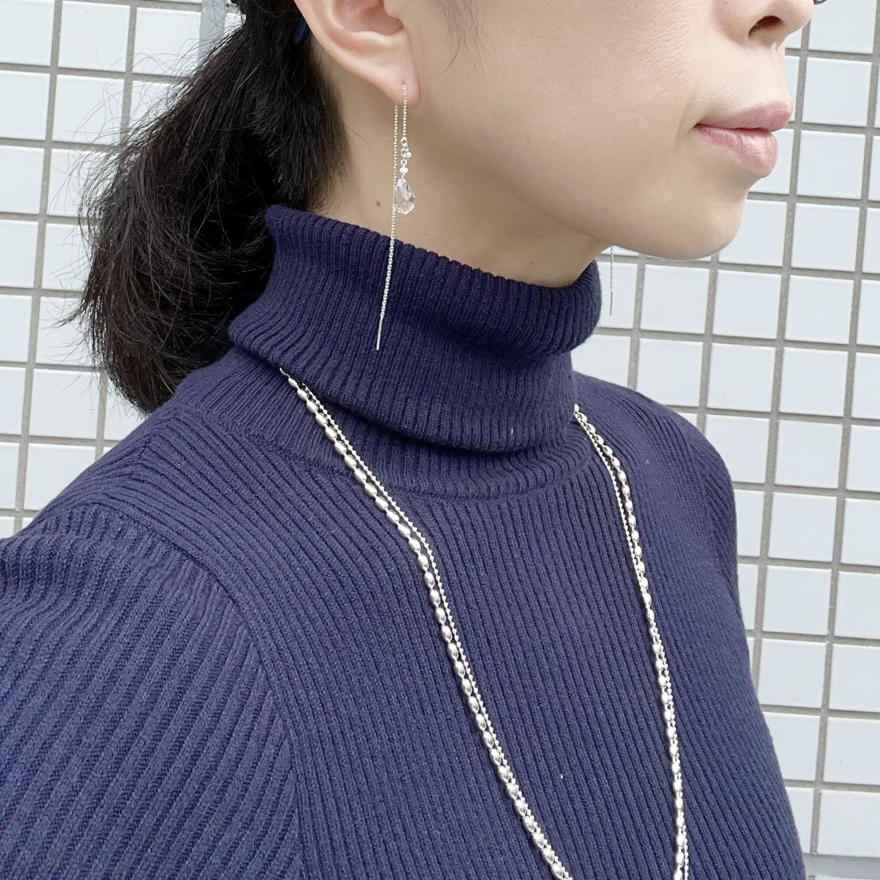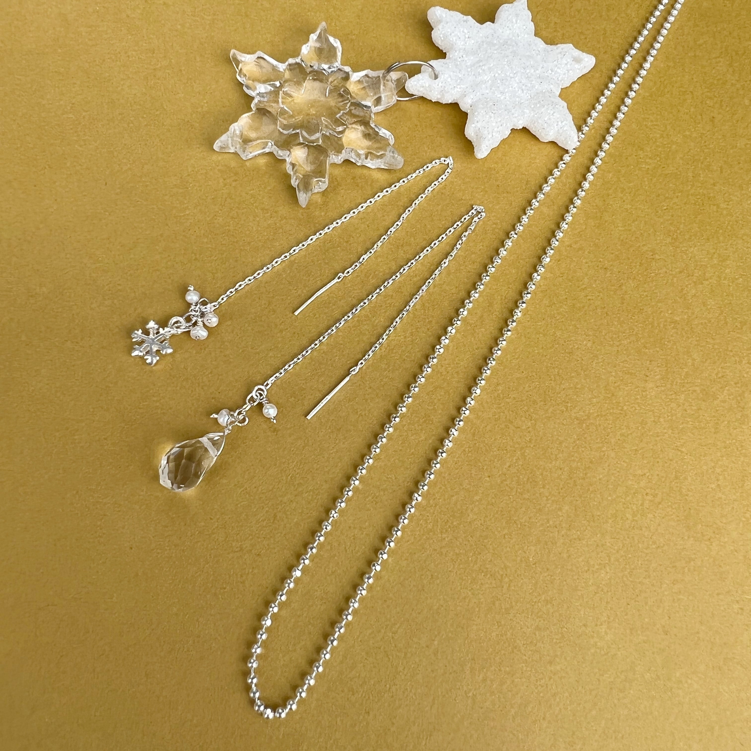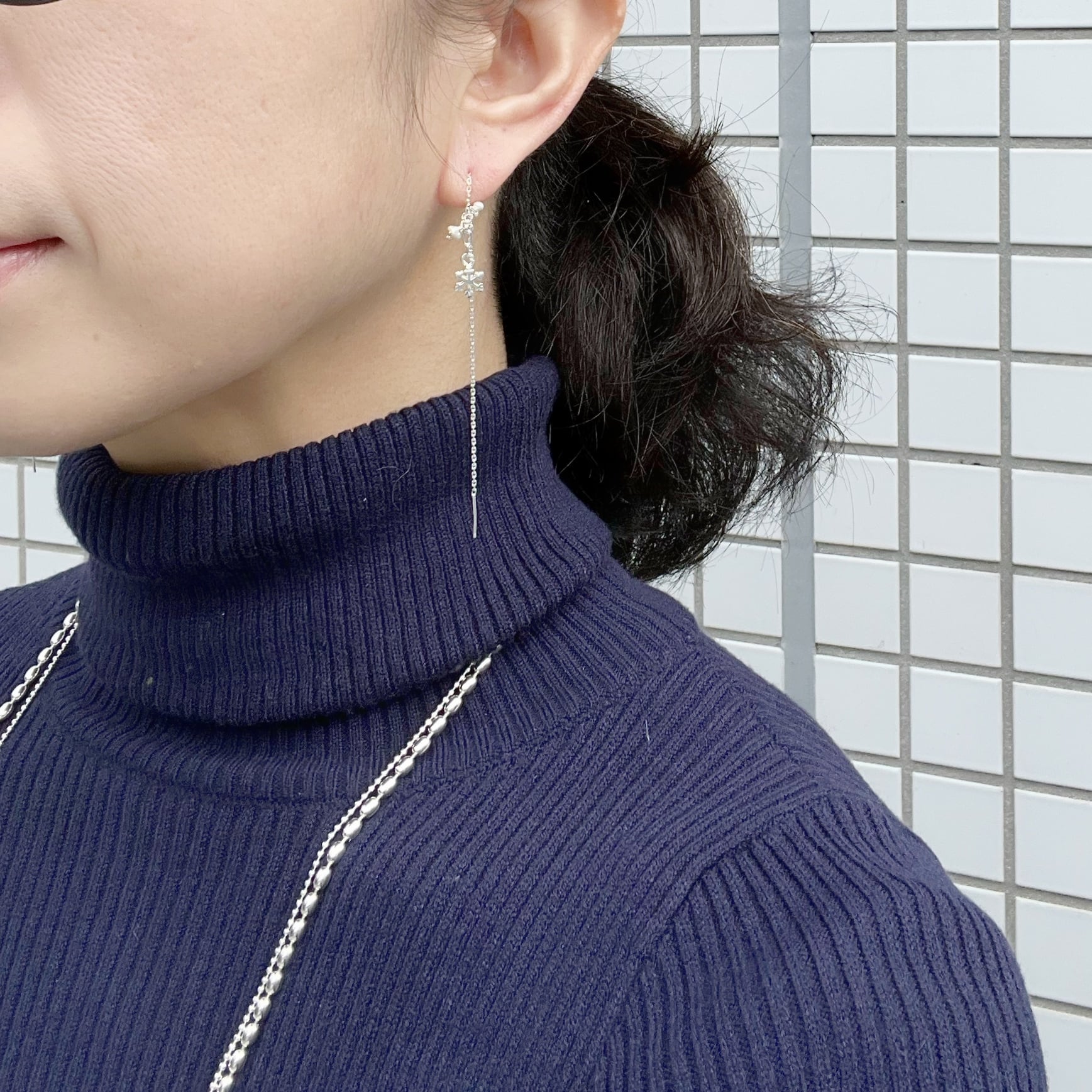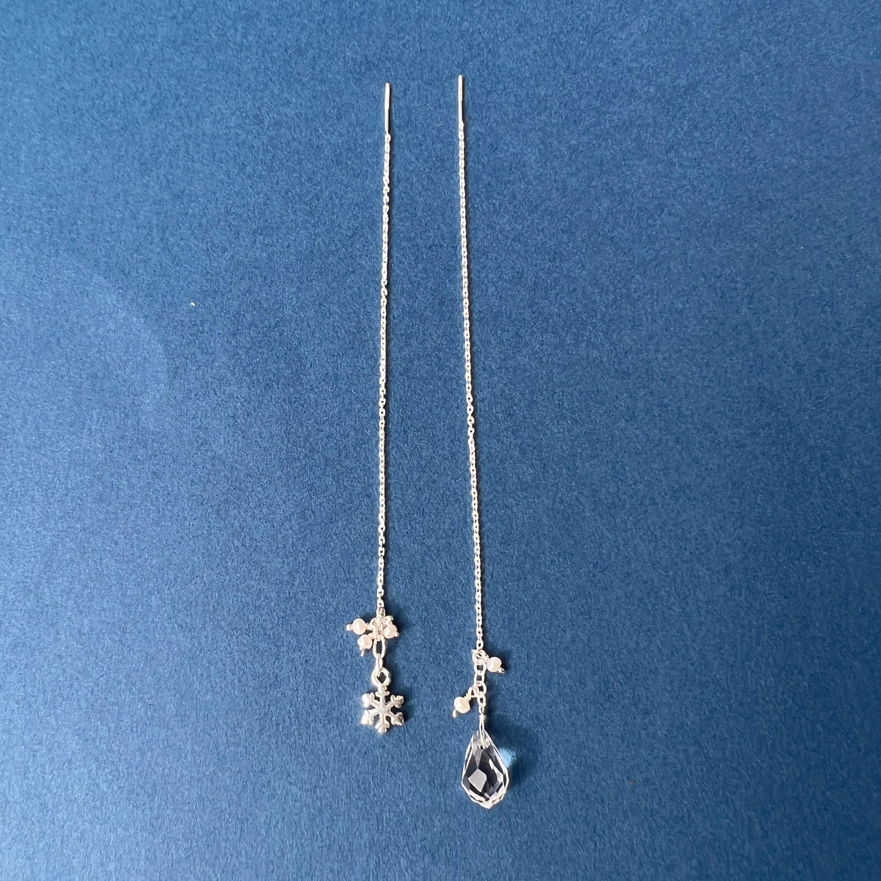片方はクリスタルと淡水パール、もう片方はスノーと淡水パールを雪のように散らしました。