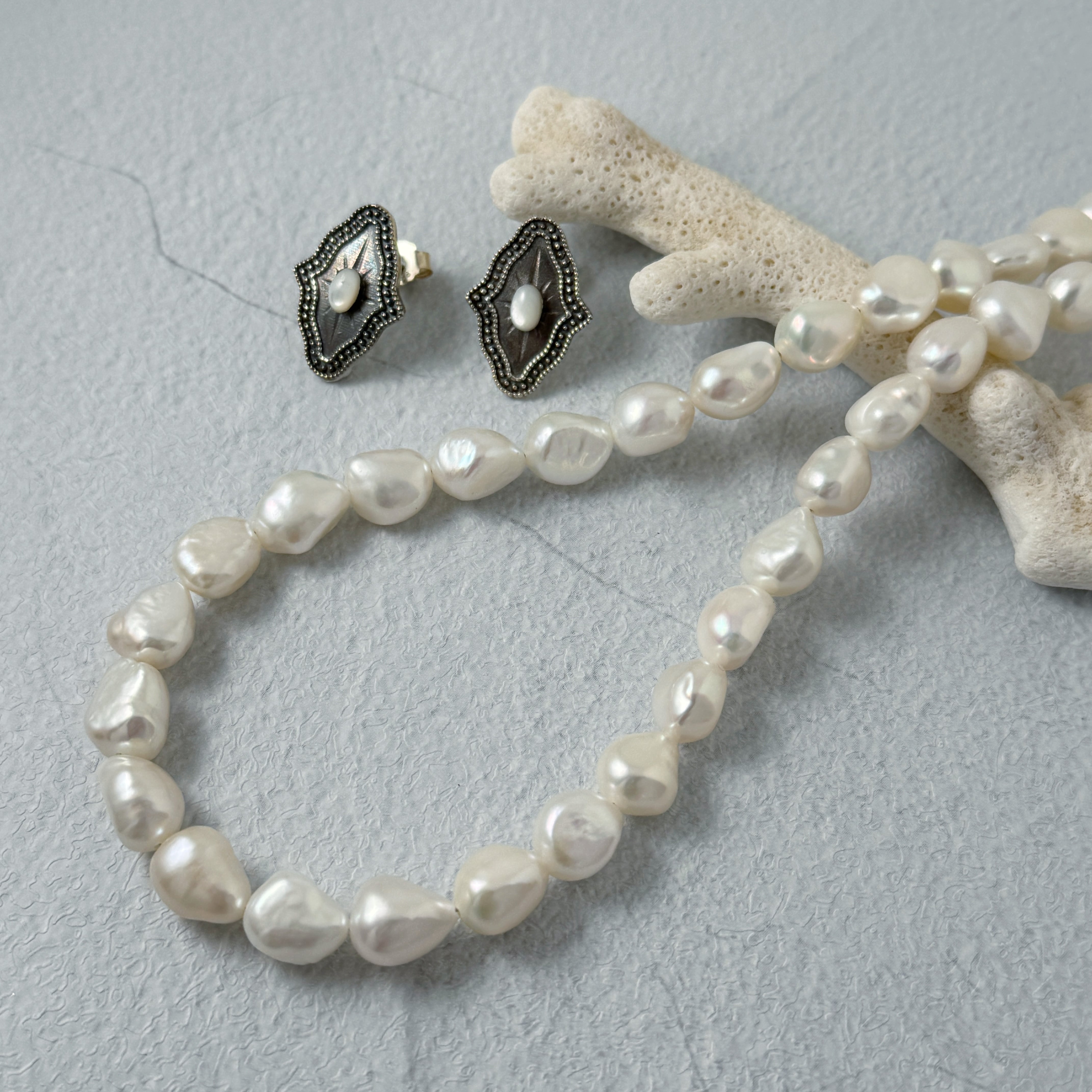 ナバホパールとの相性も抜群なピアスです。