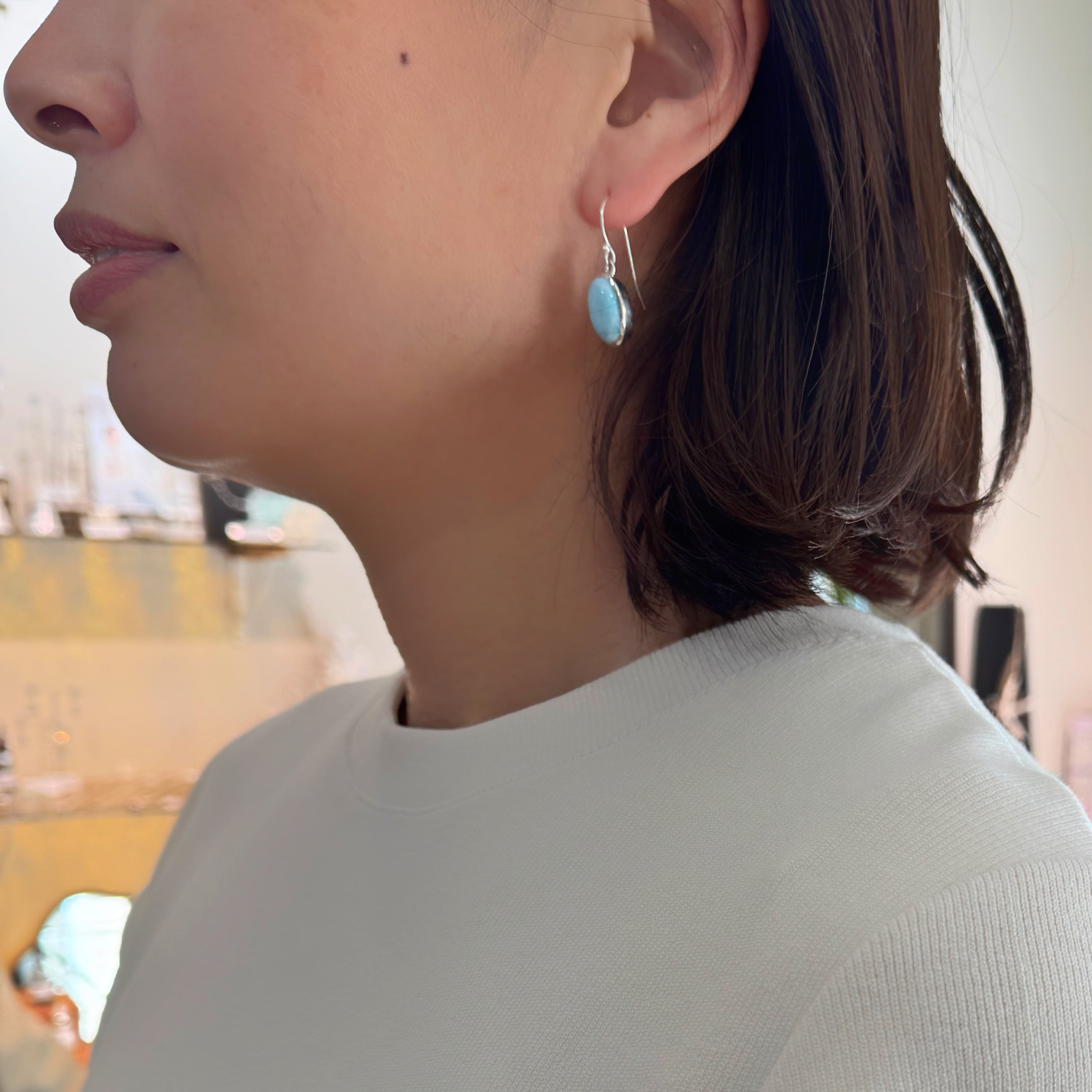 ラリマー オーバル フック ピアス M size